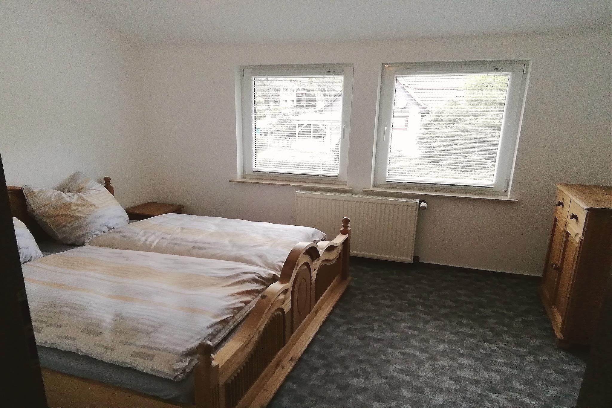 Dette smukke dobbelthus i Kamschlacken i Harzen tilbyder et rummeligt og hyggeligt tilflugtssted for familier eller grupper. En varm brændeovn og en solterrasse skaber den perfekte feriestemning. Et soveværelse har to enkeltsenge i stueetagen. En ekstra børnevenlig seng er placeret på loftet med træpaneler, der er tilgængelig via en lille stige - et sandt børneparadis. Den store have er højdepunktet og tilbyder direkte adgang til den rolige Söse-flod gennem en port bagved. Baghaven med sin rolige dam danner en naturlig oase til afslapning midt i smuk natur. Velafmærkede vandre- og cykelstier i nærheden inviterer dig til at udforske det betagende Harzen-landskab. Udflugter i det omkringliggende område inkluderer besøg til Söse-dæmningen, de charmerende byer Osterode, Braunlage, Wernigerode og Quedlinburg samt en naturskøn tur med den berømte Brockenbahn - noget for enhver naturelsker og eventyrer. Højdepunkter inkluderet: Alle forbrugsbaserede energiomkostninger, sengelinned og håndklæder Wi-Fi