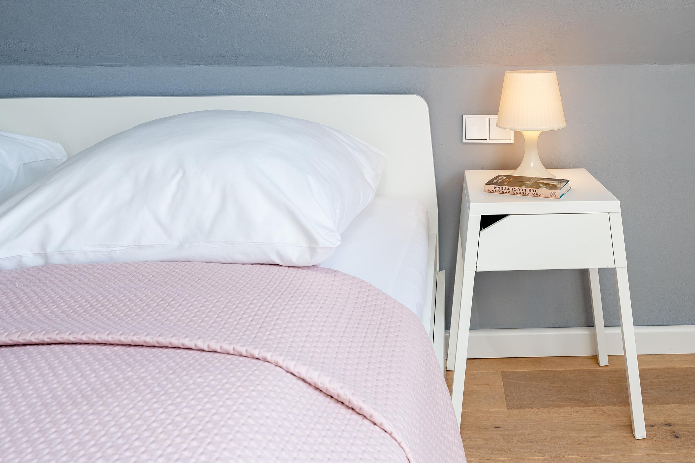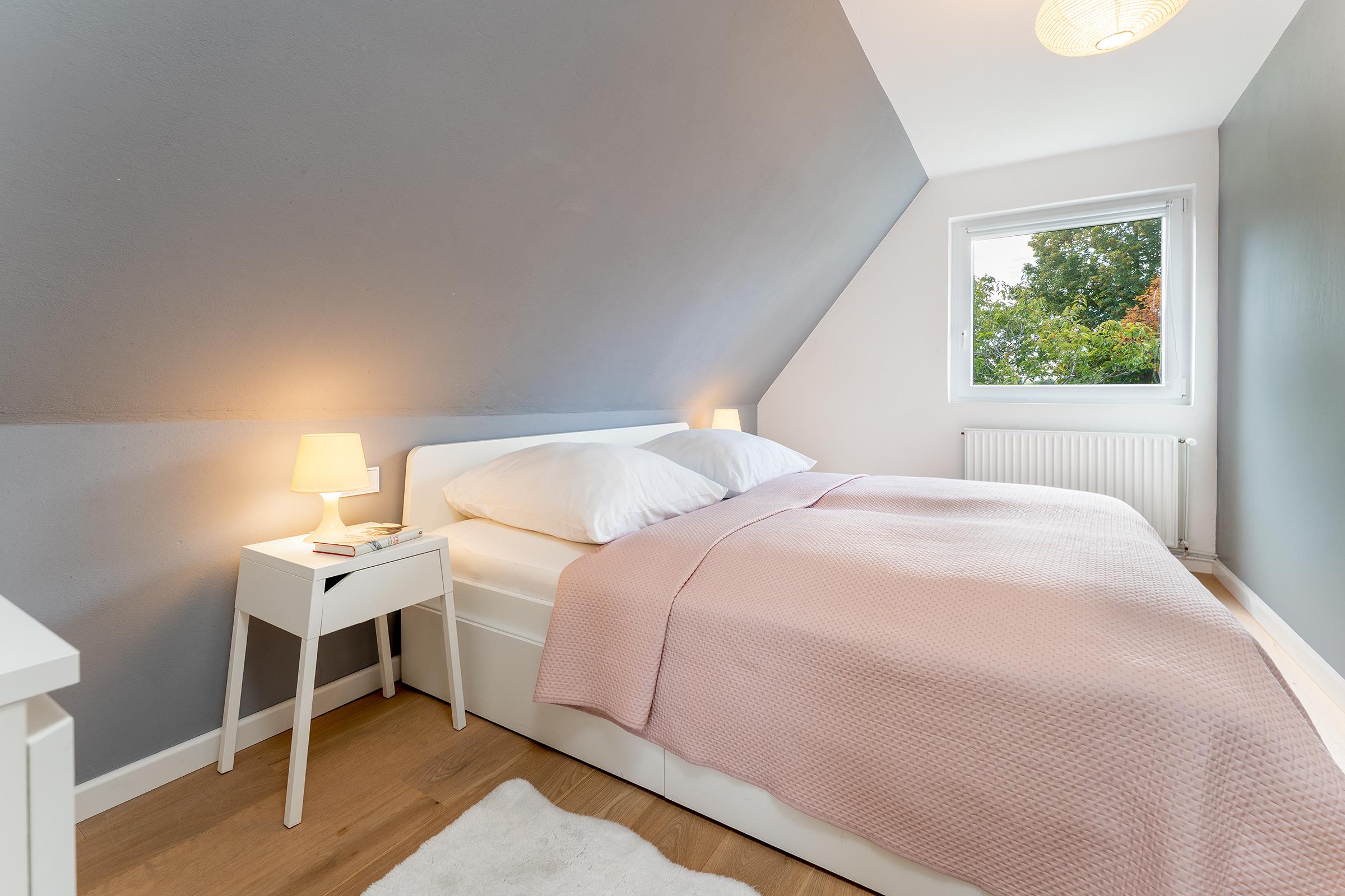 Schlafzimmer 1: 1 Doppelbett (2 x90x200 cm), Verdunklung mit Rollos in beiden Schlafzimmern
