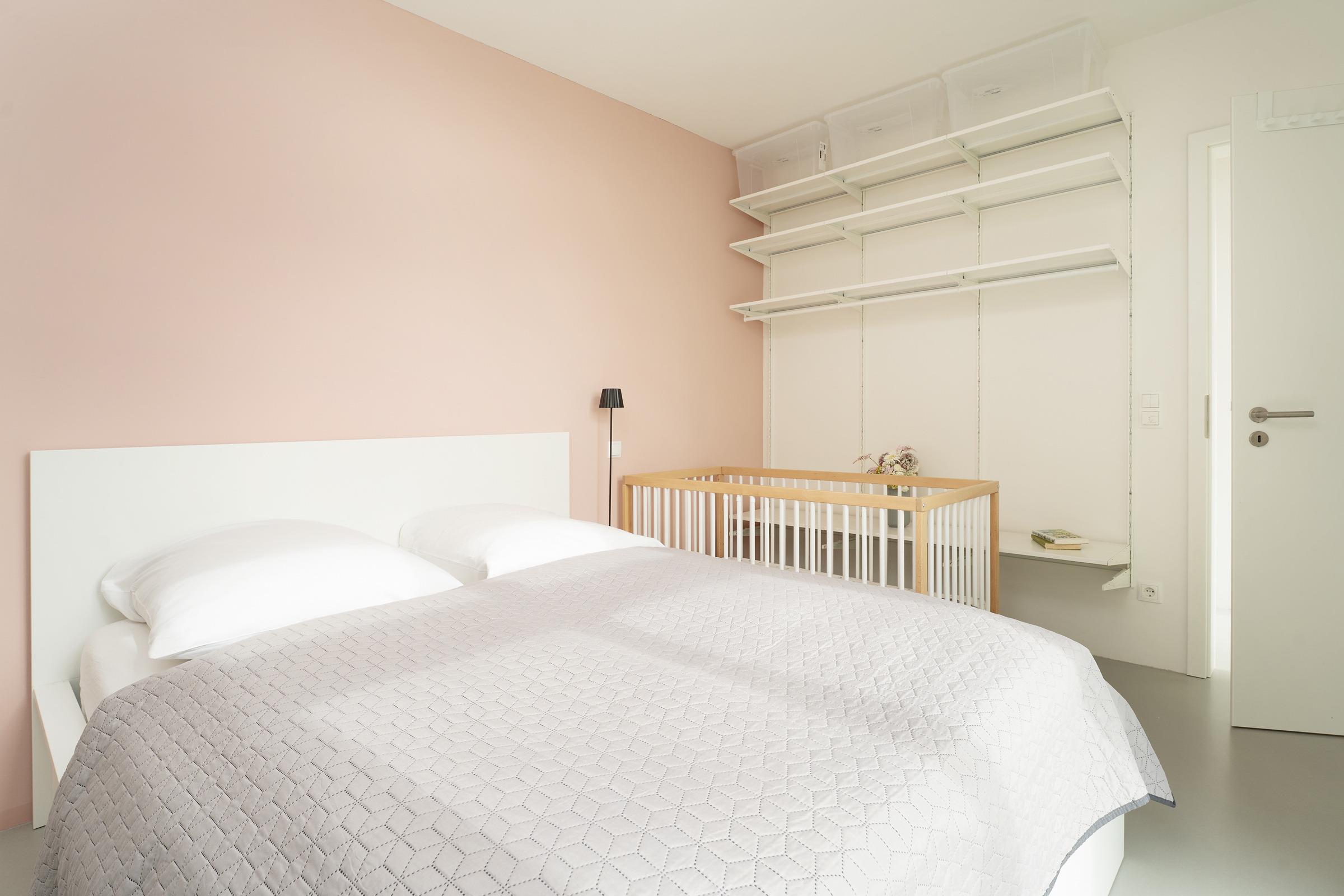 Schlafzimmer 1 (EG): 1 Doppelbett (160x200 cm), 1 Babybett aus Holz, Verdunkelung: Vorhänge