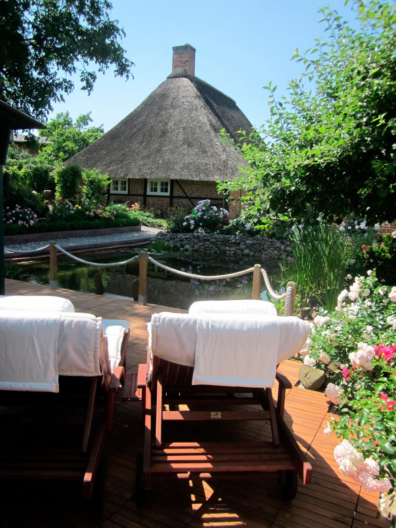 Die "Rosenkate" ist ein liebevoll renoviertes traditionelles Reetdachhaus inmitten eines idyllischen Rosengartens in absolut ruhiger Dorflage. Im Nebengebäude (Nichtraucher) werden zwei Ferienwohnungen angeboten. Zum Garten gehört ein Gartenhaus mit Sauna (20,- Euro für 3 Std.) und Innengrillanlage. Sonnenliegen und ein Sitzplatz am Gartenhaus sind ebenfalls vorhanden, beide Ferienwohnungen haben außerdem eine eigene kleine Terrasse. Eine Besonderheit ist der biologische Schwimmteich (ohne chemische Zusätze), in dem man sich nach dem Saunagang oder einem Sonnenbad erfrischen kann. Die Schwimmteichbenutzung erfolgt auf eigene Gefahr und wird für Kinder ab einem Alter von ca. 5 Jahren empfohlen. Neu ist der beheizbare Badebottich.