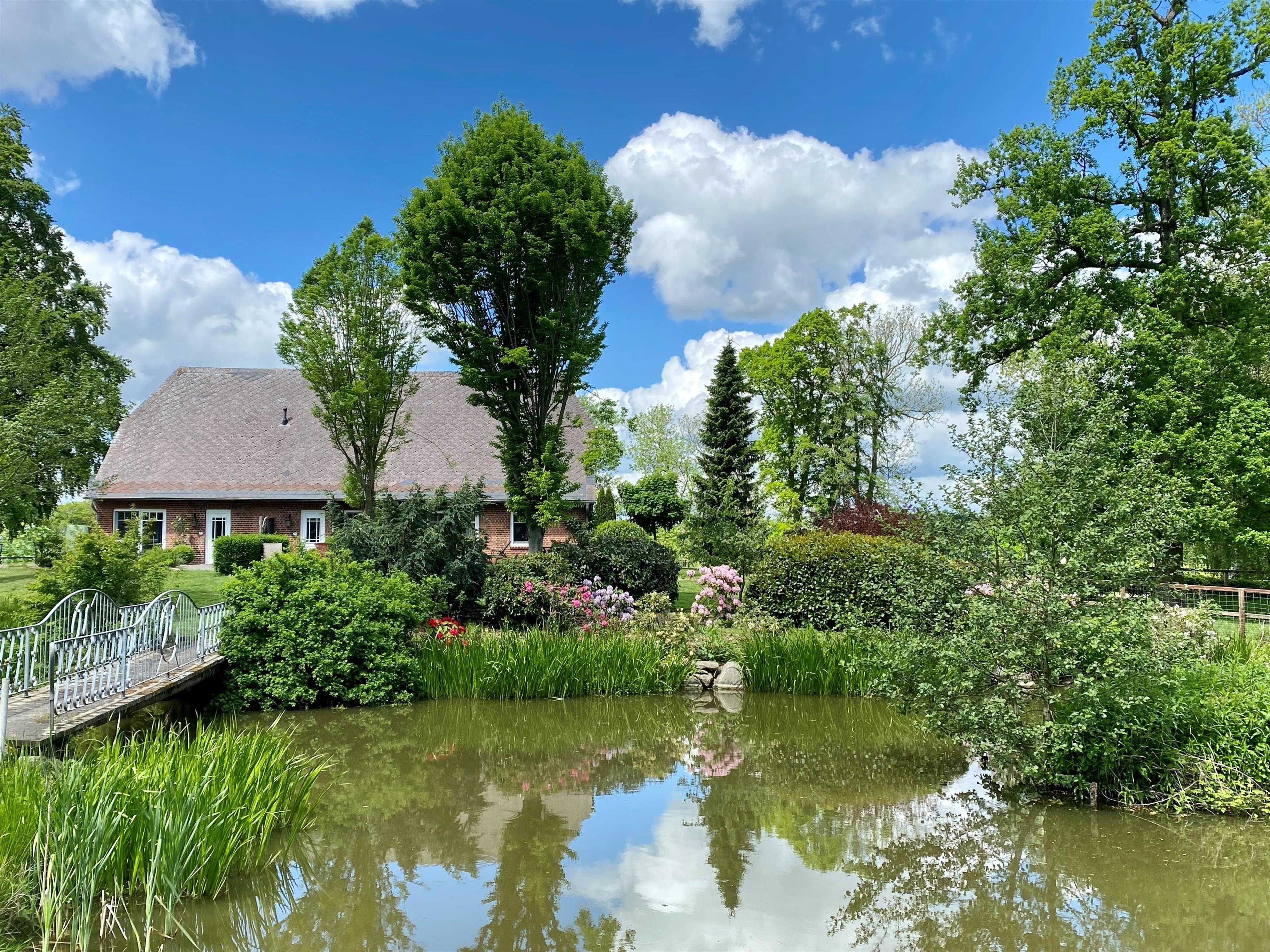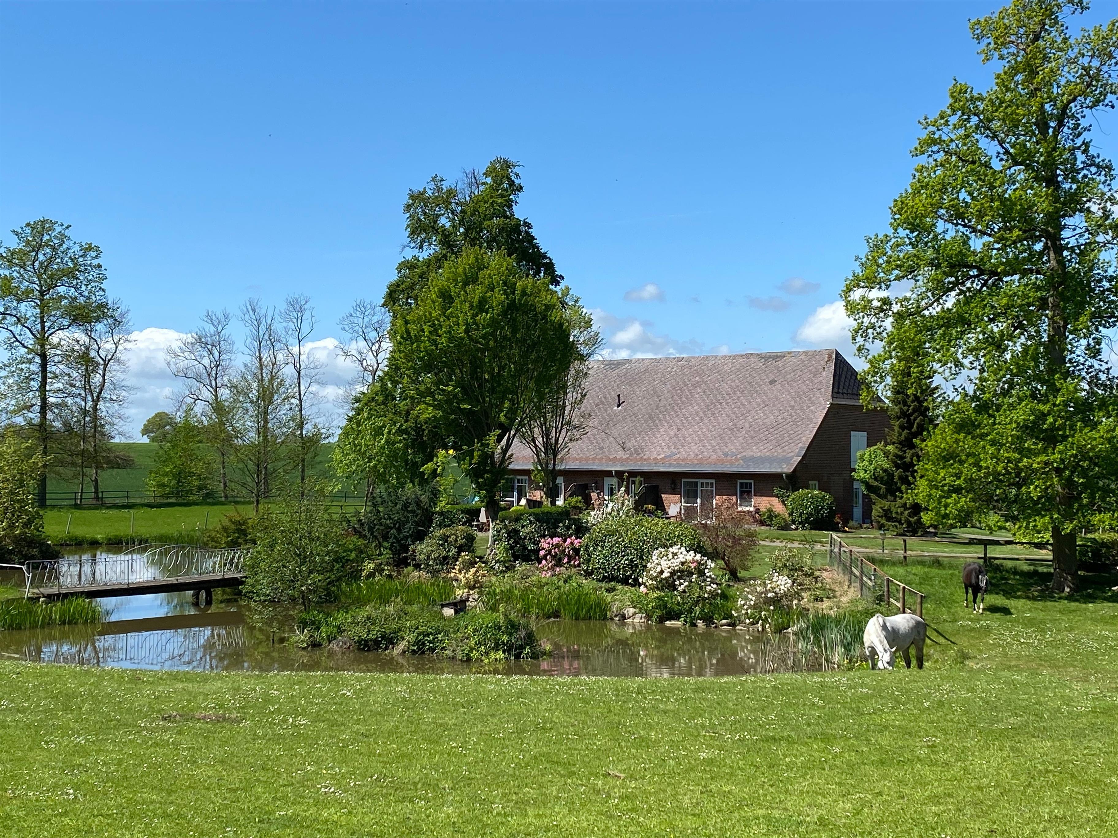 Im Sommer 2012 wurden im ehemaligen Pferdestall des Guts drei moderne, individuelle und liebevoll ausgestattete Premium-Ferienwohnungen eingerichtet. Diese Ferienwohnungen befinden sich in einem Gebäude, das in Einzellage direkt oberhalb des mit Seerosen bewachsenen Gartenteiches liegt. Von dort aus schweift der Blick über den Teich in den Guts-Park mit majestätischen, alten Bäumen, in den Buchenhain und weiter über die Felder. Ein magischer Sitz- und Grillplatz im Buchenwald und ein Steinlabyrinth geben Ihnen ein Gefühl von Frieden und 'angekommen sein'. Alle Ferienwohnungen sind hochwertig ausgestattet mit Internet über WLAN, Satellitenfernsehen und einer Stereokompaktanlage. Die Wohnung 'Romantika' ist 45 m2 groß und eine bezaubernde Unterkunft für bis zu 2 Personen. Eine gemütliche Wohnküche mit Essecke und ein Ausziehsofa vor dem Kamin laden zu kuscheligen Stunden vor loderndem Kaminfeuer ein. Die romantische Atmosphäre wird unterstrichen durch das harmonische Zusammenspiel von zarten Flieder- und Rosétönen mit hochwertigen floralen Stoffen. Einzigartig ist das märchenhafte Doppel-Alkoven-Bett mit Blick in den Sternenhimmel, der einem hilft, in sanfte Träume zu verfallen. Das in weiß gehaltene Badezimmer mit ebenerdiger Duschkabine vollendet das harmonische Ambiente. Zwei Terrassen ermöglichen dem Gast, mit dem Lauf der Sonne den Tag zu beginnen und zu beenden.