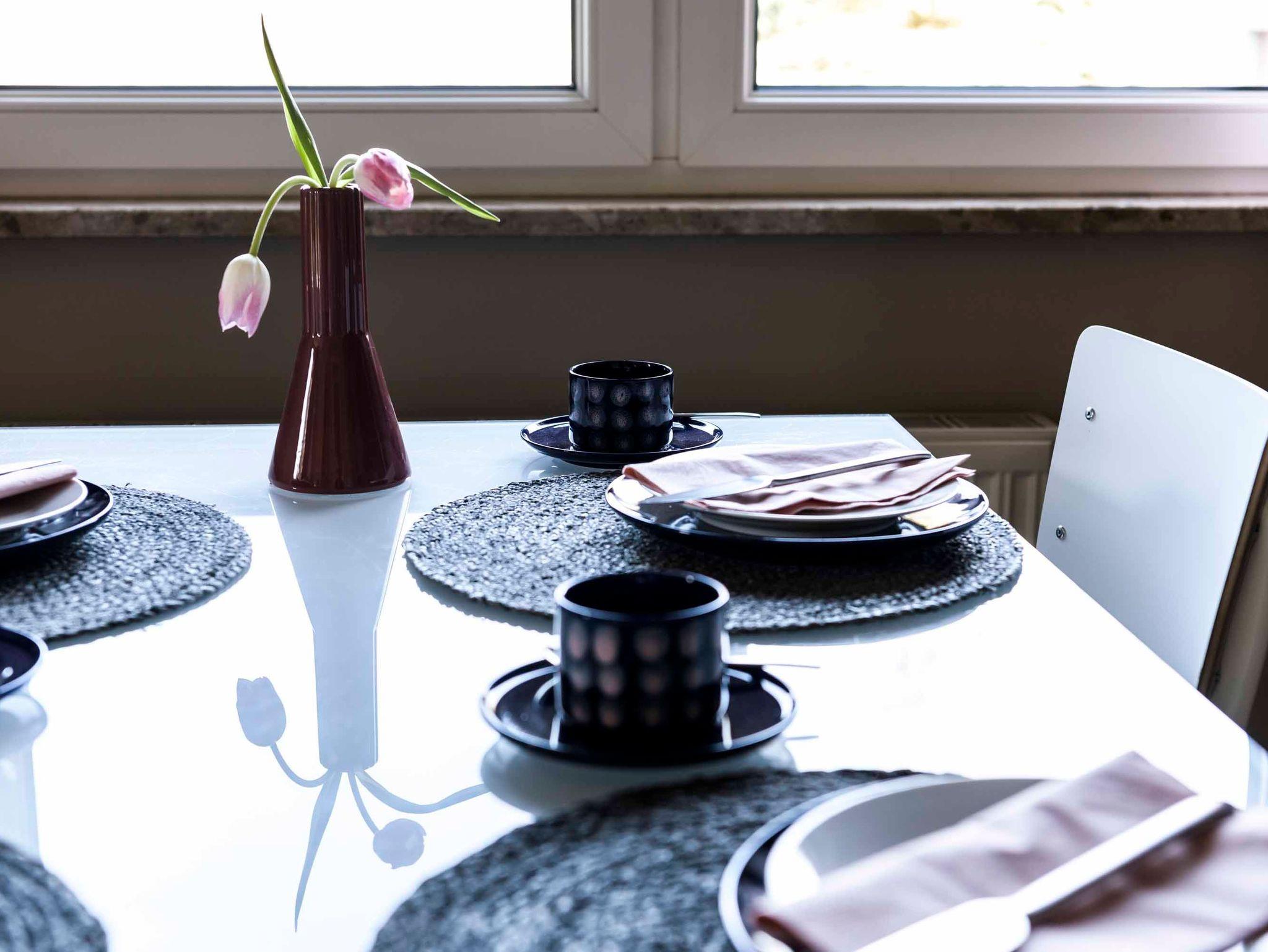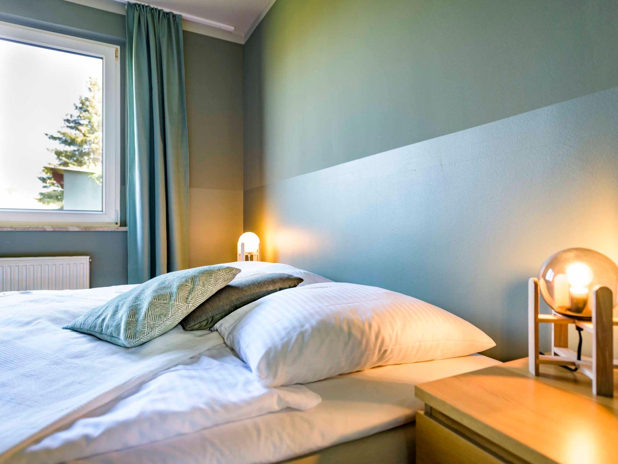 Großer Wohnraum mit Panoramafenster und direktem Blick auf das Haff, Kaminofen, komplett ausgestattete Küche mit Essplatz für 4 Personen, 2 sep. Schlafzimmer, beide mit Doppelbett, 1 Lese- und Arbeitszimmer mit Schreibtisch, 2 Bäder - jeweils mit Dusche und WC, Waschmaschine, große Sonnenterrasse mit Mobiliar, großer Garten mit Grill. Internet, TV, CD und DVD sind bei uns obligatorisch. Zum Wasser sind es ca. 100 Meter, am Wasser befindet sich der Pommernhaus-Bootssteg mit Ruderbooten (Nutzung nur für Pommernhausgäste).