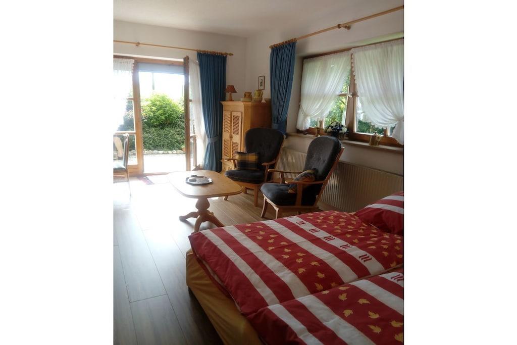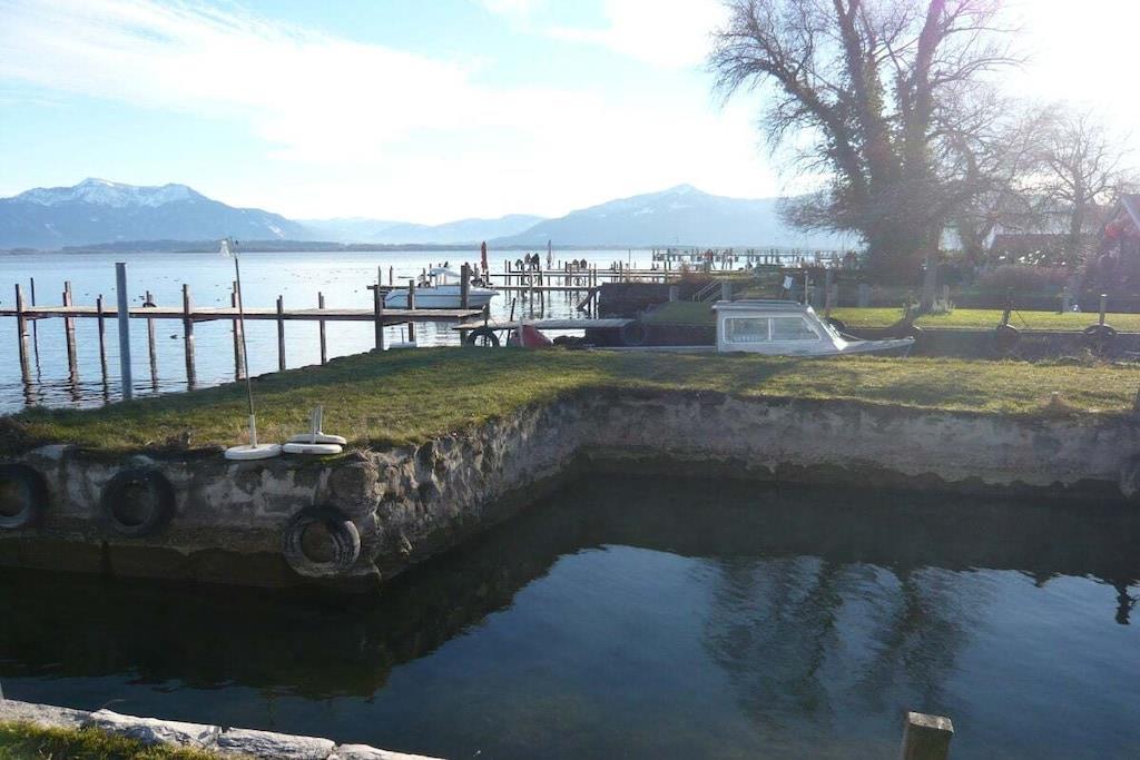 Excellent holiday apartment with garden patio. Chiemsee can be reached in 5 minutes. Parking in front of the house.