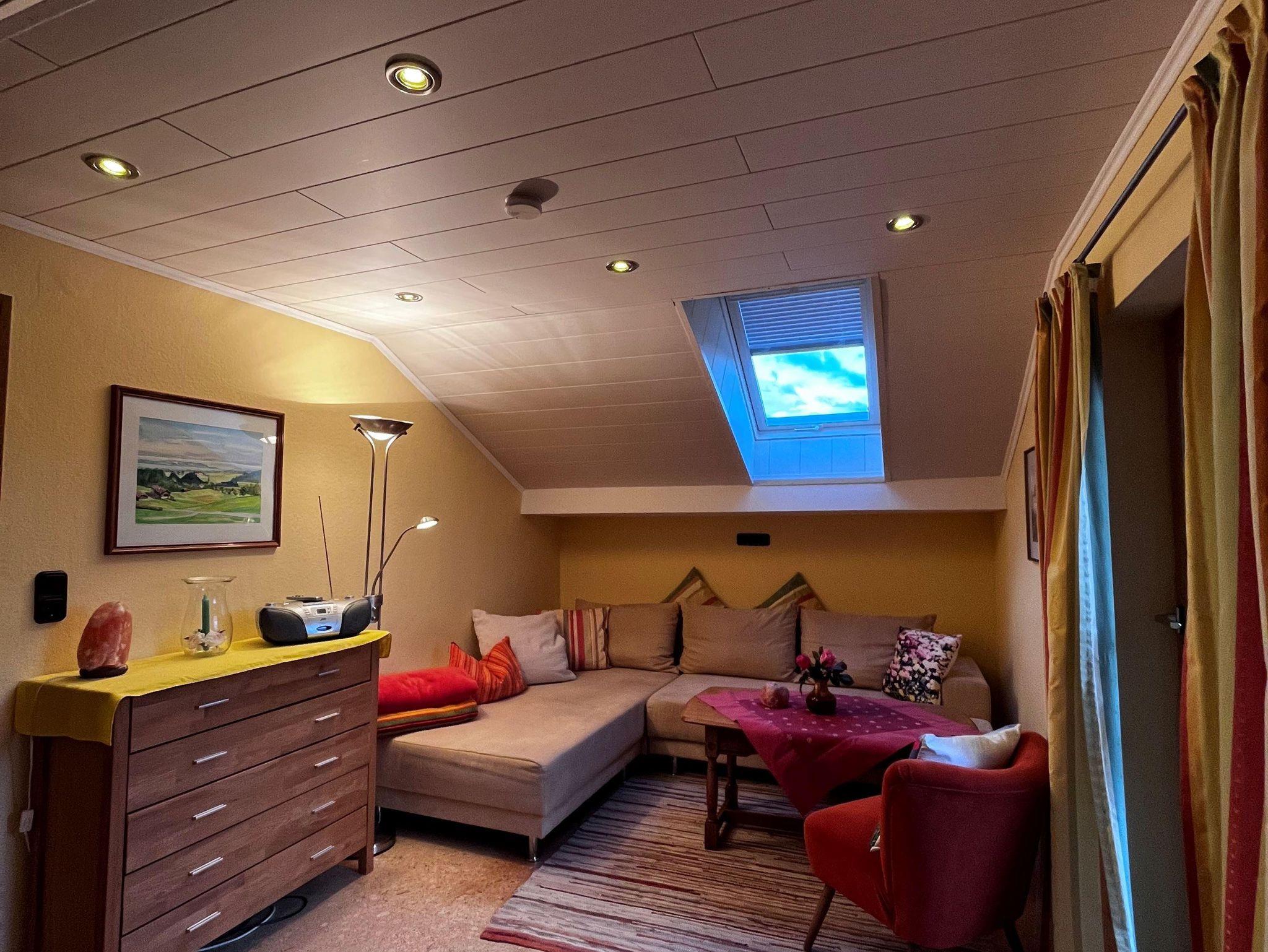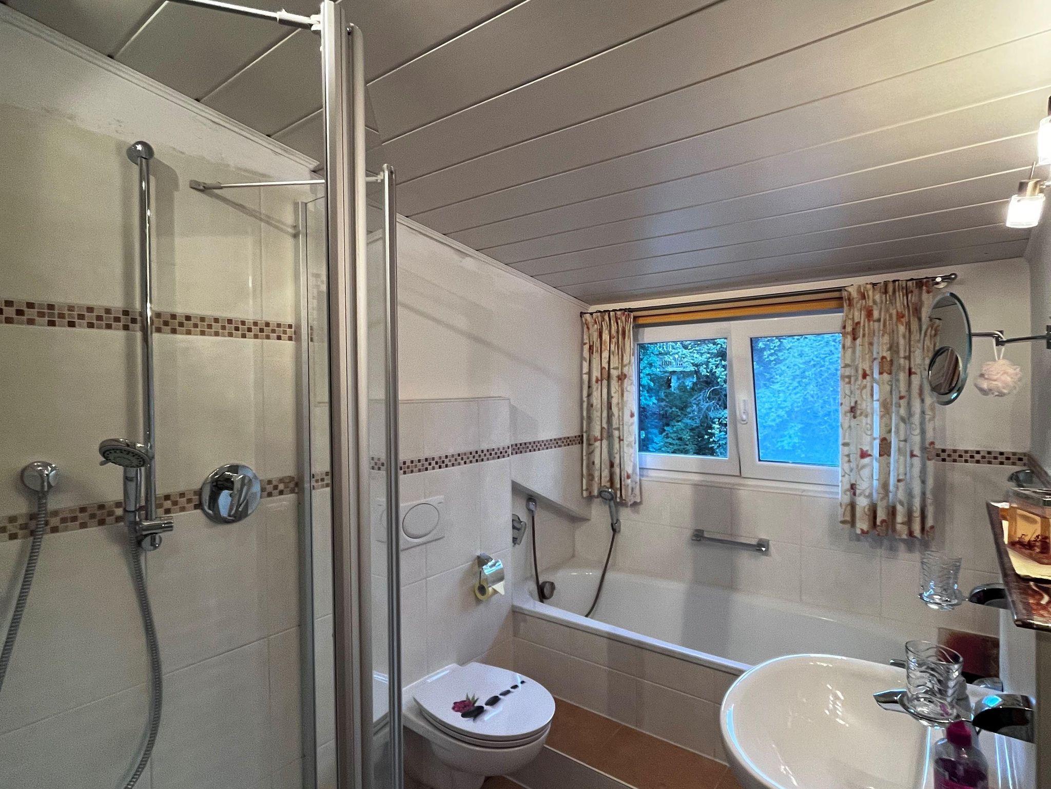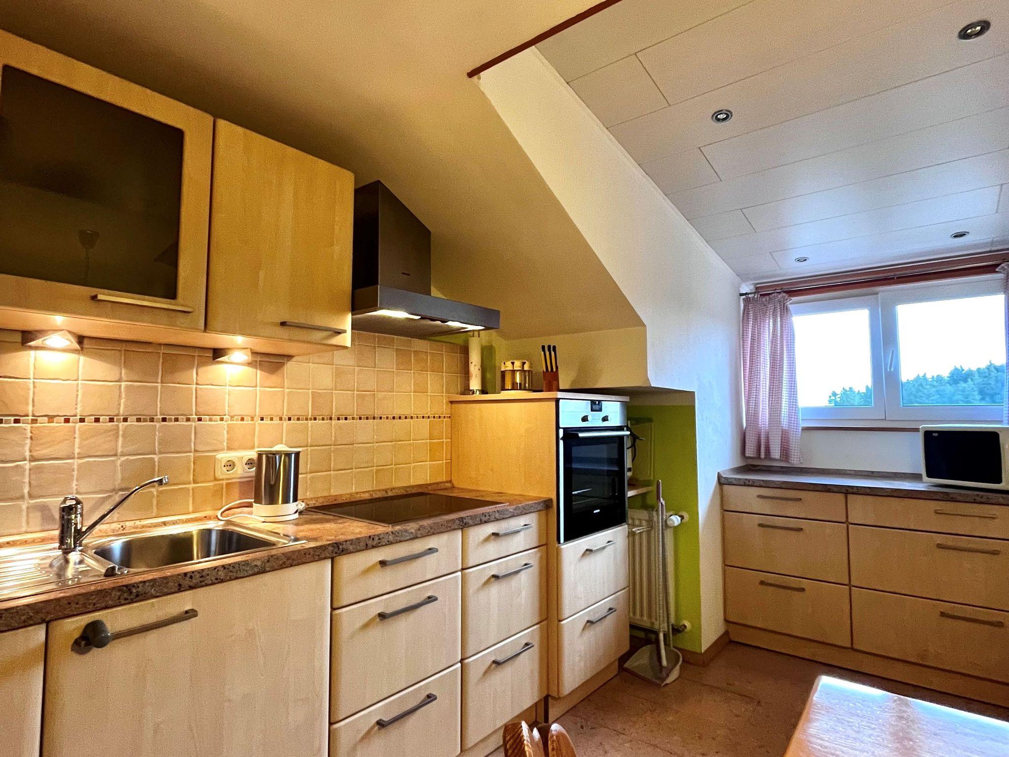 Ferienwohnung im DG, 85 qm, Balkon nach Osten und Westen (Bergblickvom Westbalkon), komplett ausgestattete Wohnküche, Geschirrspüler, Mikrowelle, zwei Schlafzimmer, eines mit Balkon. Bad/Dusche und seperates WC, Bettwäsche und Handtücher werden gestellt. Fön, Radio, SAT/TV und Wlan sind vorhanden.