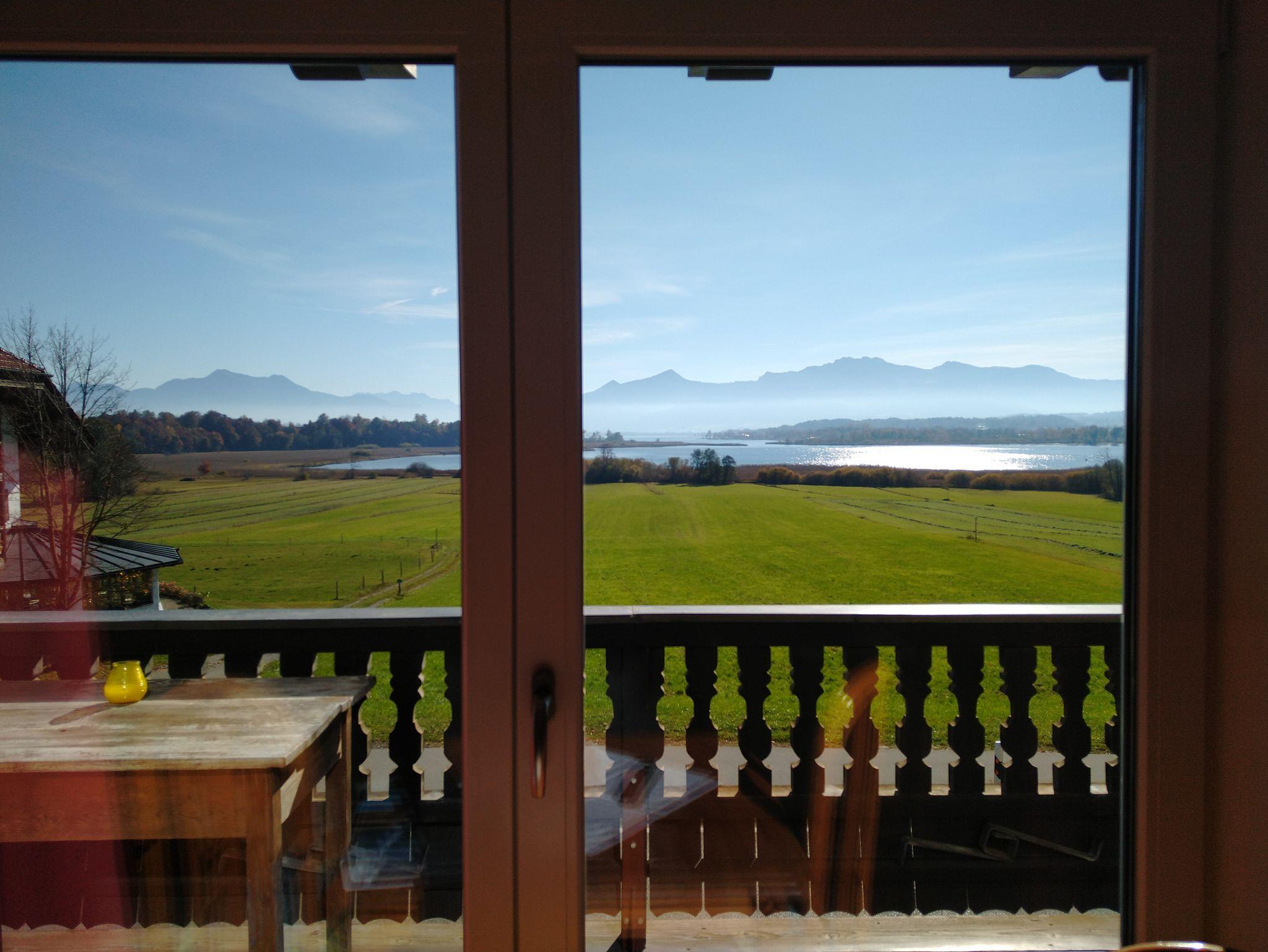 Die helle und liebevoll eingerichtete Ferienwohnung genießt einen spektakulären, unverbauten Blick auf den Chiemsee und die Chiemgauer Alpenkette. Sie bietet Platz für zwei Personen und verfügt über eine voll ausgestattete Küche, sowie zwei Balkone nach Süden, sowie Osten. Weiteres: Freies W-LAN, internetfähiger SAT-TV, Doppelbett 180 x 200 cm,Kaffeemaschine, Wasserkocher, Kofferbock, Kleiderschrank. Auf Anfrage Kinderbett und Hochstuhl.
