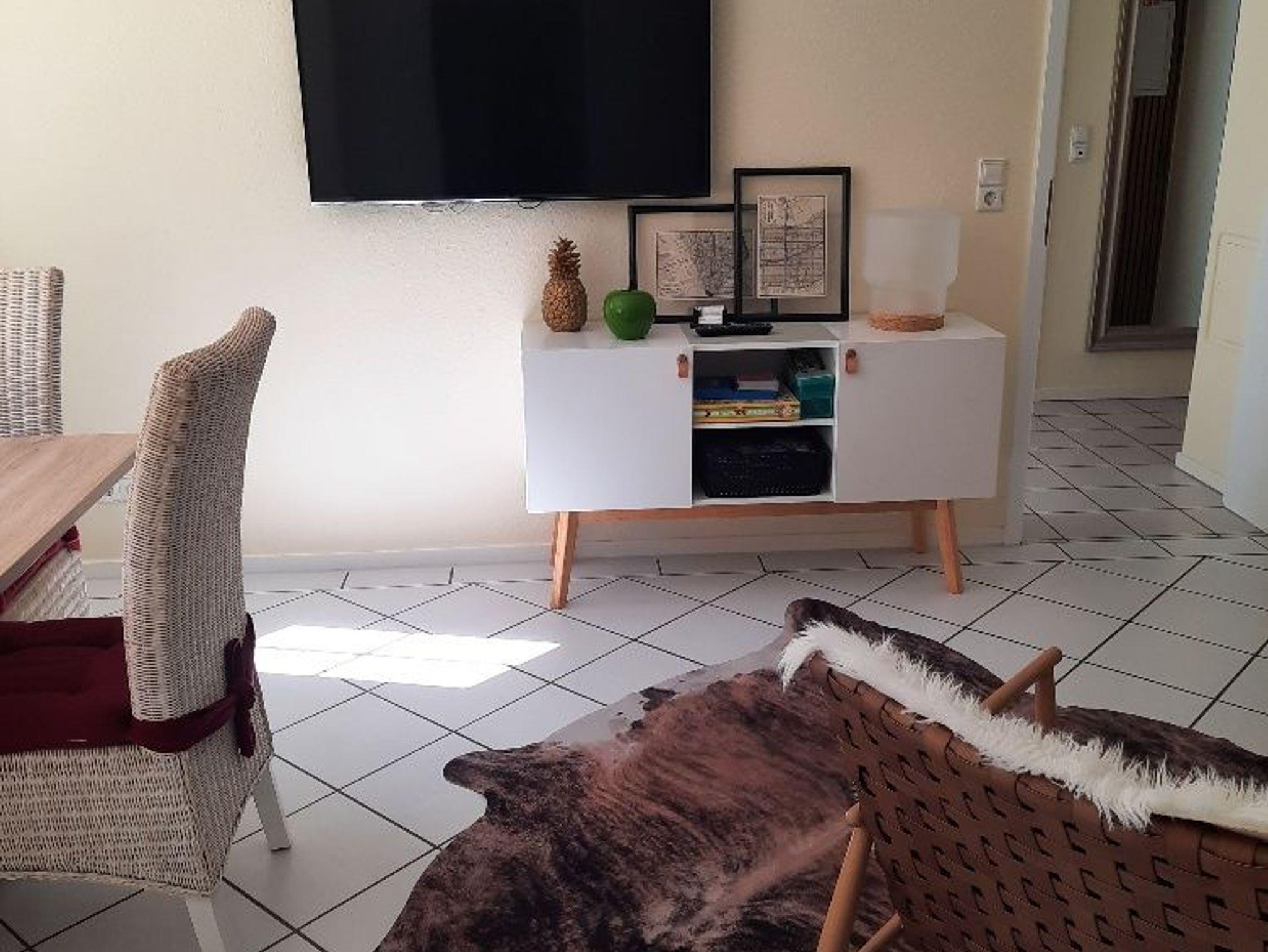• Das Wohn-Esszimmer mit Schlafsofa 1,60 x 2,00 für die 5-6 Person verfügt über Smart LCD TV, Kabel, und großen Esstisch.