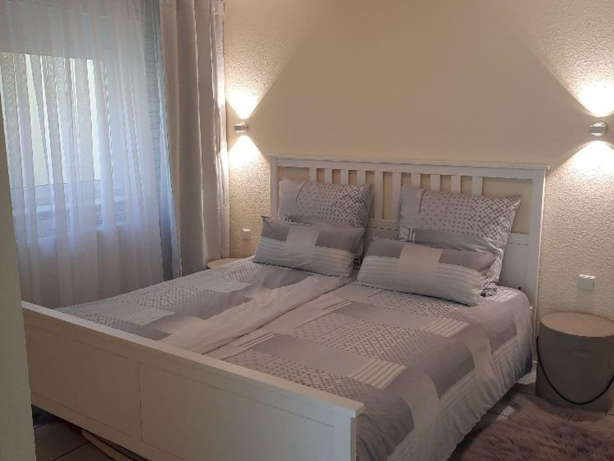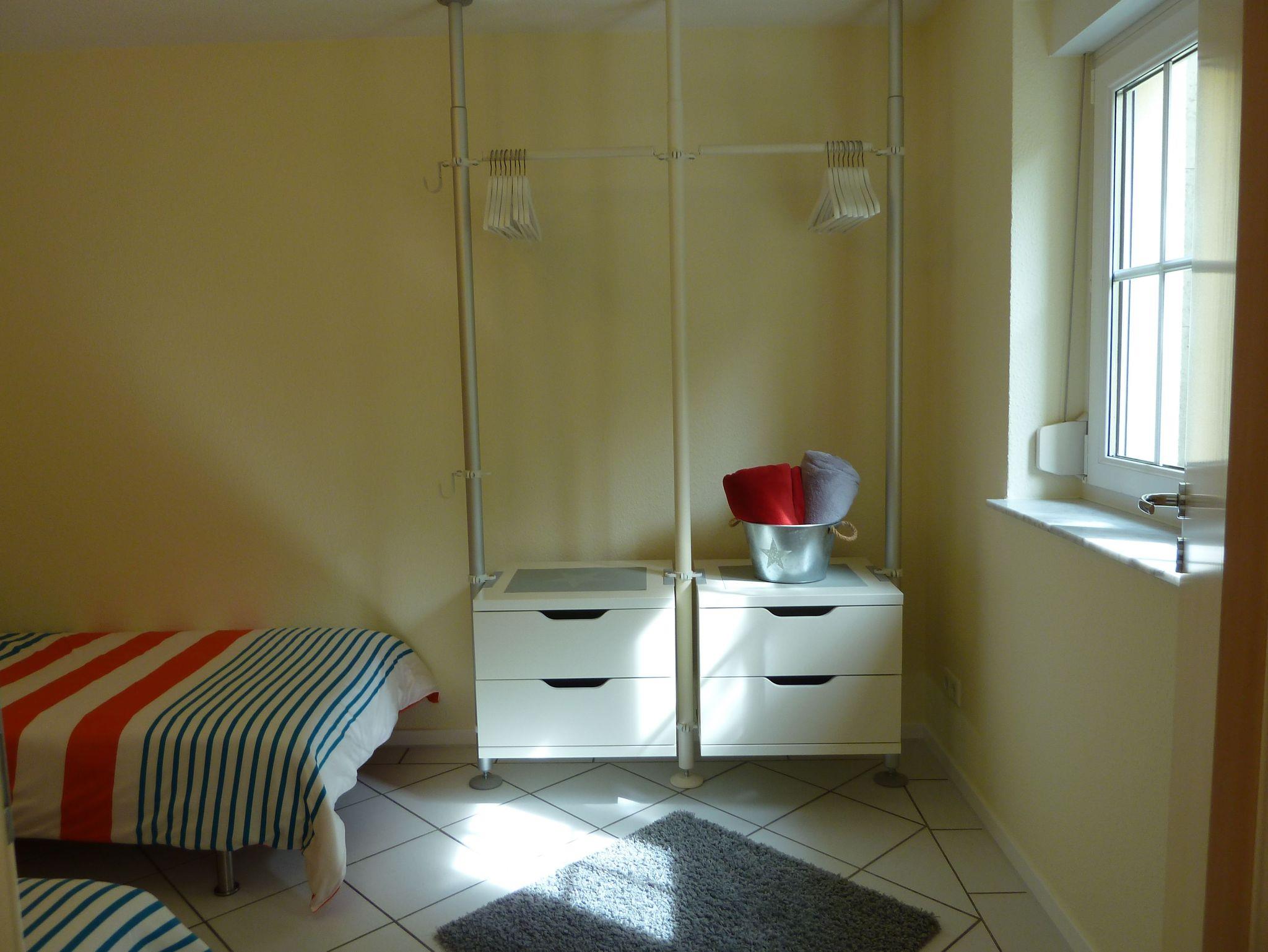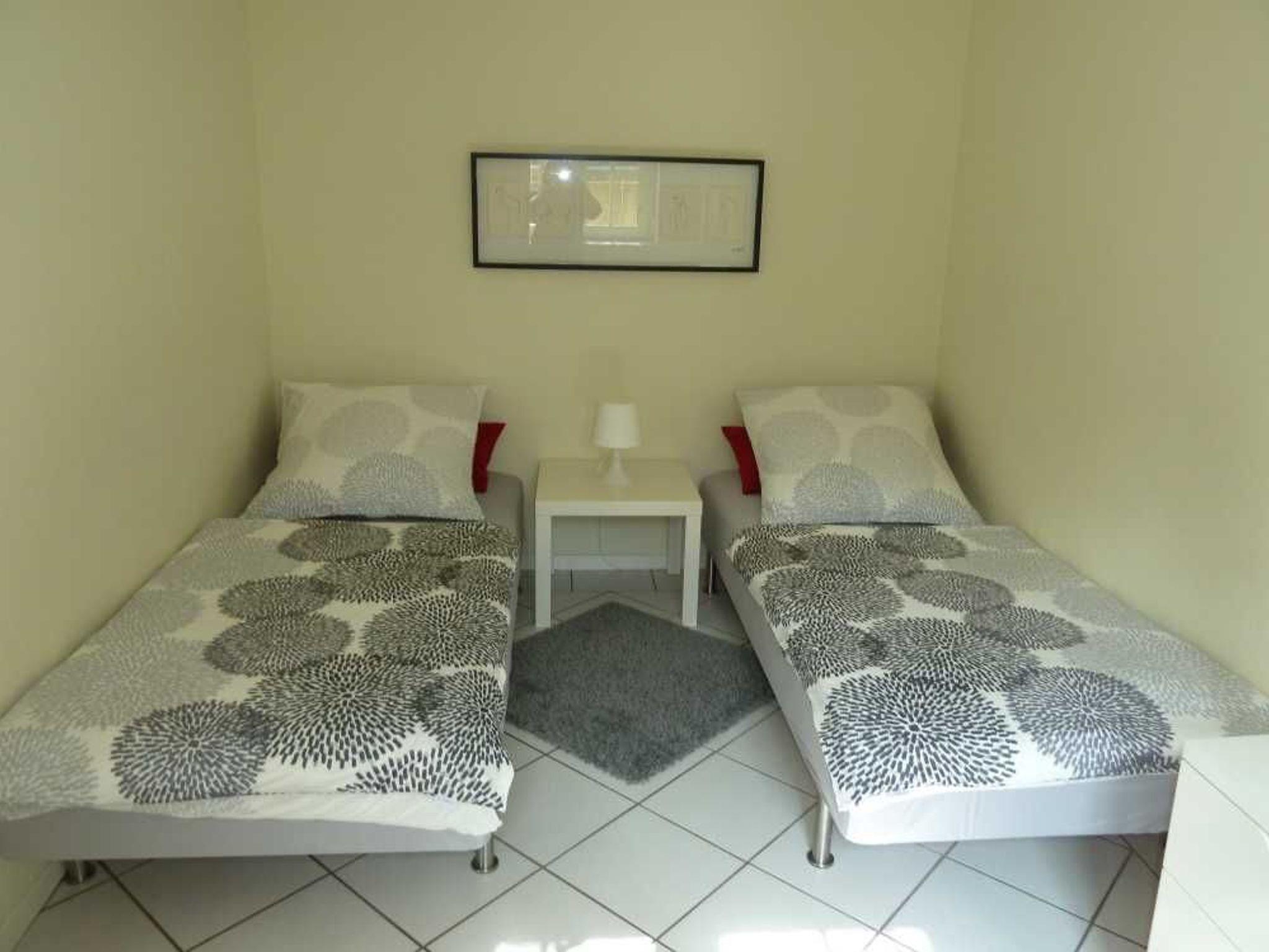 • Doppelbett (1,80x2,00), zwei Einzelbetten 90x200, Schlafcouch (160x200), Schränke, Betten bezogen, Decken vorhanden.