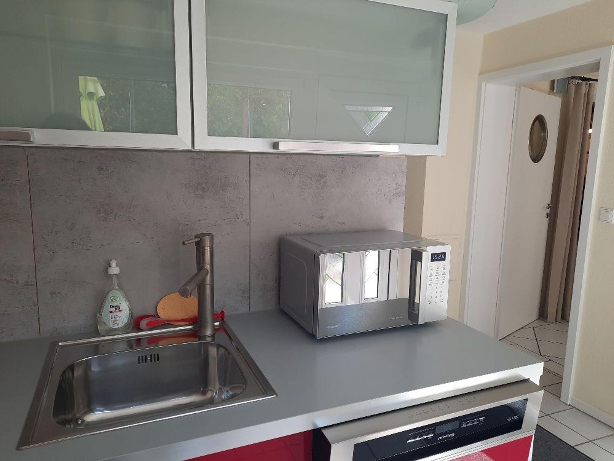 • Küche ausgestattet, Kühl- Gefrierschrank, Spülmaschine, Backofen, Cerankochfeld, Senseo Kaffeemaschine, Toaster, Wasserkocher, Microwelle, Geschirr.