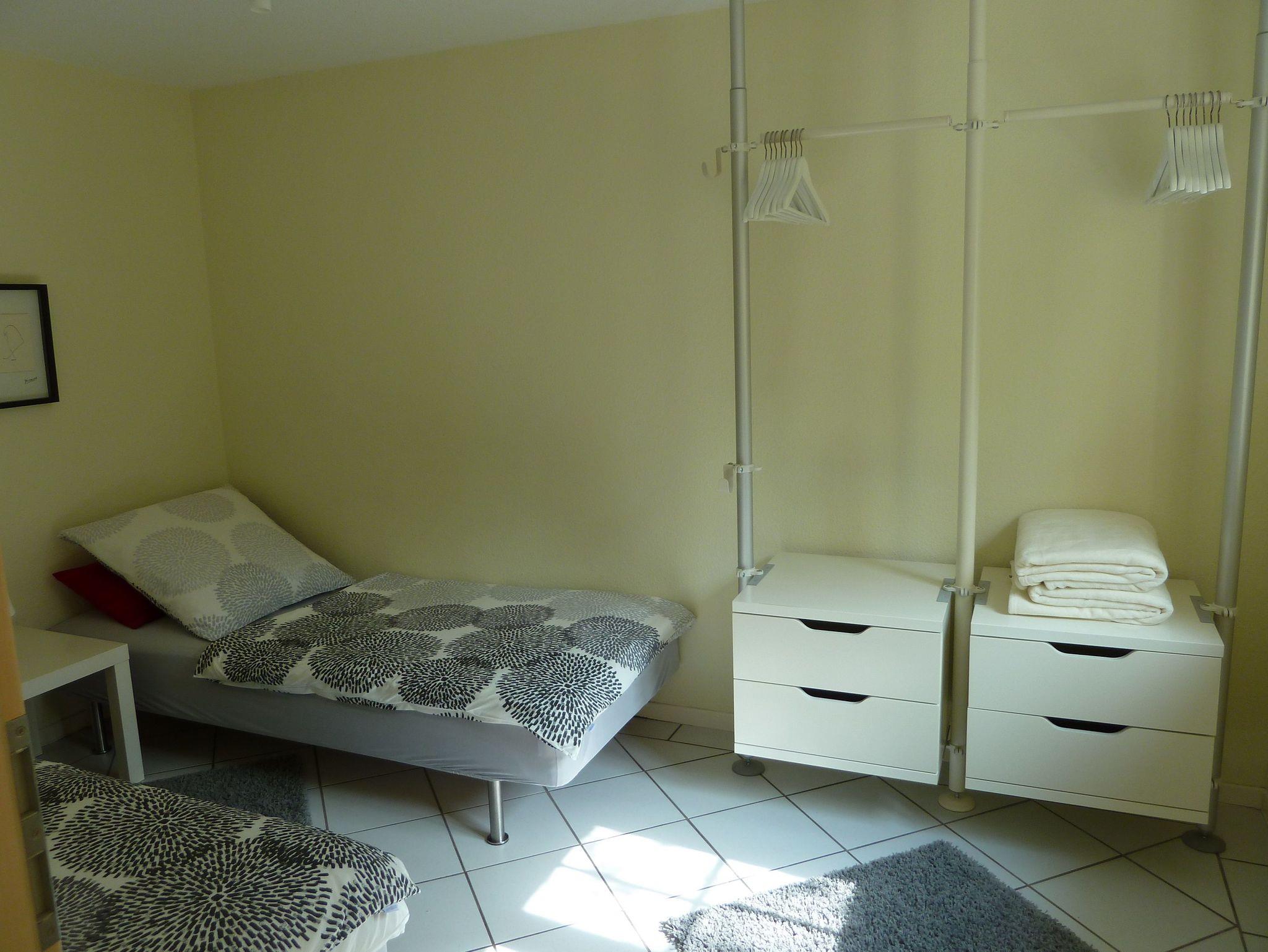 • einmal mit zwei Einzelbetten: 90 x 2,00. Die Betten sind natürlich bezogen,