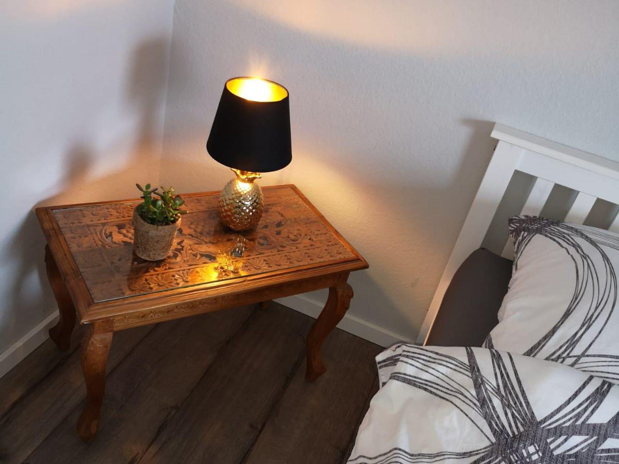 Ferienwohnung mit Küche, Wohn-, Essbereich mit einer Schlafcouch (1,6 x 2m), Gäste WC, Badezimmer mit Dusche und Badewanne, Schlafzimmer mit einem 200x220 großen Wasserbett. An den Wohnbereich gliedert sich ein 9 qm großer Balkon an. Die Wohnung ist klimatisiert.