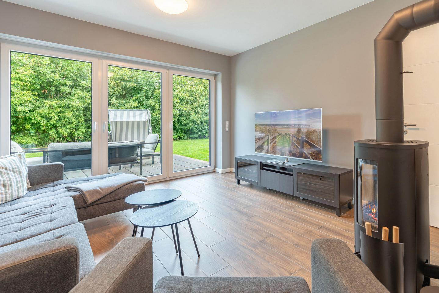 In dem separaten Wohnzimmer können Sie sich mit Ihrem Buch vor den gemütlichen Kaminofen zurückziehen oder aber vor dem großen TV spannende Filme anschauen.