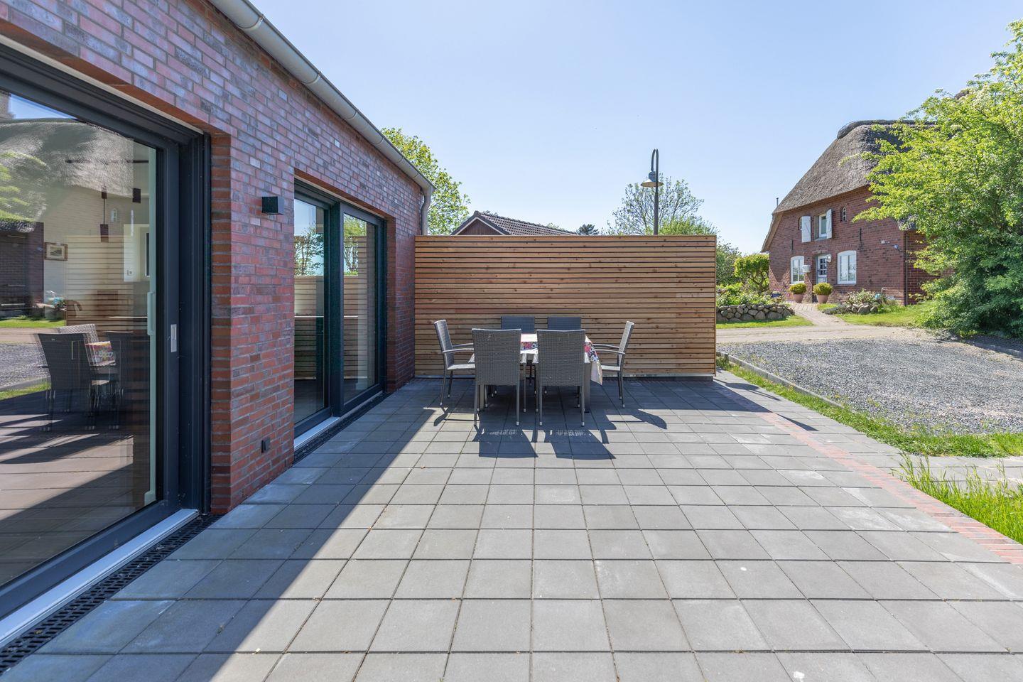 Unser neu gebautes Ferienhaus liegt an einer Seitenstraße in Risum-Lindholm, nur ca. 9 km von der Nordsee entfernt.