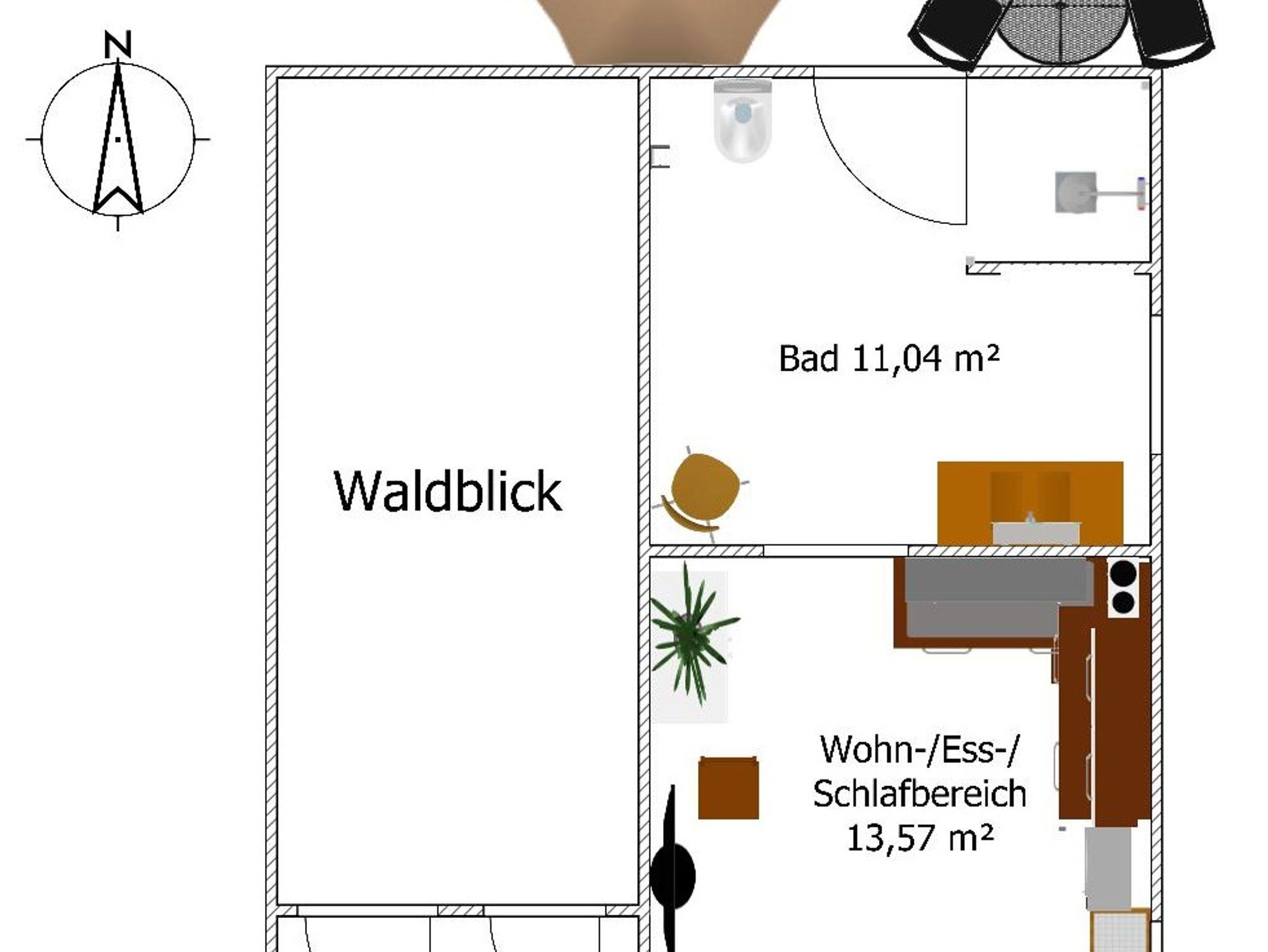 Frisch, einladend und flexibel! Im Erdgeschoss erwartet Sie unser kleines Apartment „Waldwinkel“ – perfekt für Singles, Paare, Eltern mit Kind, Geschäftsreisende oder Monteure. Das stilvoll gestaltete Zimmer bietet ein bequemes Bett (1,40 m), eine voll ausgestattete Küchenzeile und einen gemütlichen Essplatz.