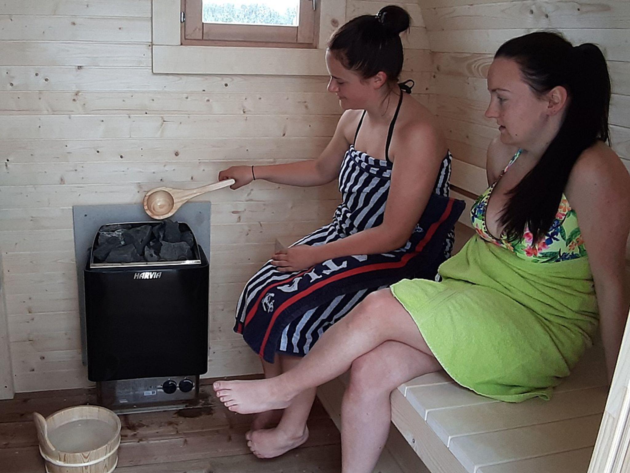 Unsere Fass-Sauna macht das Wellness-Vergnügen komplett. Ein Saunagang bei uns bringt nicht nur Ihren Kreislauf in Schwung, sondern ist zugleich ein Erlebnis in der Natur. Unser Zuber kann als Tauchbecken genutzt werden oder Sie gönnen sich eine eiskalte, prickelnde Dusche. Das Badefass und die Fass-Sauna können über unser Formular Zubuchbare Optionen kostenpflichtig zur Alleinnutzung gebucht werden. Das Formular erhalten Sie bei bestätigter Buchung.