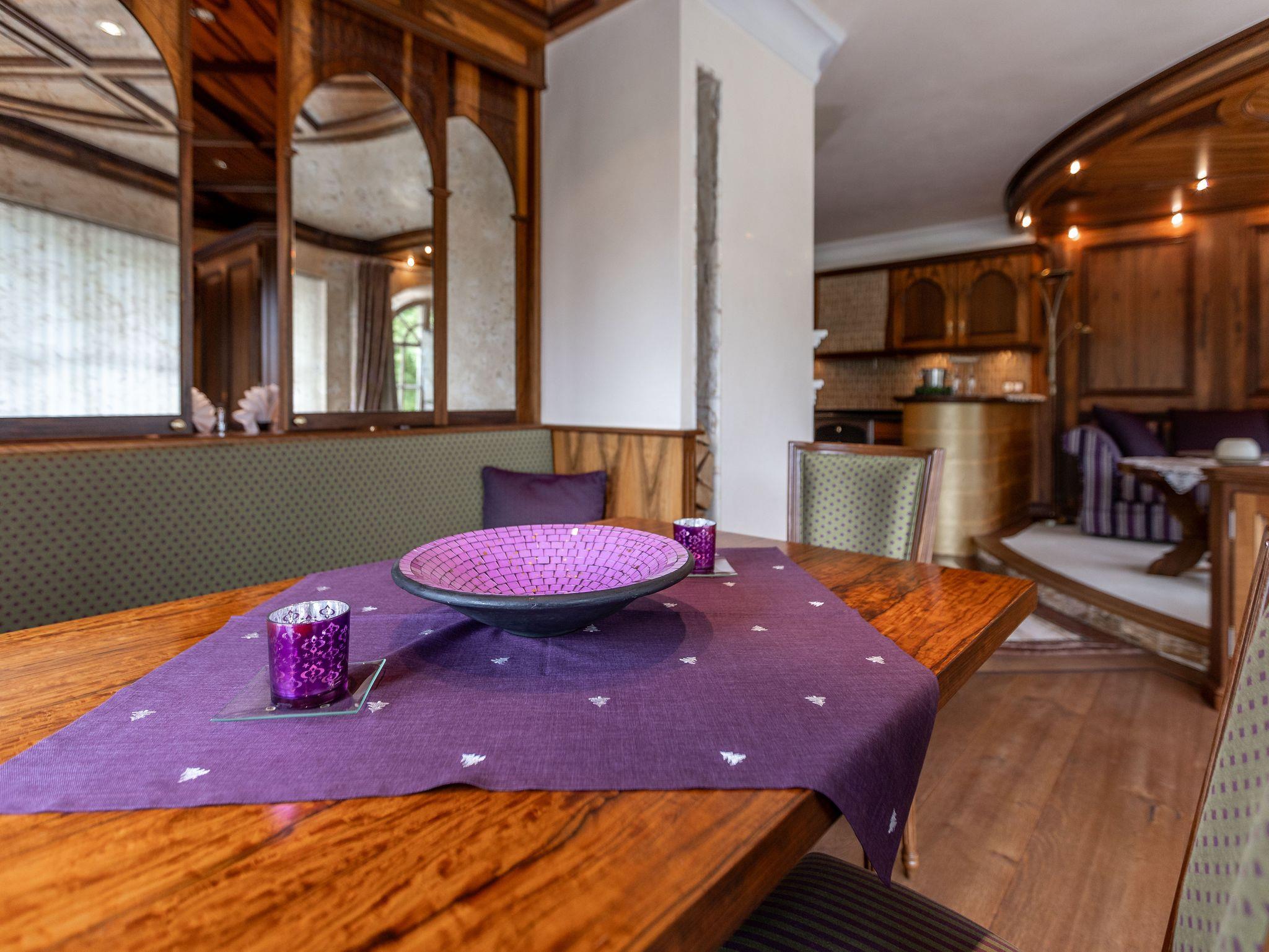 Die Einrichtung der Suite ist im klassischen König-Ludwig-Stil gehalten und verbindet traditionelle Elemente mit modernem Komfort.