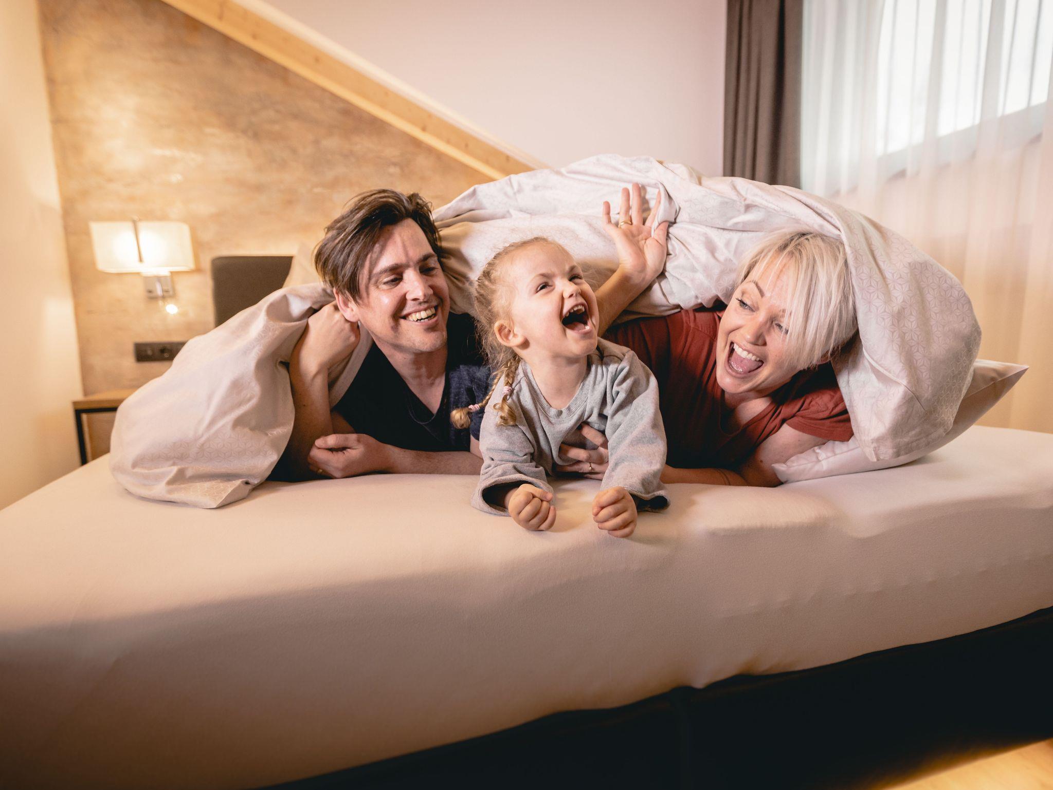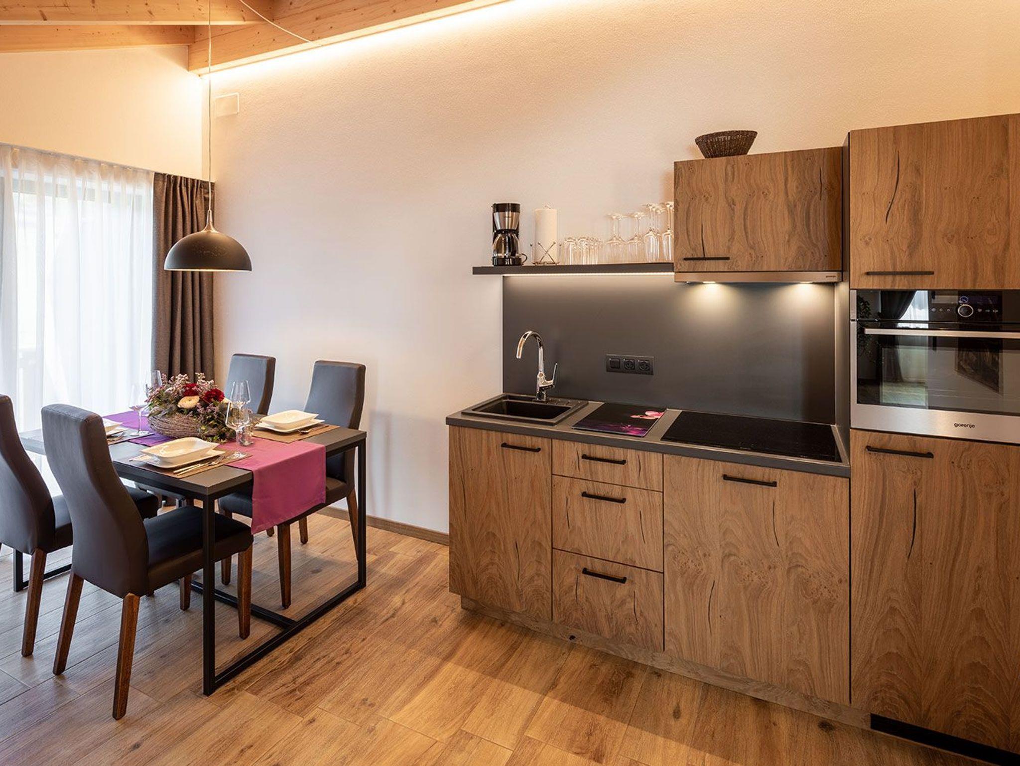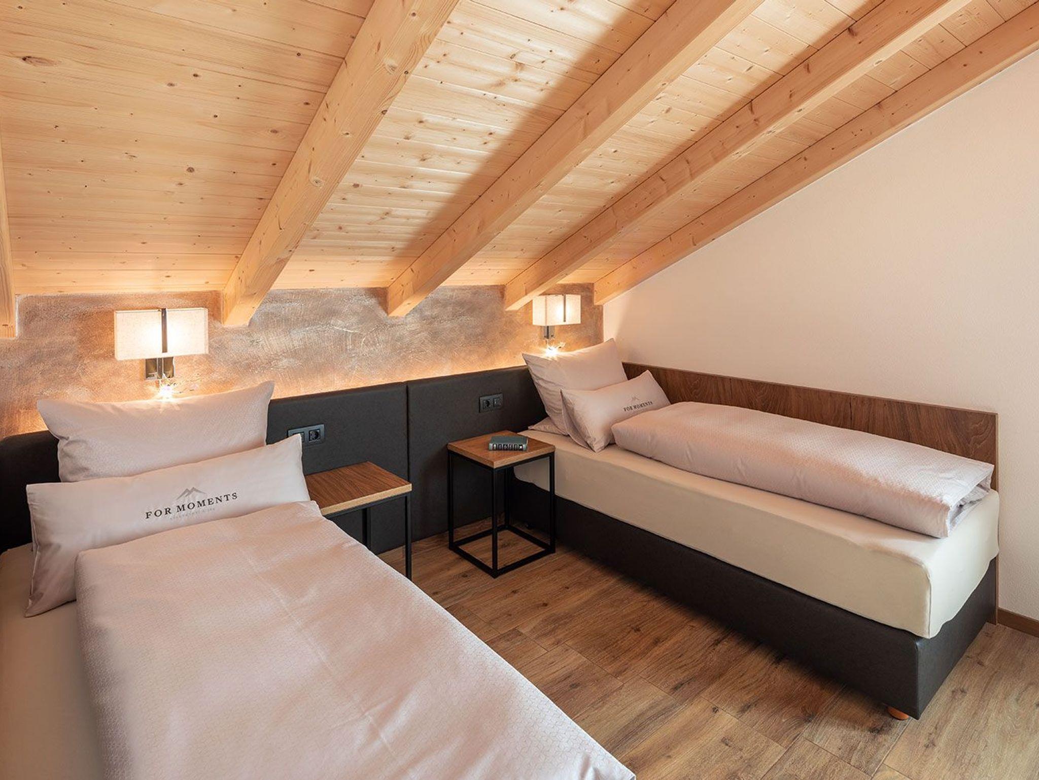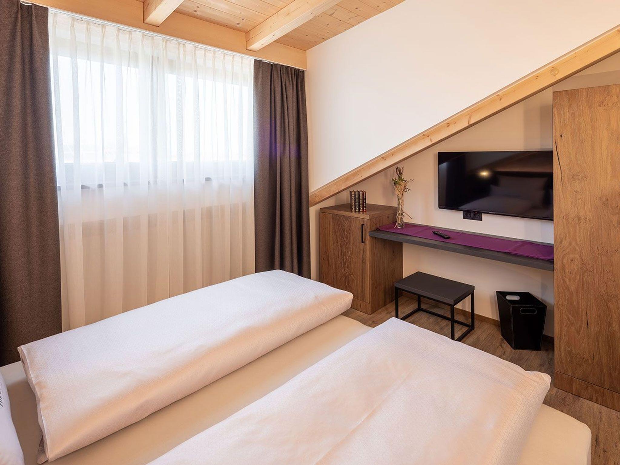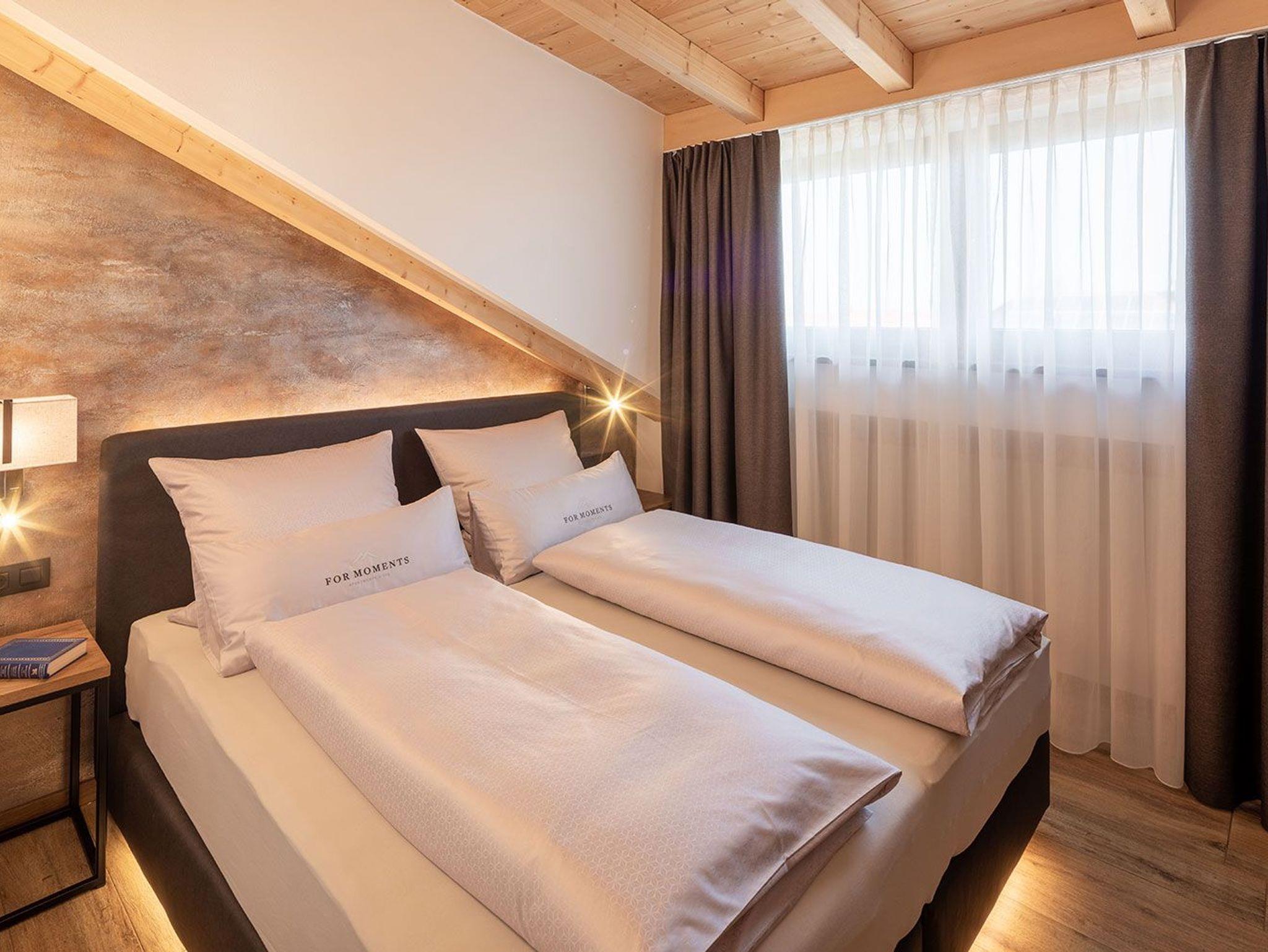 Dieses geräumige Penthouse ist perfekt für einen luxuriösen und komfortablen Aufenthalt in unserer Berglandschaft. Die Einrichtung des Zimmers ist modern und elegant und verbindet traditionelle Alpenakzente mit zeitgemäßen Designelementen.
