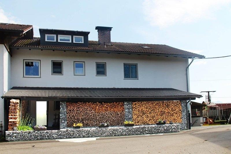 Ferienwohnung Nr.1 bei einem Bauernhof außerhalb von Roßhaupten für 2-4 Personen, in ruhiger ländlicher Gegend, umgeben von Wiesen und Wäldern sowie traumhaften Blick auf die Königsschlösser.