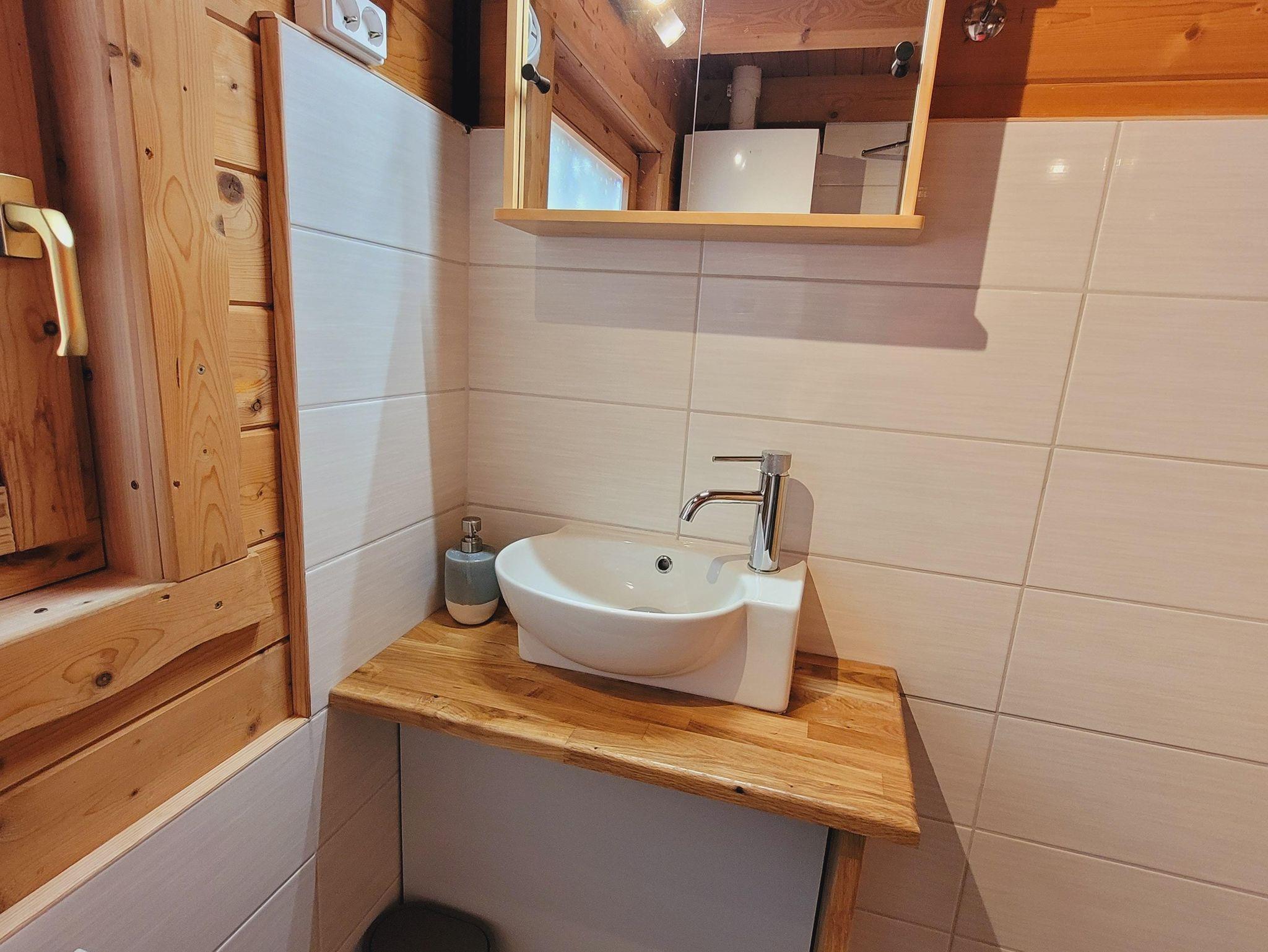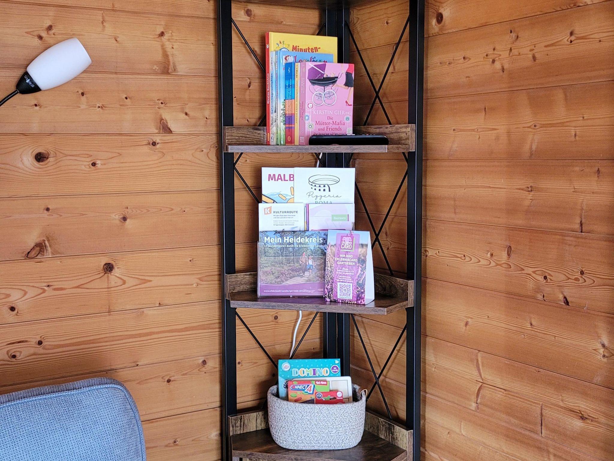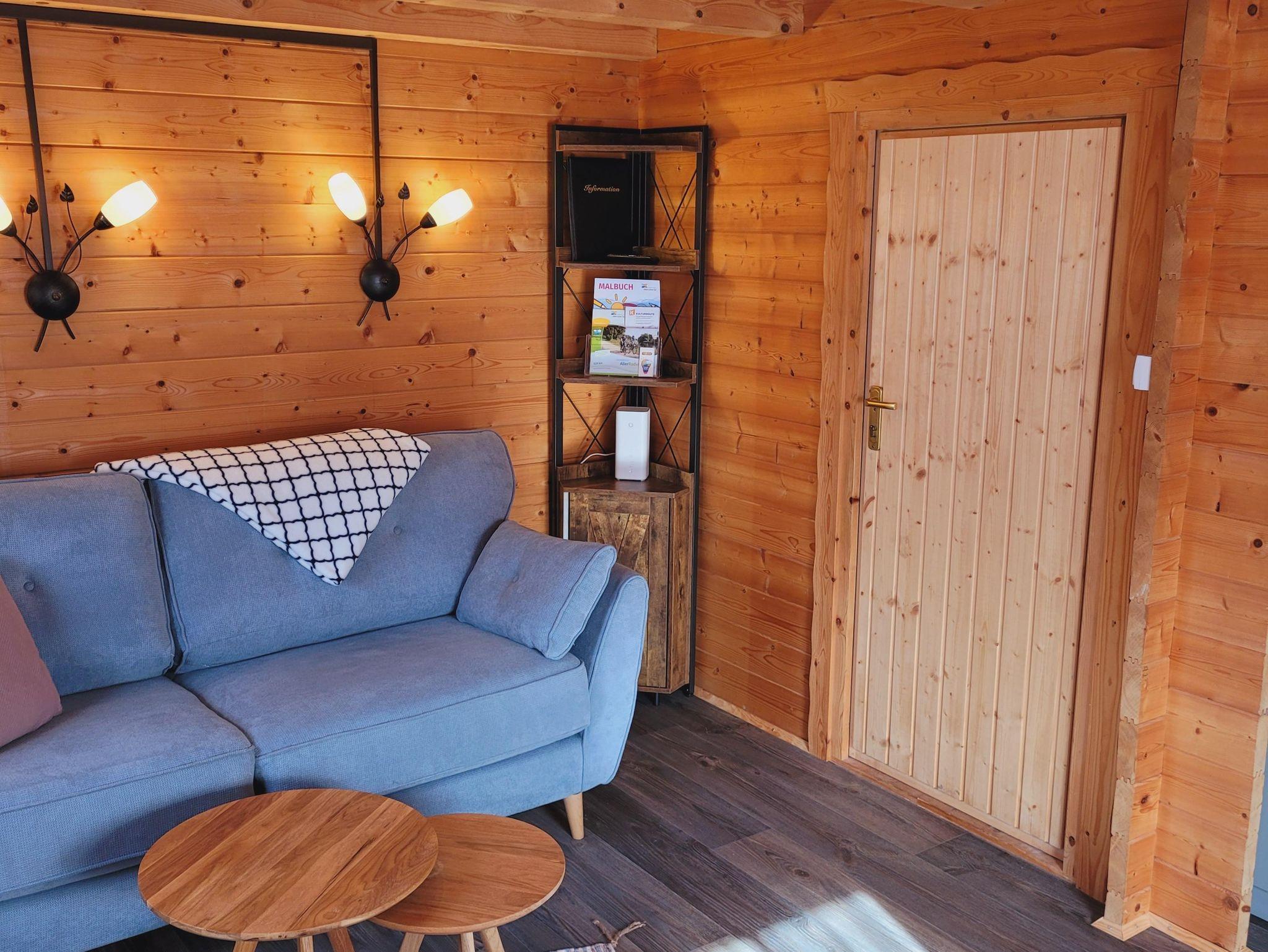 In unserer Sitzecke finden Sie ein gemütliches Sofa mit Schlaffunktion (140cm x 180cm). Die gemütliche Essecke bietet Platz für 4 Personen.Unsere Küche ist ausgestattet mit einem Induktionskochfeld (2 Felder), Backofen, Spüle, Kühlschrank, Toaster, Wasserkocher, Filterkaffeemaschine, Geschirr, Gläsern, Besteck, div. Küchenutensilien und vielem mehr. Damit Sie nicht jede Kleinigkeit mitbringen müssen, stelle ich Ihnen Geschirrhandtücher, Spüllappen, Zucker, Öl, Salz und Pfeffer, Kaffeefilter gerne zur Verfügung.Zum Schlafen geht es in die erste Etage.Geschlafen wird in einem Doppelbett (180cm x 200cm, Lattenrost und hochwertige Matratze). Zusätzlich befindet sich oben Stauraum für Ihre Kleidung. Nach oben gelangen Sie über eine Holztreppe.Unser Badezimmer verfügt über ein WC, Dusche, Waschbecken mit beleuchtetem Spiegel, Fön und Handseife.Auf der überdachten Terrasse finden Sie neben Sitzmöglichkeiten einen Elektrogrill, der zum Kochen im Freien einlädt.