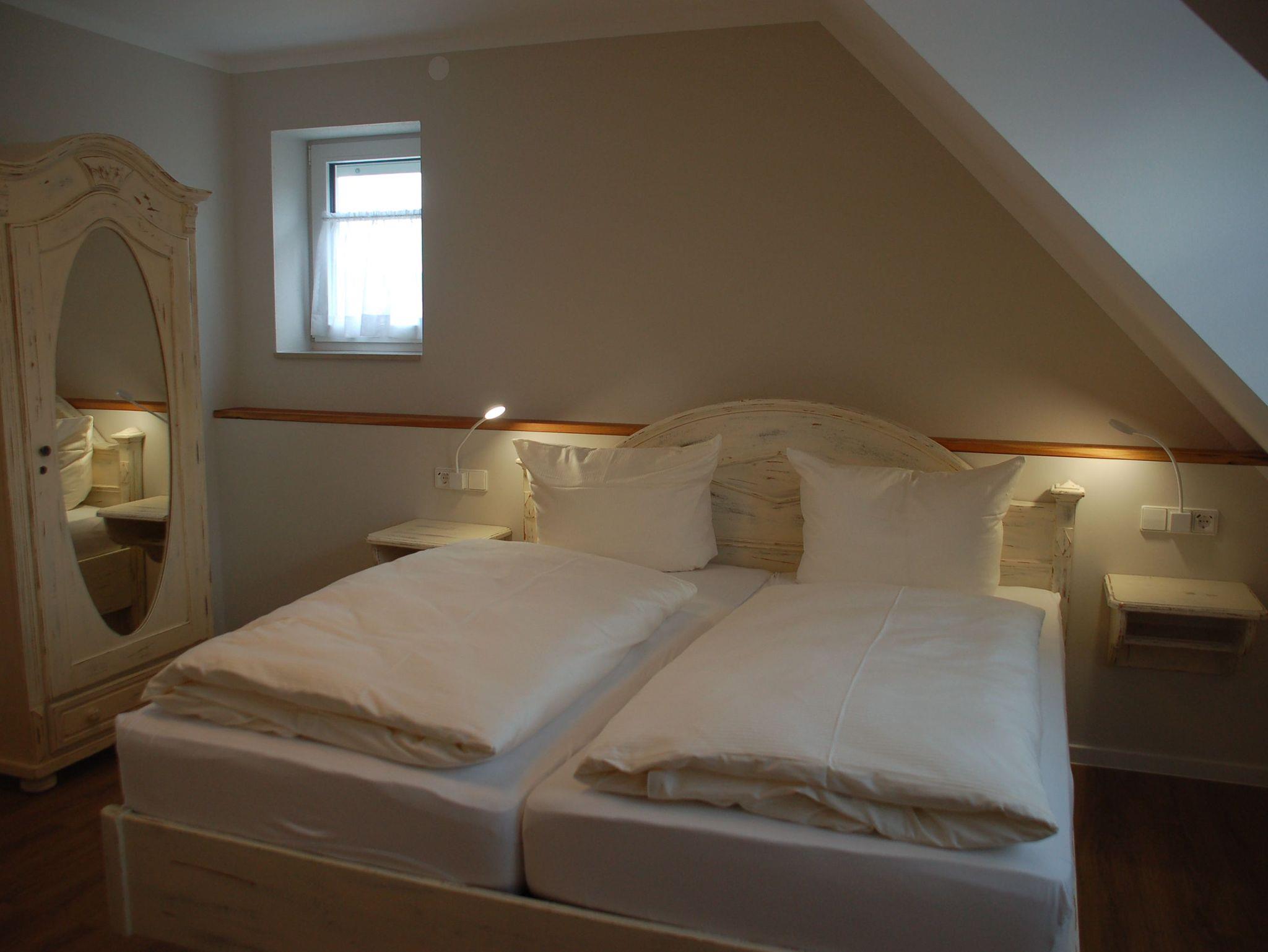 Im Elternschlafzimmer erwartet unsere Gäste eine 180 cm breites Doppelbett sowie ein 140 cm langes Kinder-Gitterbett.