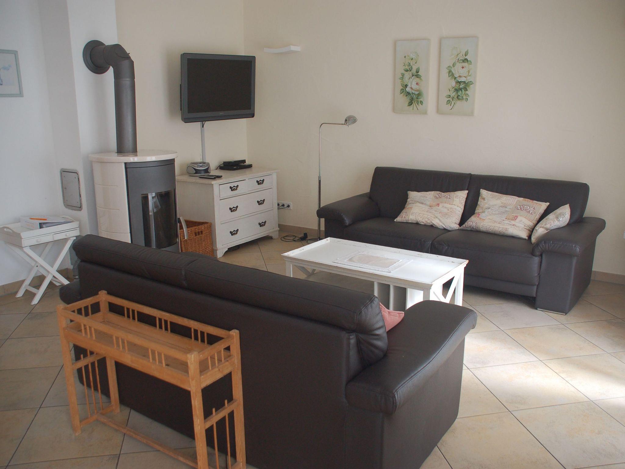 4 Schlafzimmer, großer Wohn-/Essbereich mit komplett ausgestatteter Küche, großem Esstisch, Kaminofen und gemütlicher Wohnlandschaft, ein Bad mit Wanne/Dusche/WC, ein weiteres Bad mit Dusche/WC, Windfang mit Garderobe, Sonnenterrasse, Kfz-Stellplätze