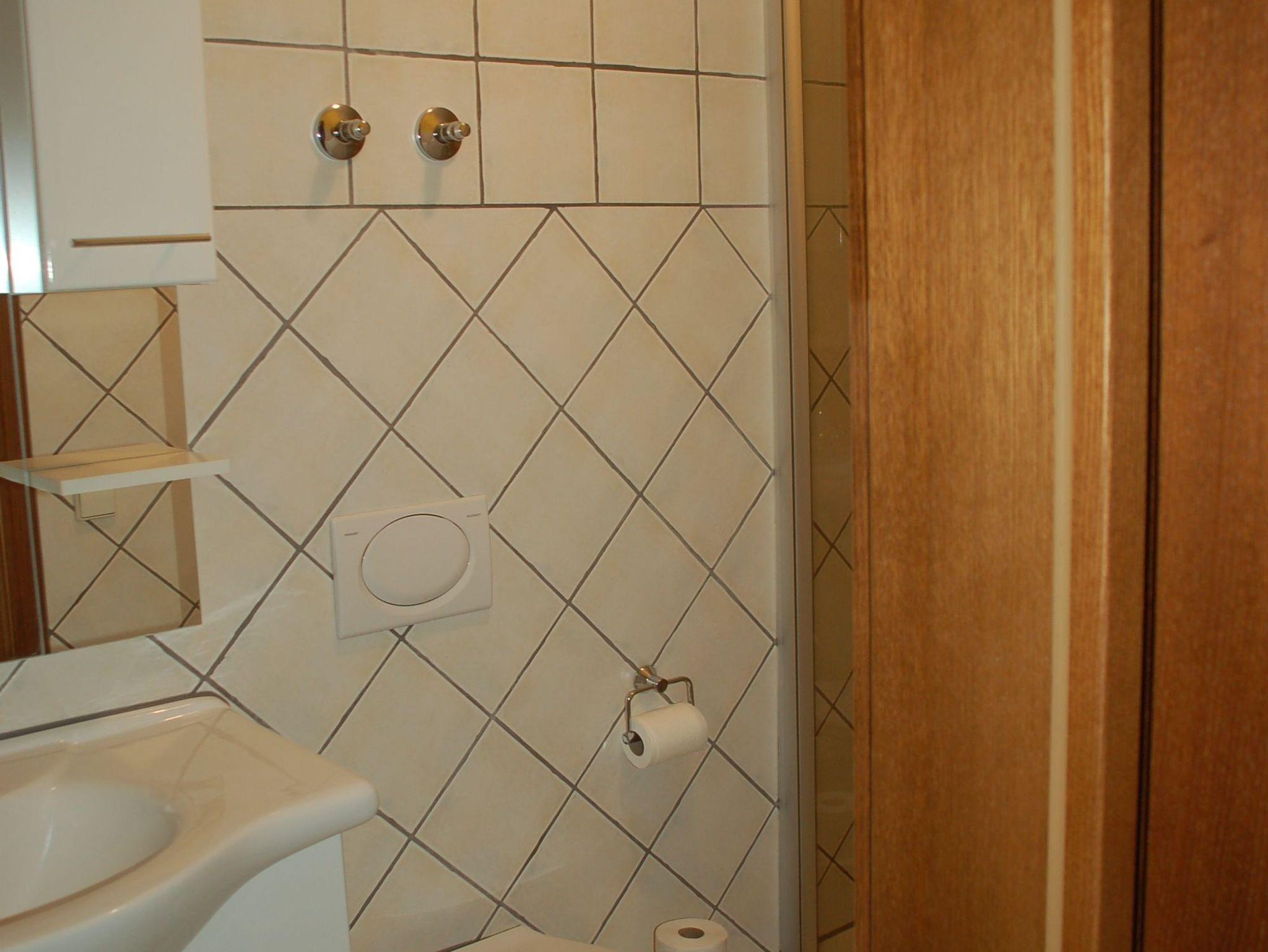 1 Schlafzimmer mit Zustellbett für 1 Kind, Küchenecke mit Essplatz, Wohnzimmer mit Schlafcouch, Bad mit Dusche/WC, separates WC, Windfang mit Garderobe, Balkon oder Terrasse zum Bach, Kfz-Stellplatz
