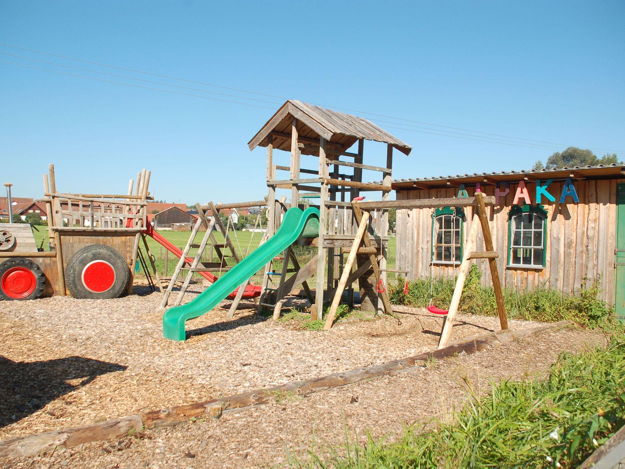 Bei schlechtem Wetter bietet die Spielscheune mit großer Rutsche und vielen Spielmöglichkeiten einen trockenen Platz zum Toben.