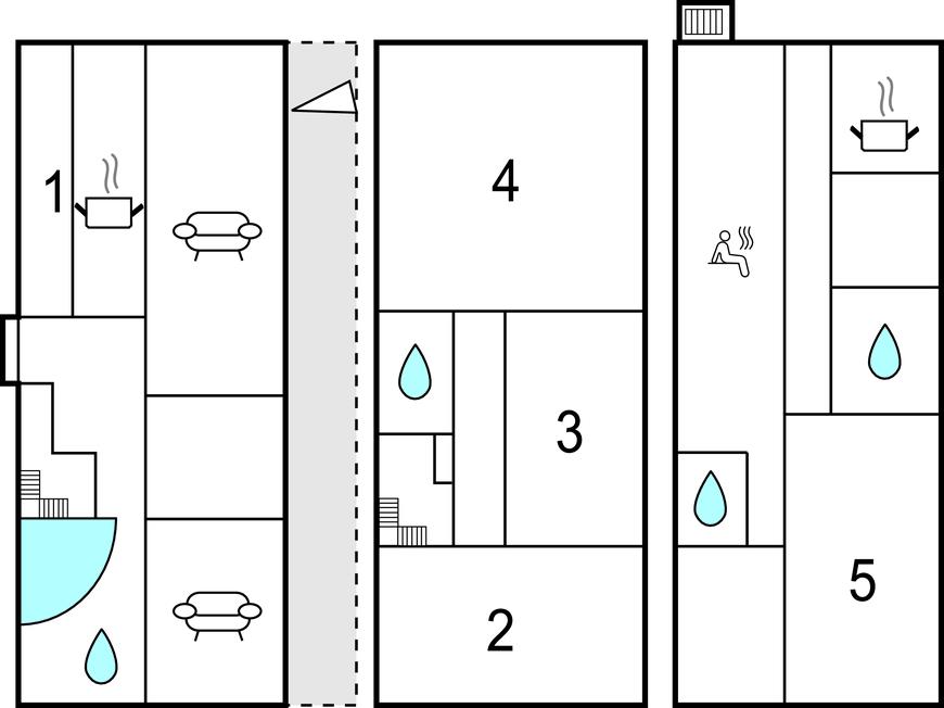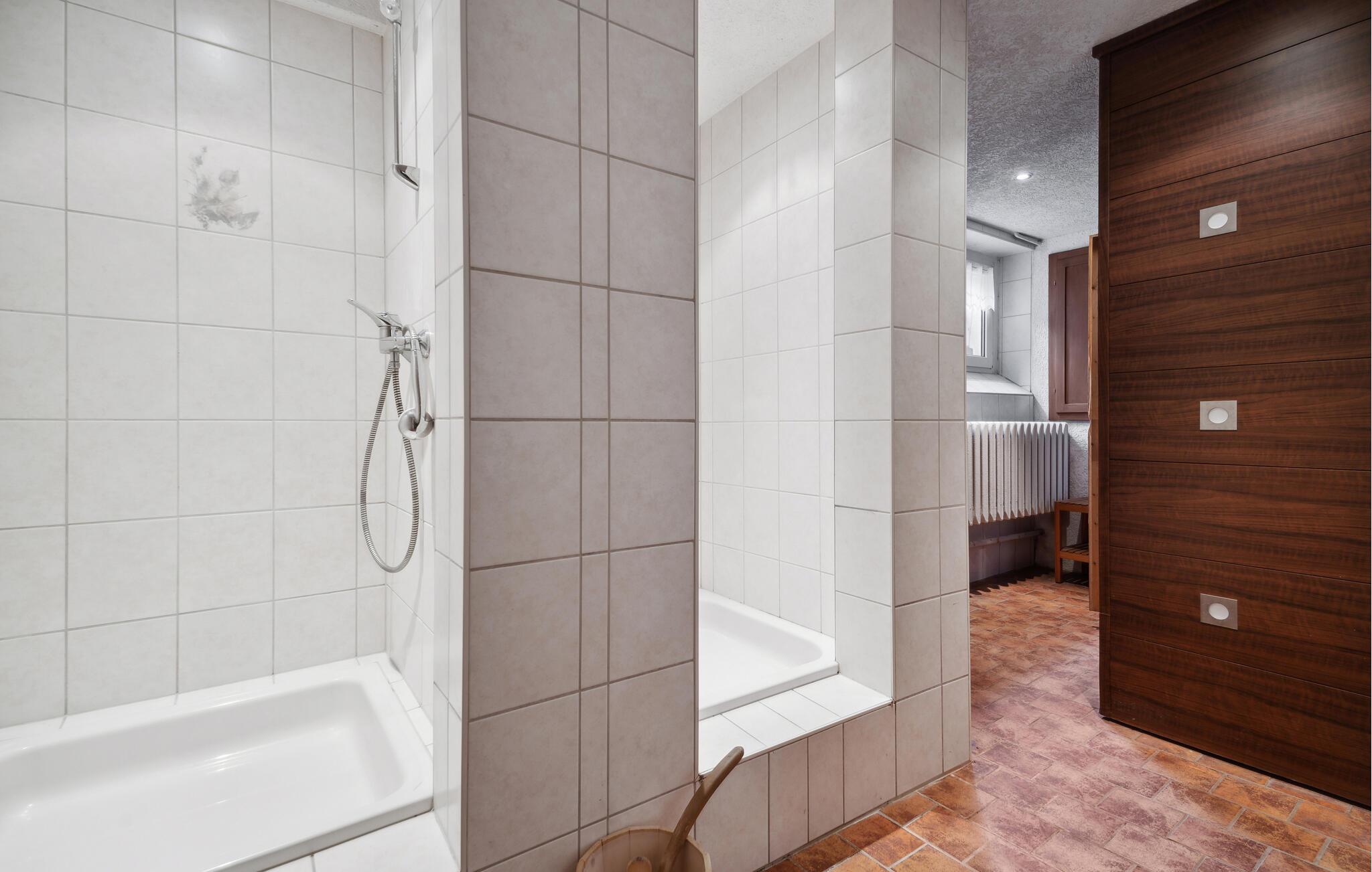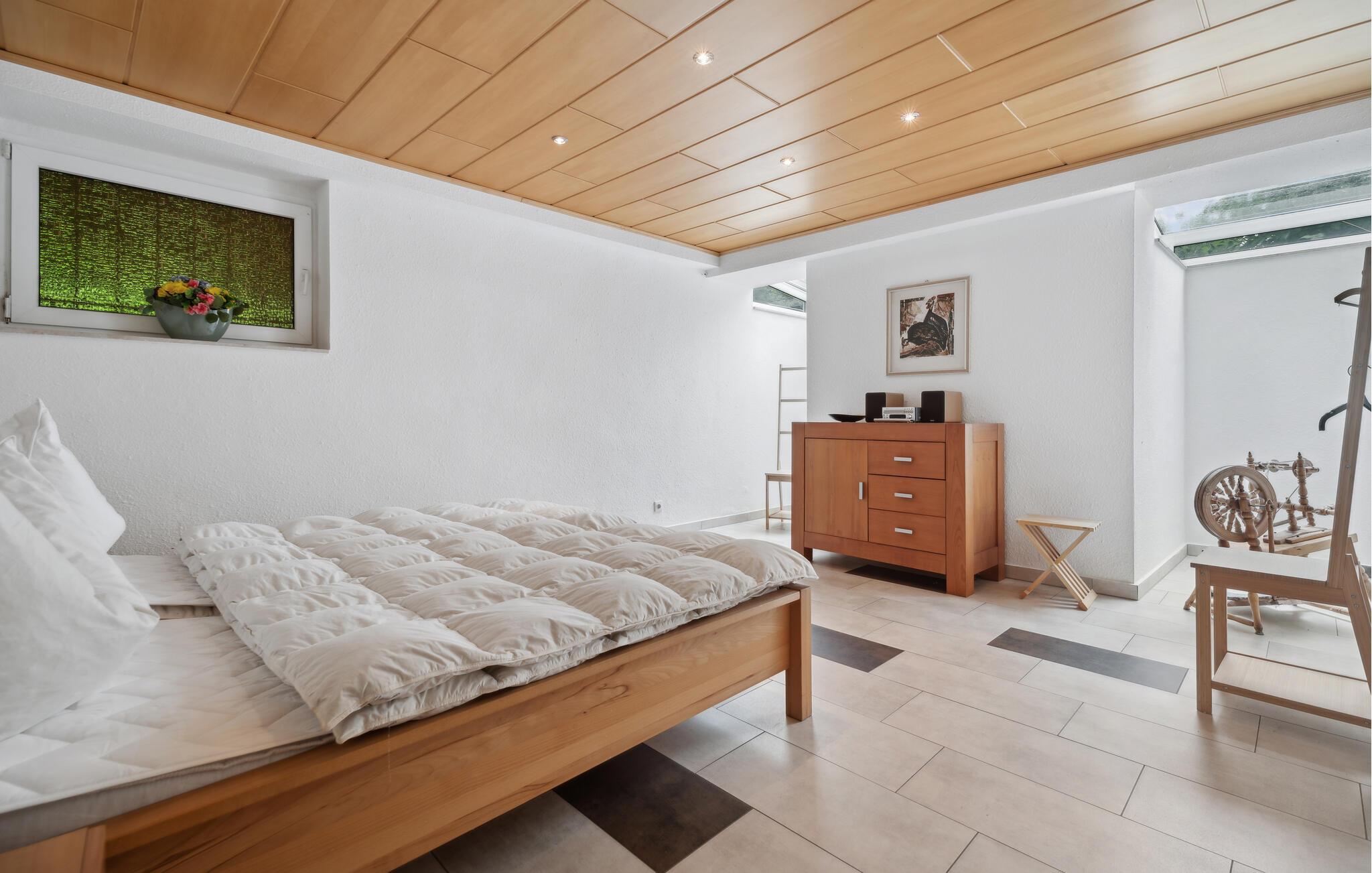 Overalt er det smagfuldt møbleret. Saunaen (i kælderen med 2 ekstra brusere) og en whirlpool til 2 personer indbyder til afslapning efter en dag fuld af aktivitet. Til de 3 soveværelser i tagetagen er der et ekstra badeværelse. Værelserne på øverste etage har skrå vægge. I husets underetage med indgang udefra er der en ekstra opholdsstue (soveværelse 5) med en dobbeltsovesofa, farve-tv, bad, et ekstra køkken og gulvvarme.
