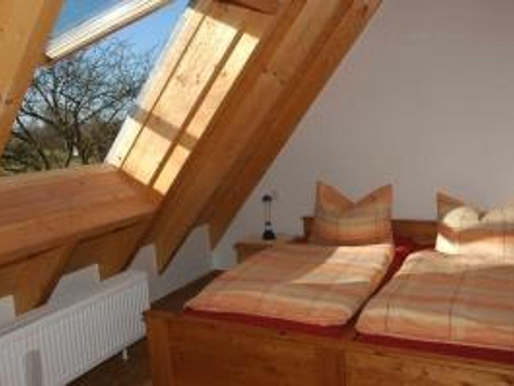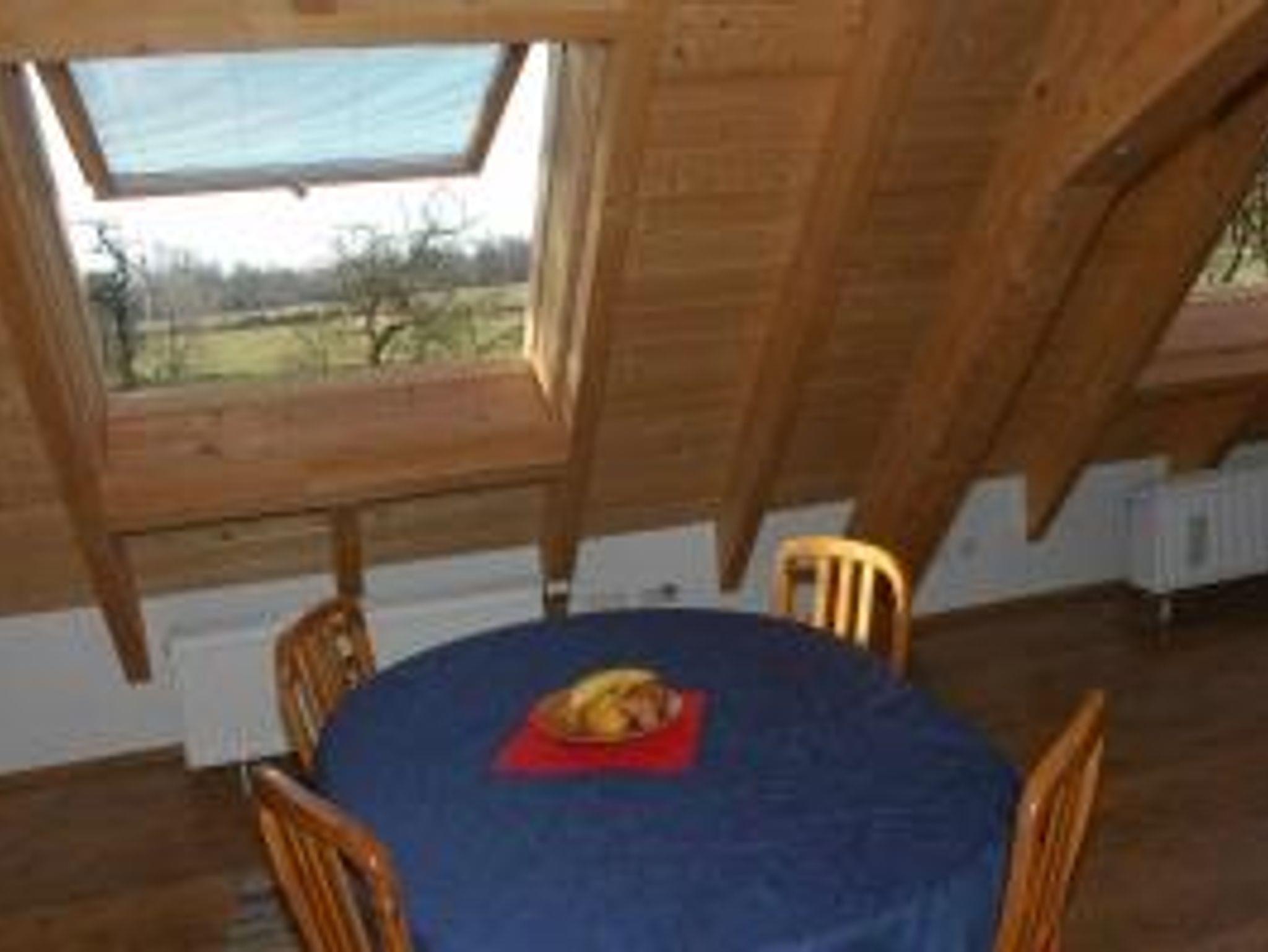 Die Ferienwohnung Fernblick befindet sich im Dachgeschoss der alten Schlossmühle. Sie bietet einen wunderschönen Blick auf das umliegende Land. Im ersten Stock der Ferienwohnung befinden sich der Ess-, Wohn- und ein Schlafbereich. Im zweiten Stock der Ferienwohnung befindet sich direkt unter dem Dach gelegen ein zweiter Schlafbereich. Ebenfalls im ersten Stock der Ferienwohnung sind die sanitären Anlagen, inkl. Dusche und WC.