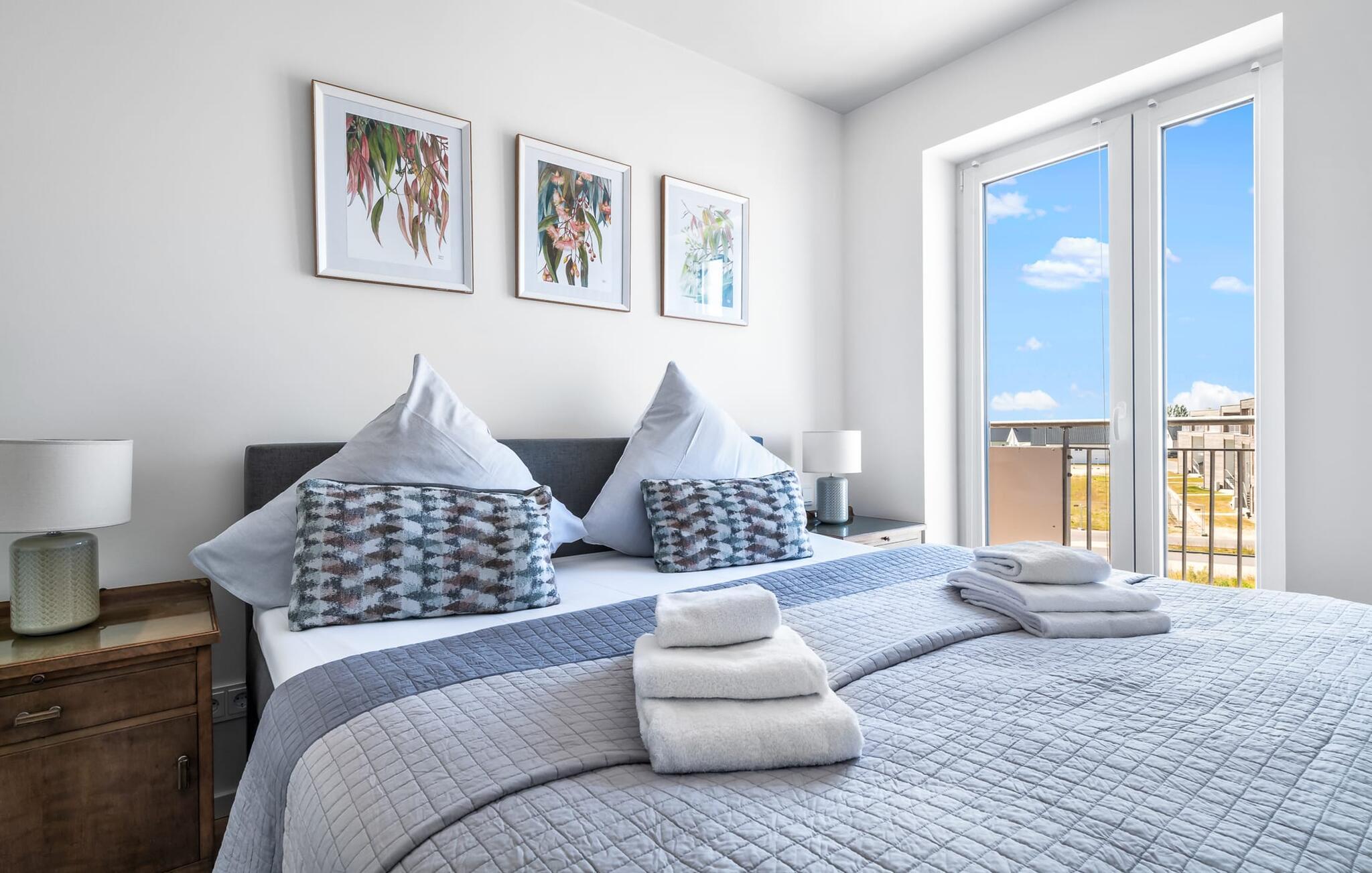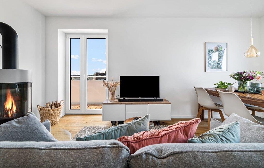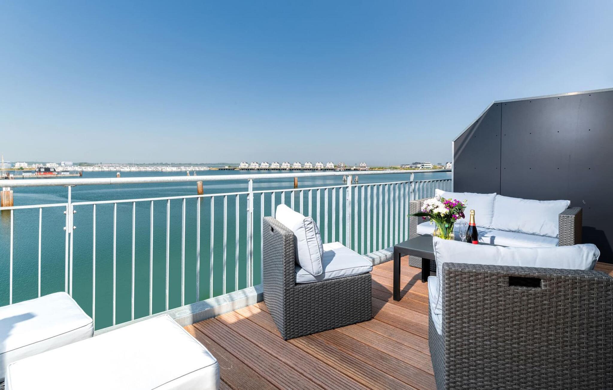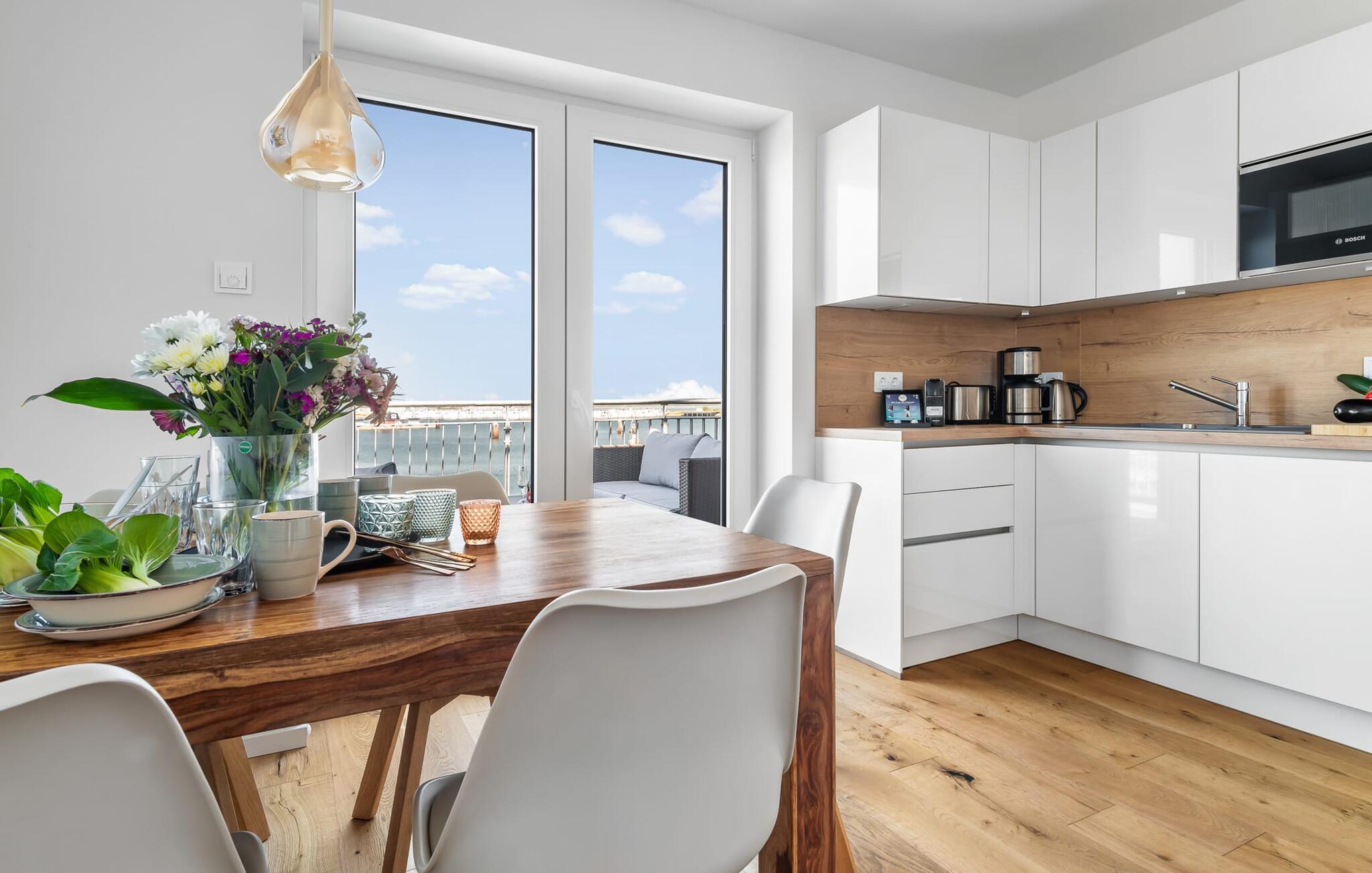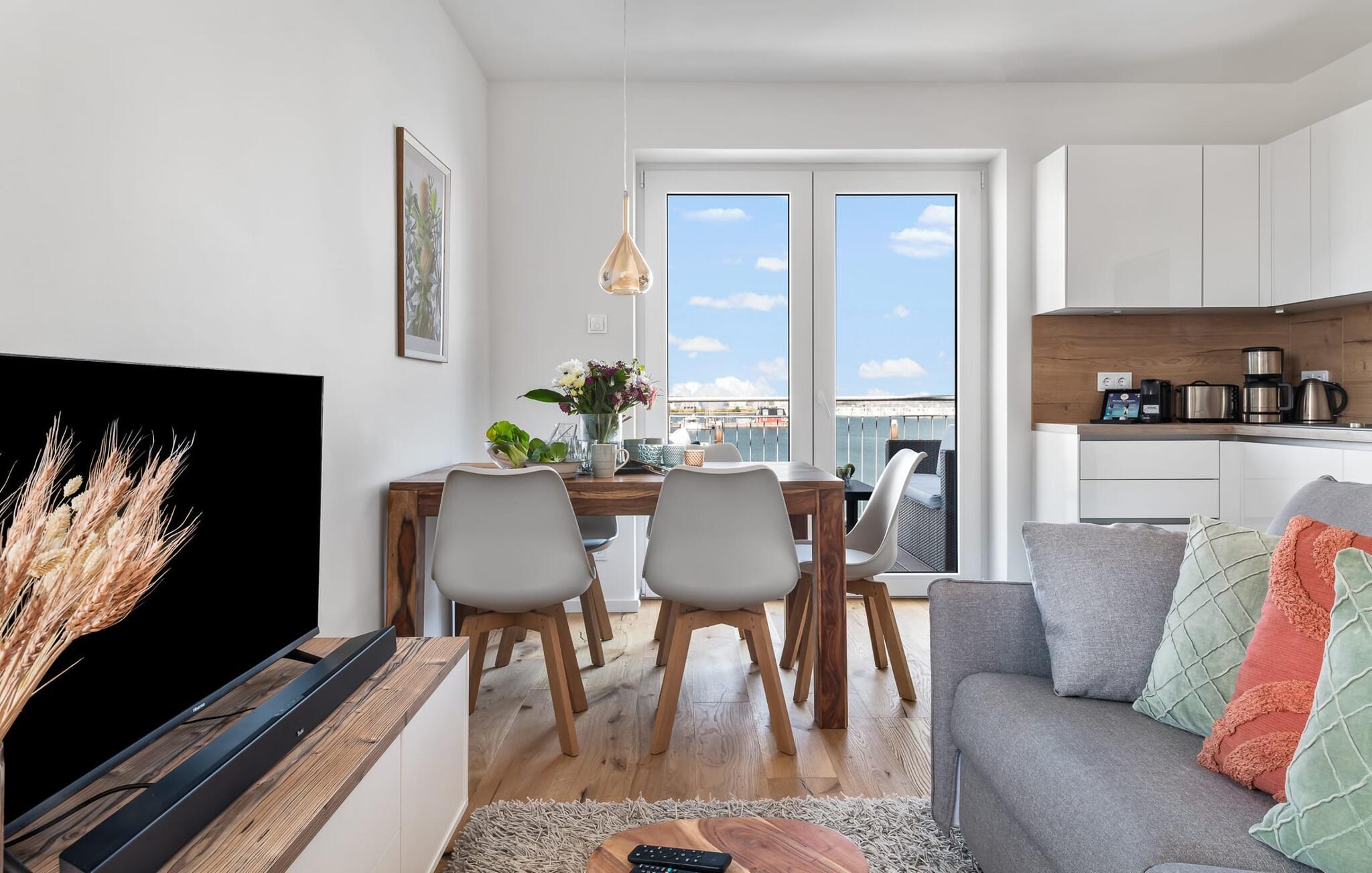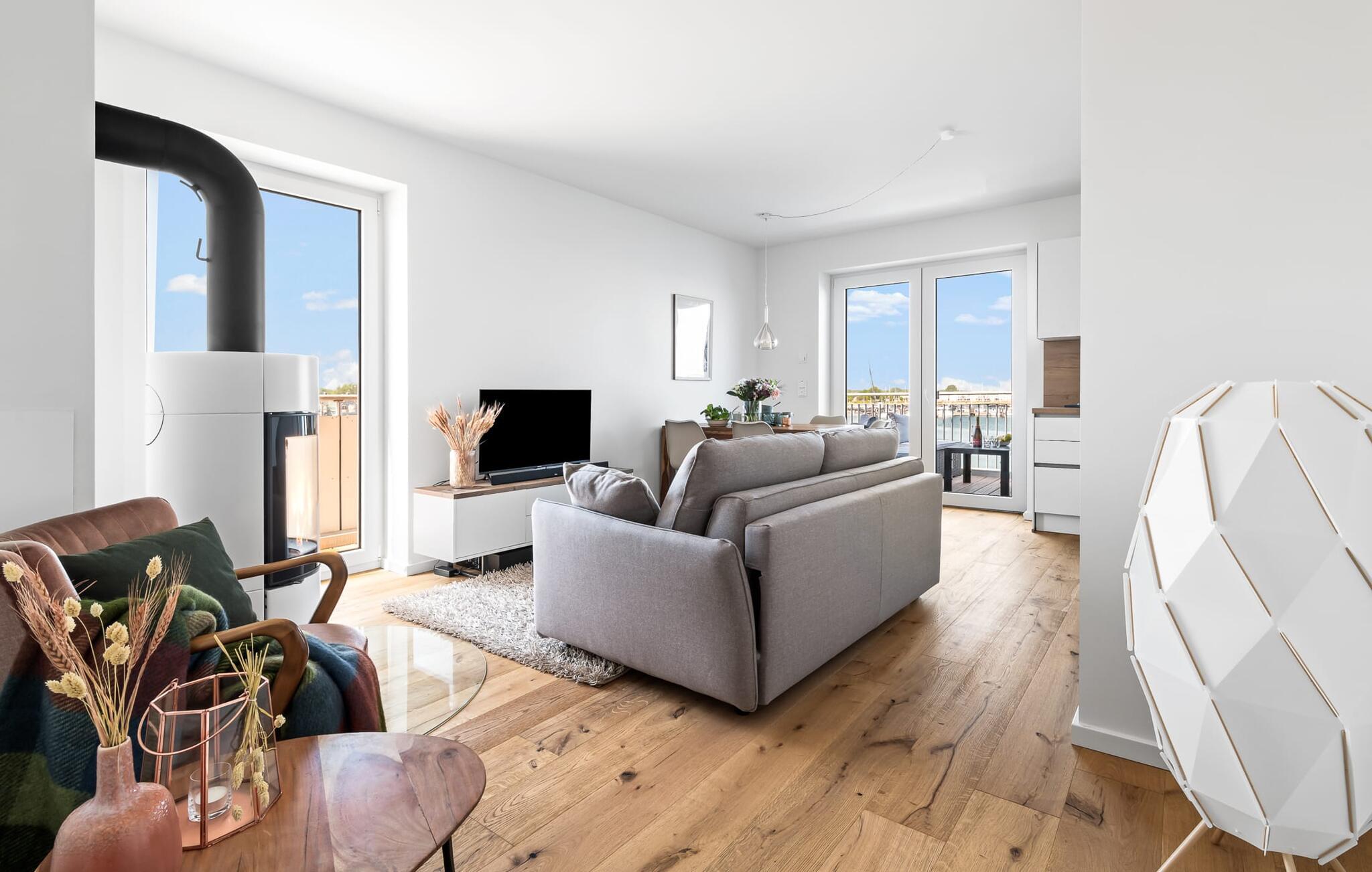 Velkommen til molen! Alle, der drømmer om sommer i Australien, men finder rejsen ned under alt for langt, har fundet deres perfekte feriedestination her. Takket være den enestående udsigt over havnen og havet er her mindst lige så smukt som ved Rosebud Bay eller endnu smukkere. Den populære havnepromenade med forskellige butikker og restauranter, samt Weidefelder sandstrand, er inden for gåafstand og gør lejligheden til det perfekte udgangspunkt for alle former for udflugter køkken vil få alle Østersøelskeres hjerter til at slå hurtigere. Herfra har I en umiskendelig udsigt over vandet og takket være den all-round terrasse med sydvest-orientering, som kan nås fra alle rum, sol hele dagen lang. Et andet højdepunkt kan også findes i opholdsområdet: Når solen går ned, og temperaturerne køler af, sørger pejsen for, at den forbliver varm og frem for alt behagelig. Vælg mellem en brølende pejs eller underholdning via Smart TV med mulighed for at bruge forskellige streamingudbydere. Indendørs underholdning tilbydes bestemt. De to soveværelser er også af høj kvalitet og moderne indrettede. Hvis vejret er for gråt til at se udenfor, vil indretningsaccenter med australsk tema sikre drømme om sommer, sol, strand og hav. Det store soveværelse har en dobbeltseng, det andet soveværelse har to enkeltsenge. En anden soveplads er tilgængelig på sovesofaen i stuen. I tilknytning til soveværelserne finder I brusebadet. Ud over alt det nyttige sikrer regnbruseren i gulvniveau og jeres egen infrarøde varmekabine maksimal feriekomfort. Der er parkeringsplads og cykelskur til rådighed ved parkeringspladsen. Lejligheden kan nemt nås via elevator. Vores favoritsted: At se solen gå ned på den store terrasse med en sundowner i hånden... Bemærk venligst: OstseeResort Olpenitz er meget populært, og der bygges fortsat i parken. Ikke desto mindre kan I se frem til en 5-stjernet standard og et førsteklasses ophold. Byggeaktiviteterne kommer ikke til at forstyrre jer på ferien, og derfor gives der ikke yderligere afslag i prisen.