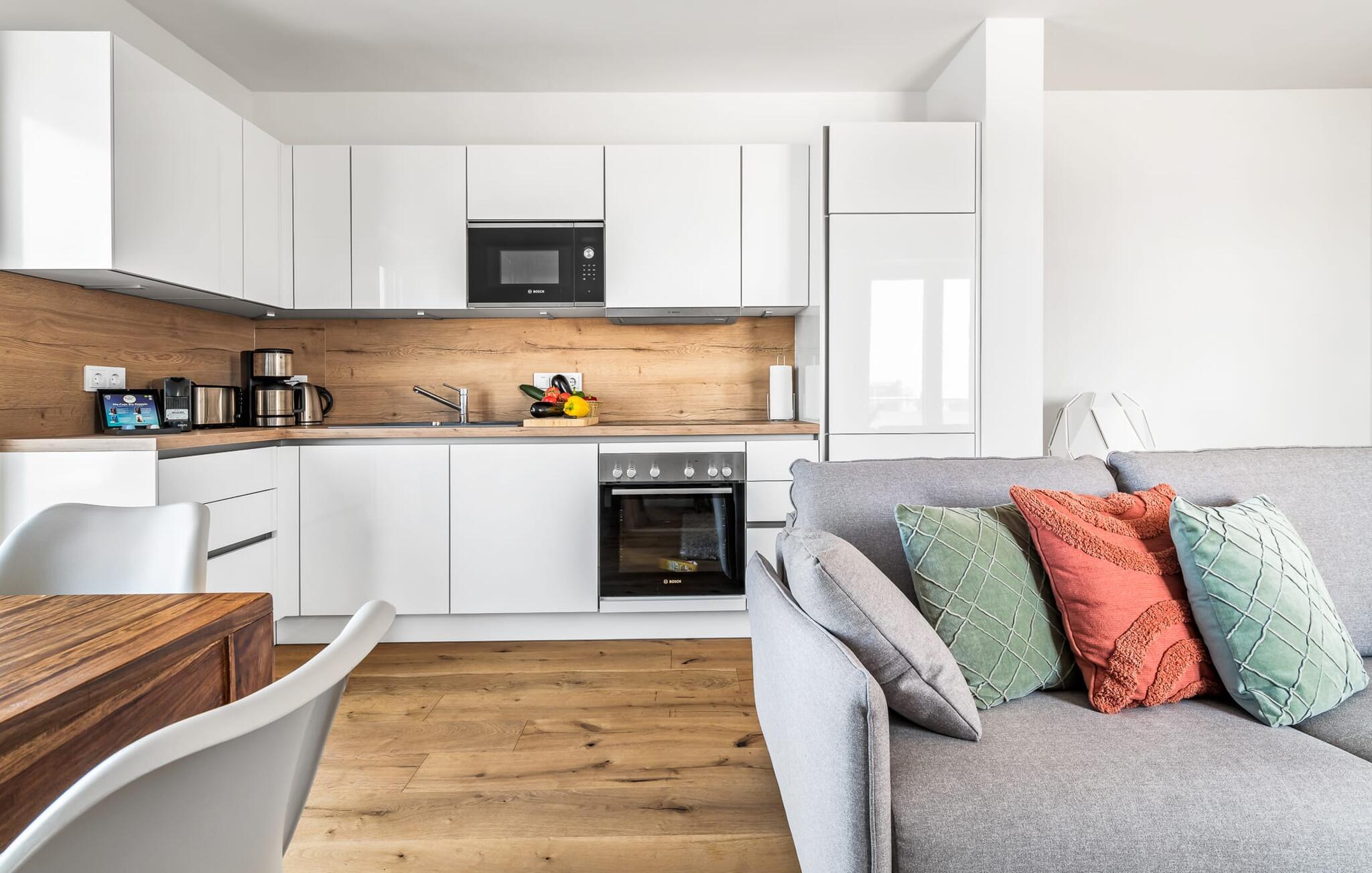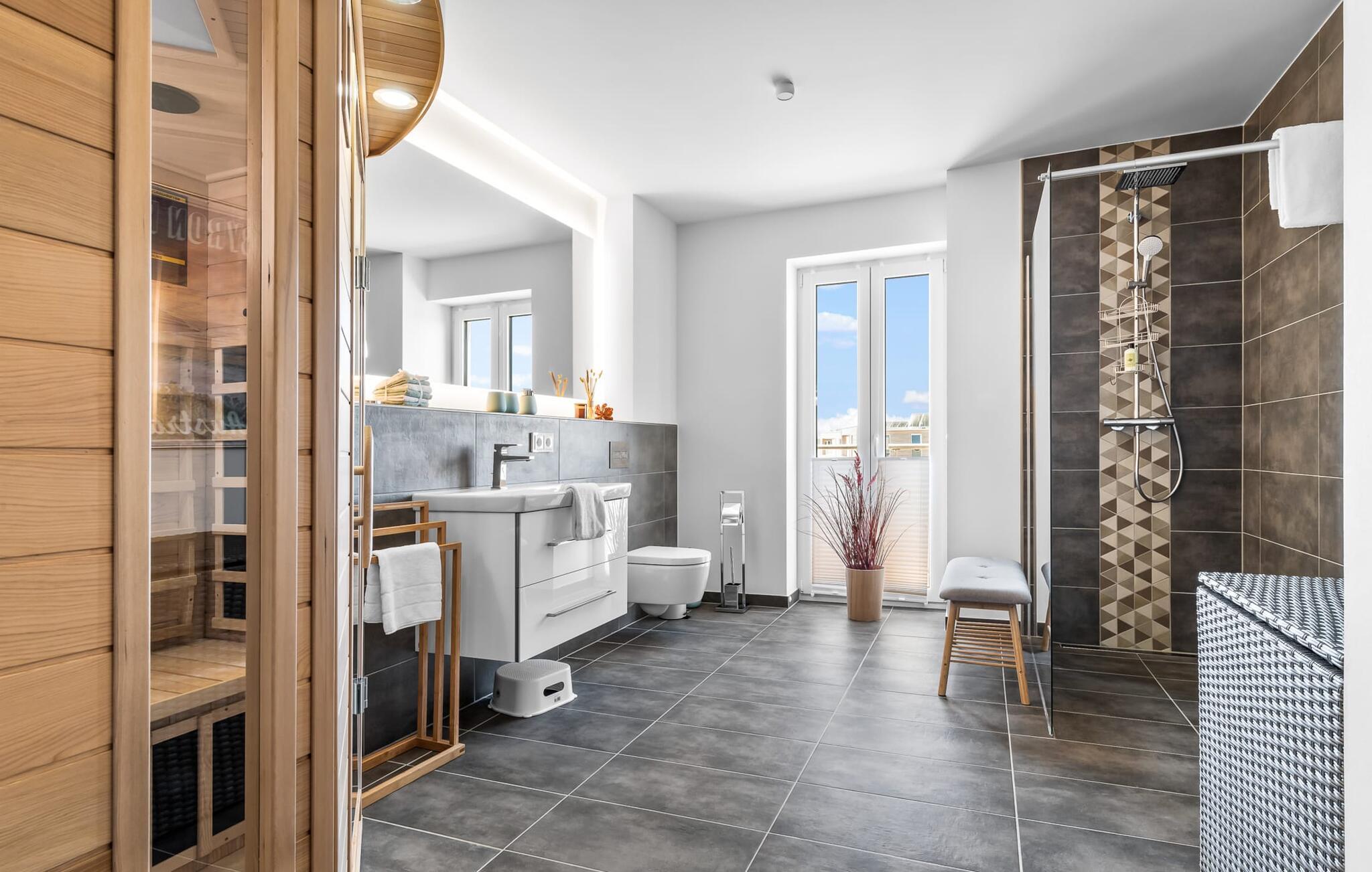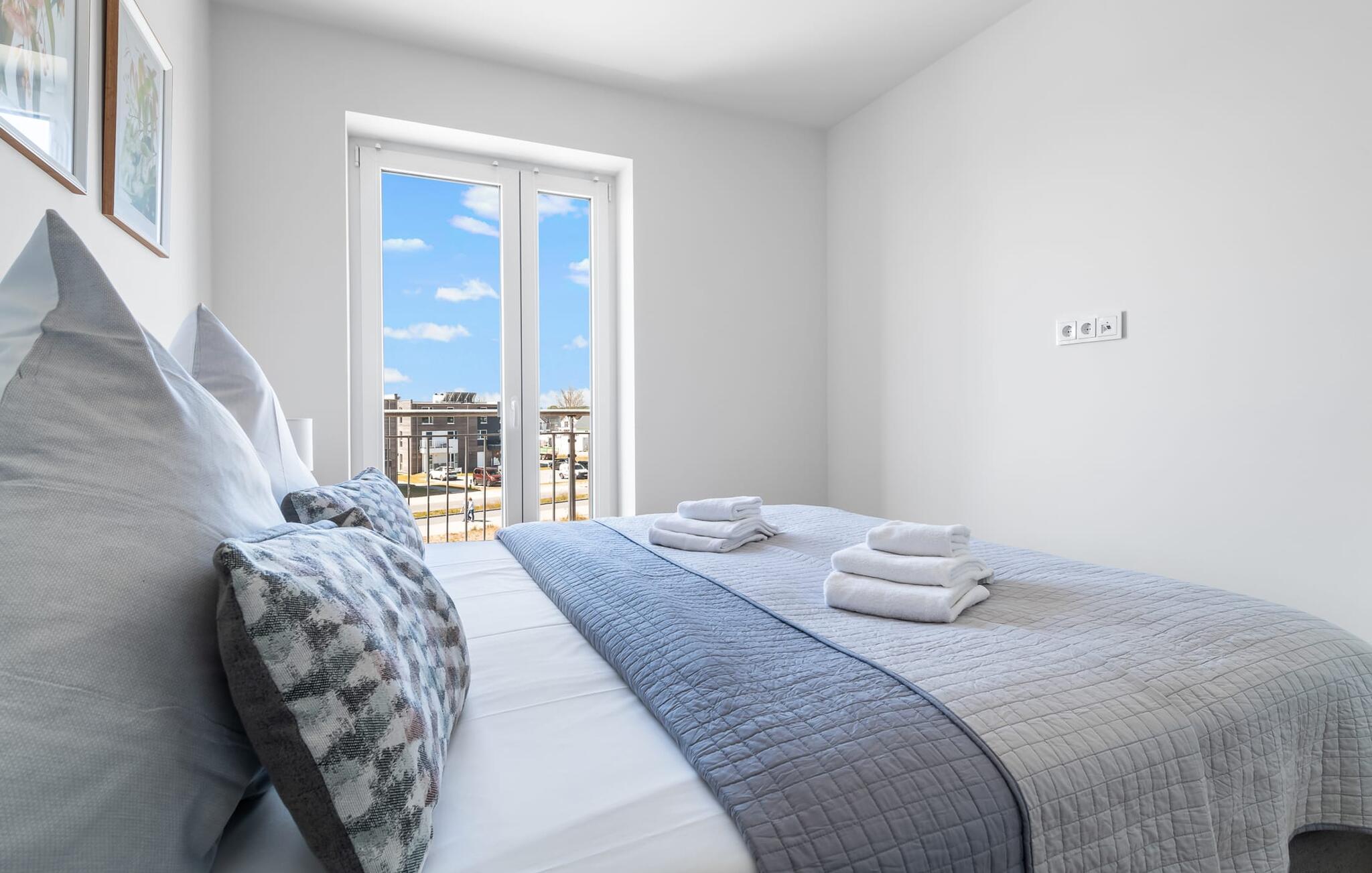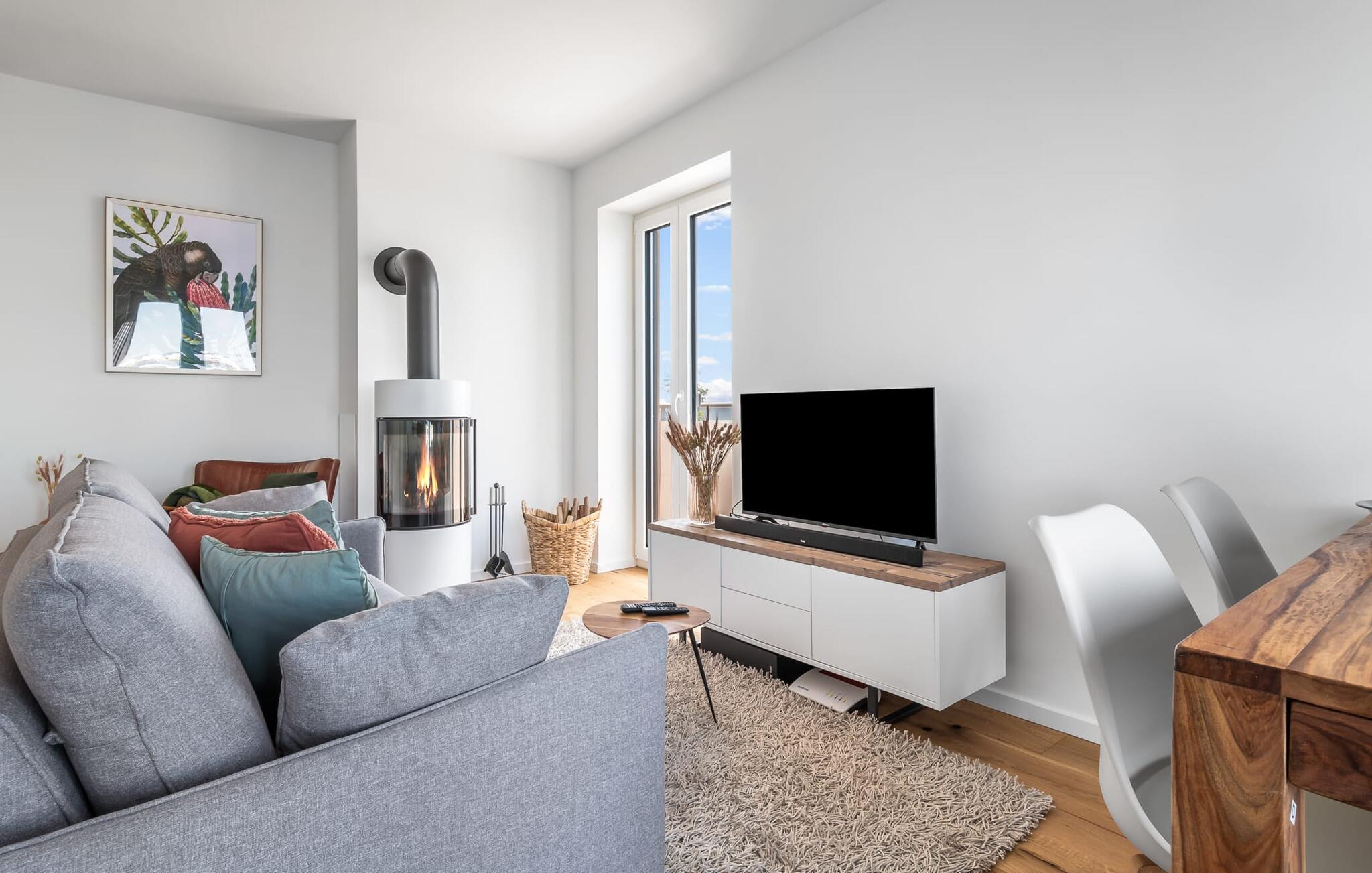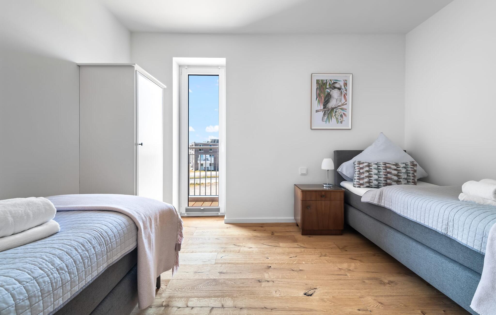 Velkommen til molen! Alle, der drømmer om sommer i Australien, men finder rejsen ned under alt for langt, har fundet deres perfekte feriedestination her. Takket være den enestående udsigt over havnen og havet er her mindst lige så smukt som ved Rosebud Bay eller endnu smukkere. Den populære havnepromenade med forskellige butikker og restauranter, samt Weidefelder sandstrand, er inden for gåafstand og gør lejligheden til det perfekte udgangspunkt for alle former for udflugter køkken vil få alle Østersøelskeres hjerter til at slå hurtigere. Herfra har I en umiskendelig udsigt over vandet og takket være den all-round terrasse med sydvest-orientering, som kan nås fra alle rum, sol hele dagen lang. Et andet højdepunkt kan også findes i opholdsområdet: Når solen går ned, og temperaturerne køler af, sørger pejsen for, at den forbliver varm og frem for alt behagelig. Vælg mellem en brølende pejs eller underholdning via Smart TV med mulighed for at bruge forskellige streamingudbydere. Indendørs underholdning tilbydes bestemt. De to soveværelser er også af høj kvalitet og moderne indrettede. Hvis vejret er for gråt til at se udenfor, vil indretningsaccenter med australsk tema sikre drømme om sommer, sol, strand og hav. Det store soveværelse har en dobbeltseng, det andet soveværelse har to enkeltsenge. En anden soveplads er tilgængelig på sovesofaen i stuen. I tilknytning til soveværelserne finder I brusebadet. Ud over alt det nyttige sikrer regnbruseren i gulvniveau og jeres egen infrarøde varmekabine maksimal feriekomfort. Der er parkeringsplads og cykelskur til rådighed ved parkeringspladsen. Lejligheden kan nemt nås via elevator. Vores favoritsted: At se solen gå ned på den store terrasse med en sundowner i hånden... Bemærk venligst: OstseeResort Olpenitz er meget populært, og der bygges fortsat i parken. Ikke desto mindre kan I se frem til en 5-stjernet standard og et førsteklasses ophold. Byggeaktiviteterne kommer ikke til at forstyrre jer på ferien, og derfor gives der ikke yderligere afslag i prisen.