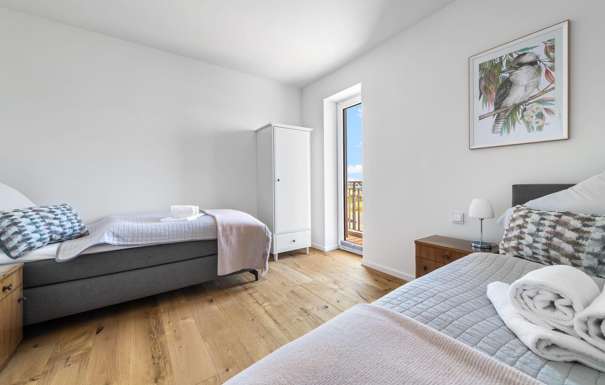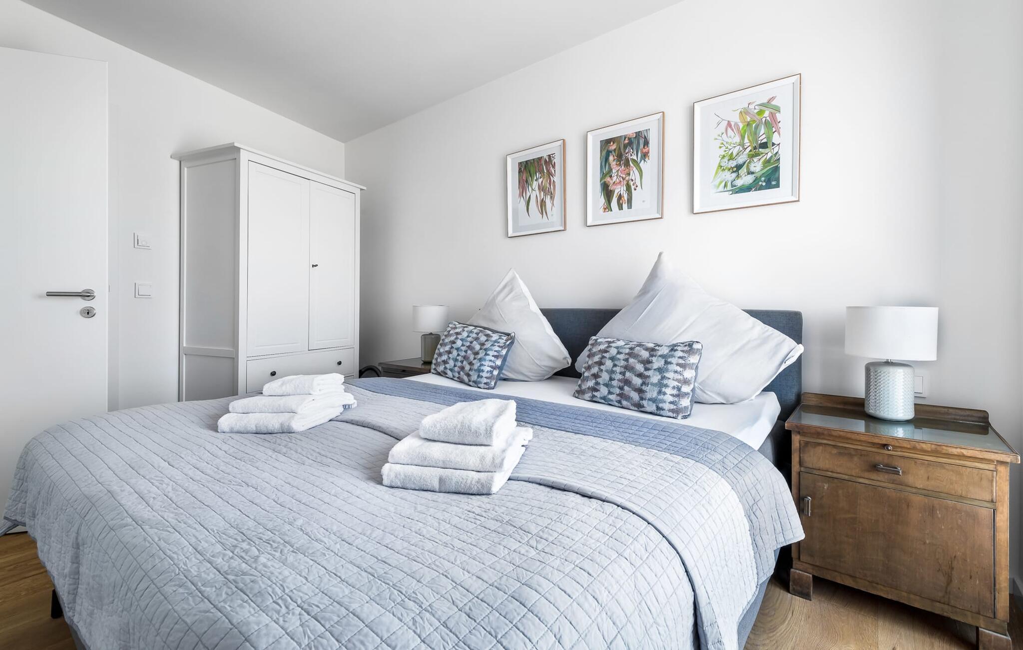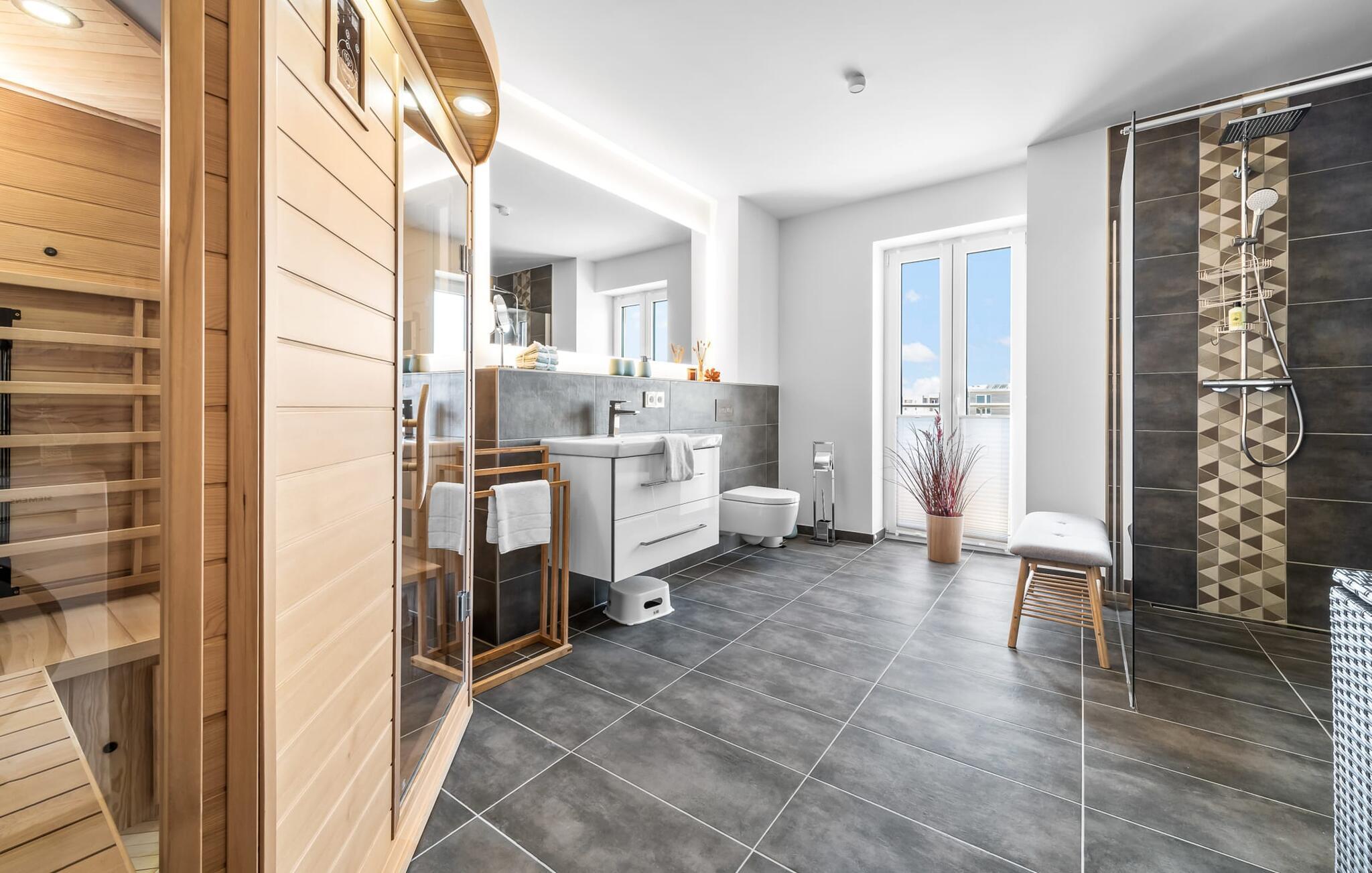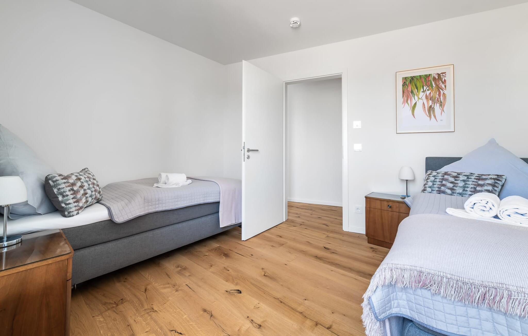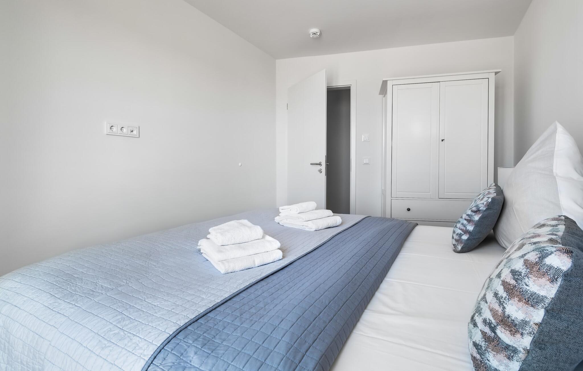 Velkommen til molen! Alle, der drømmer om sommer i Australien, men finder rejsen ned under alt for langt, har fundet deres perfekte feriedestination her. Takket være den enestående udsigt over havnen og havet er her mindst lige så smukt som ved Rosebud Bay eller endnu smukkere. Den populære havnepromenade med forskellige butikker og restauranter, samt Weidefelder sandstrand, er inden for gåafstand og gør lejligheden til det perfekte udgangspunkt for alle former for udflugter køkken vil få alle Østersøelskeres hjerter til at slå hurtigere. Herfra har I en umiskendelig udsigt over vandet og takket være den all-round terrasse med sydvest-orientering, som kan nås fra alle rum, sol hele dagen lang. Et andet højdepunkt kan også findes i opholdsområdet: Når solen går ned, og temperaturerne køler af, sørger pejsen for, at den forbliver varm og frem for alt behagelig. Vælg mellem en brølende pejs eller underholdning via Smart TV med mulighed for at bruge forskellige streamingudbydere. Indendørs underholdning tilbydes bestemt. De to soveværelser er også af høj kvalitet og moderne indrettede. Hvis vejret er for gråt til at se udenfor, vil indretningsaccenter med australsk tema sikre drømme om sommer, sol, strand og hav. Det store soveværelse har en dobbeltseng, det andet soveværelse har to enkeltsenge. En anden soveplads er tilgængelig på sovesofaen i stuen. I tilknytning til soveværelserne finder I brusebadet. Ud over alt det nyttige sikrer regnbruseren i gulvniveau og jeres egen infrarøde varmekabine maksimal feriekomfort. Der er parkeringsplads og cykelskur til rådighed ved parkeringspladsen. Lejligheden kan nemt nås via elevator. Vores favoritsted: At se solen gå ned på den store terrasse med en sundowner i hånden... Bemærk venligst: OstseeResort Olpenitz er meget populært, og der bygges fortsat i parken. Ikke desto mindre kan I se frem til en 5-stjernet standard og et førsteklasses ophold. Byggeaktiviteterne kommer ikke til at forstyrre jer på ferien, og derfor gives der ikke yderligere afslag i prisen.