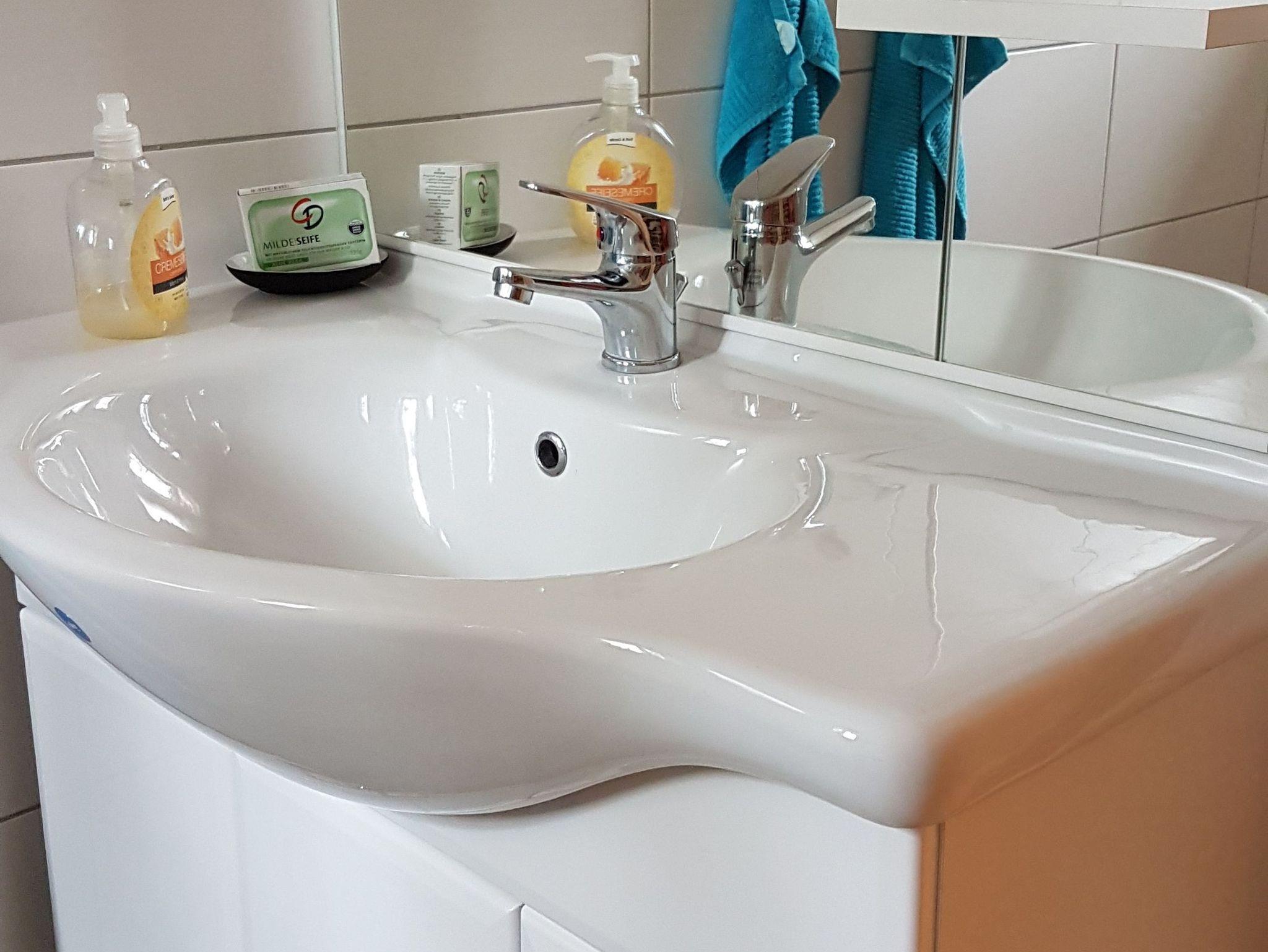 Das Duschbad überzeugt durch eine großzügige Dusche mit tiefem Einstieg, Handtuchheizkörper sowie viel Stauraum. Ein Fenster sorgt für Tageslicht.