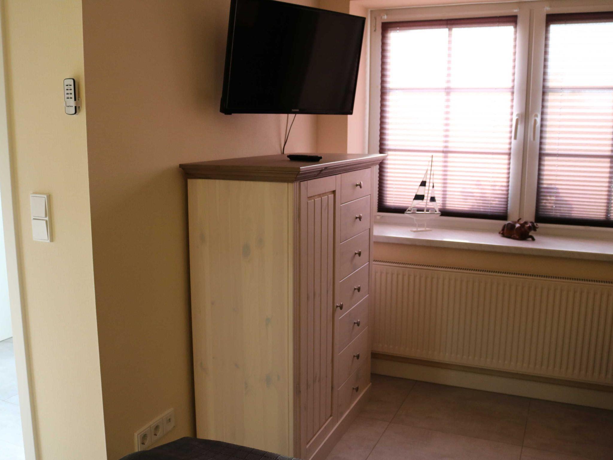 Das Schlafzimmer ist mit Boxspringbetten (80x200cm) ausgestattet, die entweder einzeln oder zusammengestellt werden können. Zwei Fernseher sorgen für Unterhaltung bei Groß und Klein.