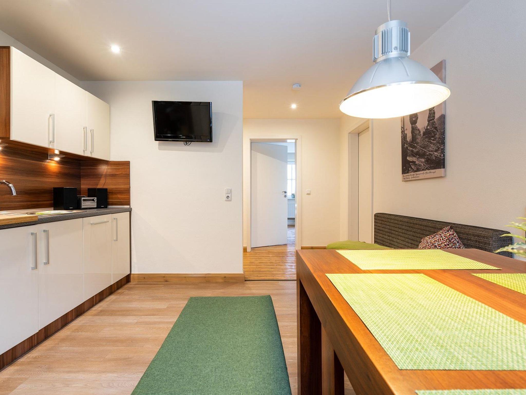 Die Ferienwohnung Schneeberg liegt in der 1. Etage der Felswelten. Sie bietet auf einer Wohnfläche von 65 m² Platz für 1-5 Personen mit 2 separaten Schlafzimmern. Der Charme dieser Wohnung wird unterstützt durch einen restaurierten Holzfußboden, einer klaren Innenarchitektur. Nichtraucherwohnung und Tierhaarallergiegeeignet!
