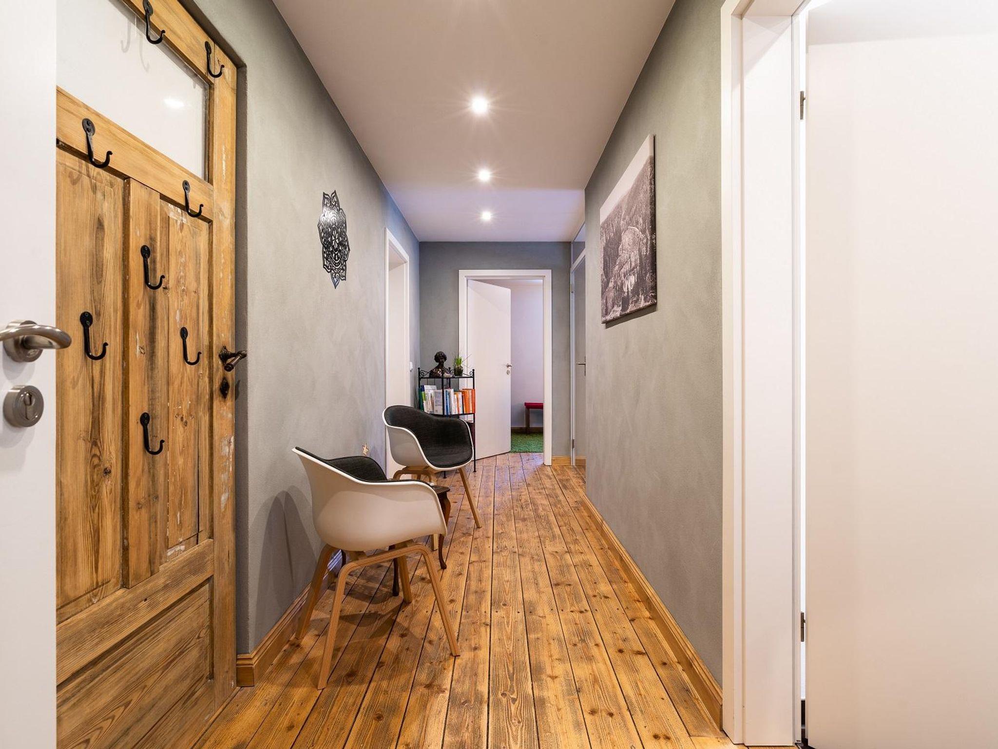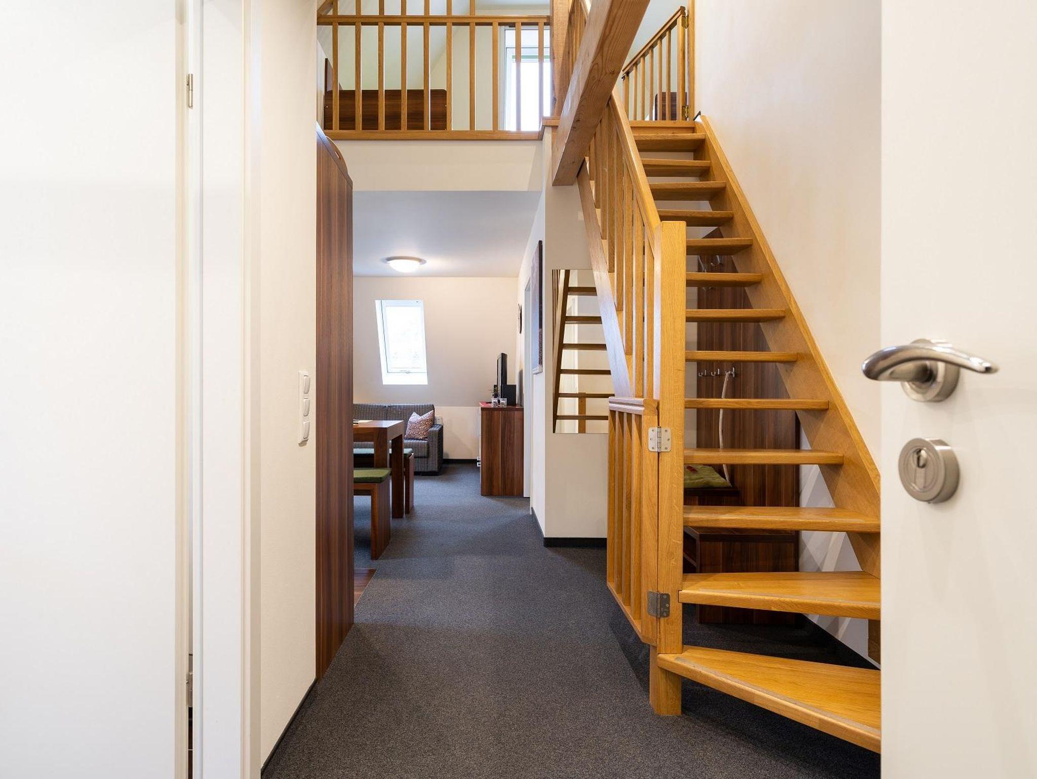 Eine großzügig, helle Ferienwohnung im 2. Stock des Hauses mit 1 separaten Schlafzimmer und einer Schlafgalerie, bietet Platz für 1 - 4 Personen und hat eine Größe von 65m². Der Charme dieser Wohnung stellt das sichtbare Fachwerk und die Galerie zum Schlafen mit der Wohlfühlatmosphäre eines gemütlichen Dachgeschosses dar. Besonderer Wert wurde auf die Sicherheit unserer Kleinsten gelegt und die Treppe mit Schutzgittern versehen. Nichtraucherwohnung, sowie Tierhaarallergie geeignet.