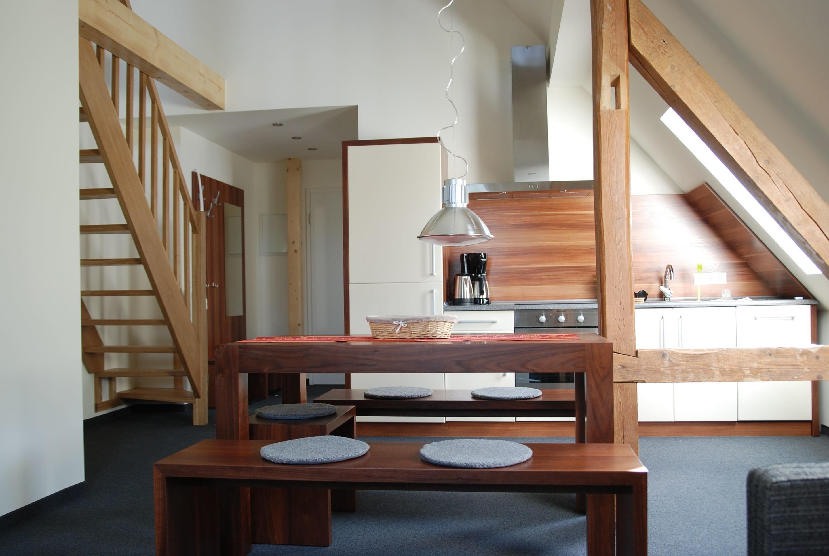 Die stillvoll und gemütlichen eingerichtete Ferienwohnung, liegt im Dachgeschoss der Felswelten und bietet für 2 – 4 Personen größzügig Platz, mit schöner Schlafgalerie