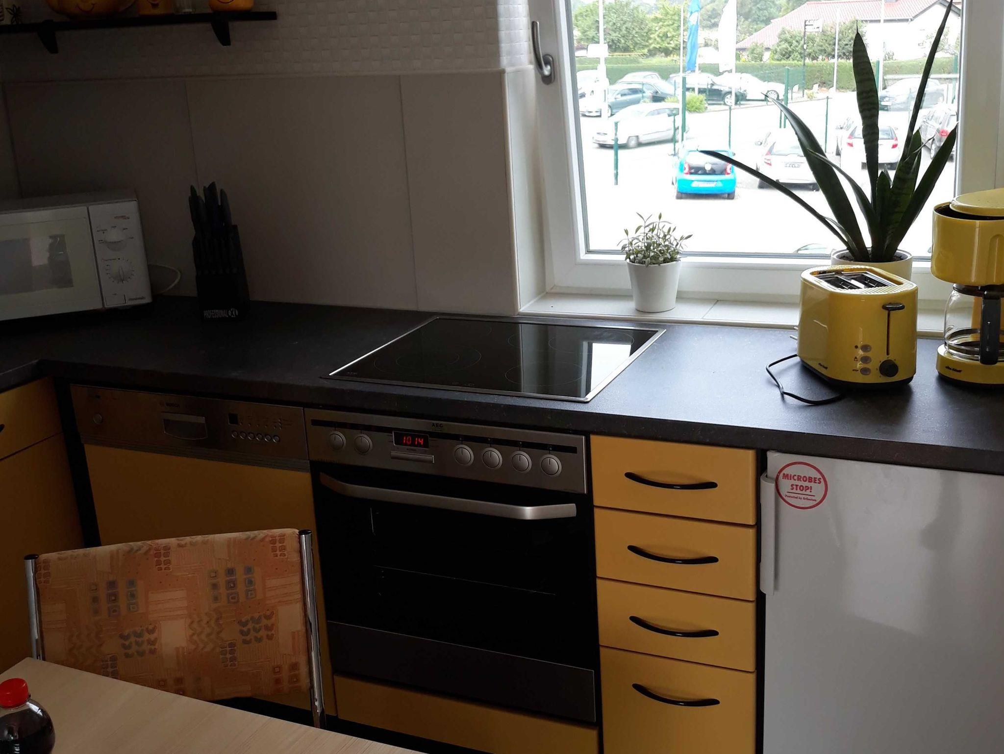 Die Küche ist mit Elektroherd, Mikrowelle , Geschirrspülmaschine, Kühlschrank mit Gefrierfach, Kaffeemaschine, Toaster und Wasserkocher,Geschirr, Besteck und Gläsern bestens bestückt.