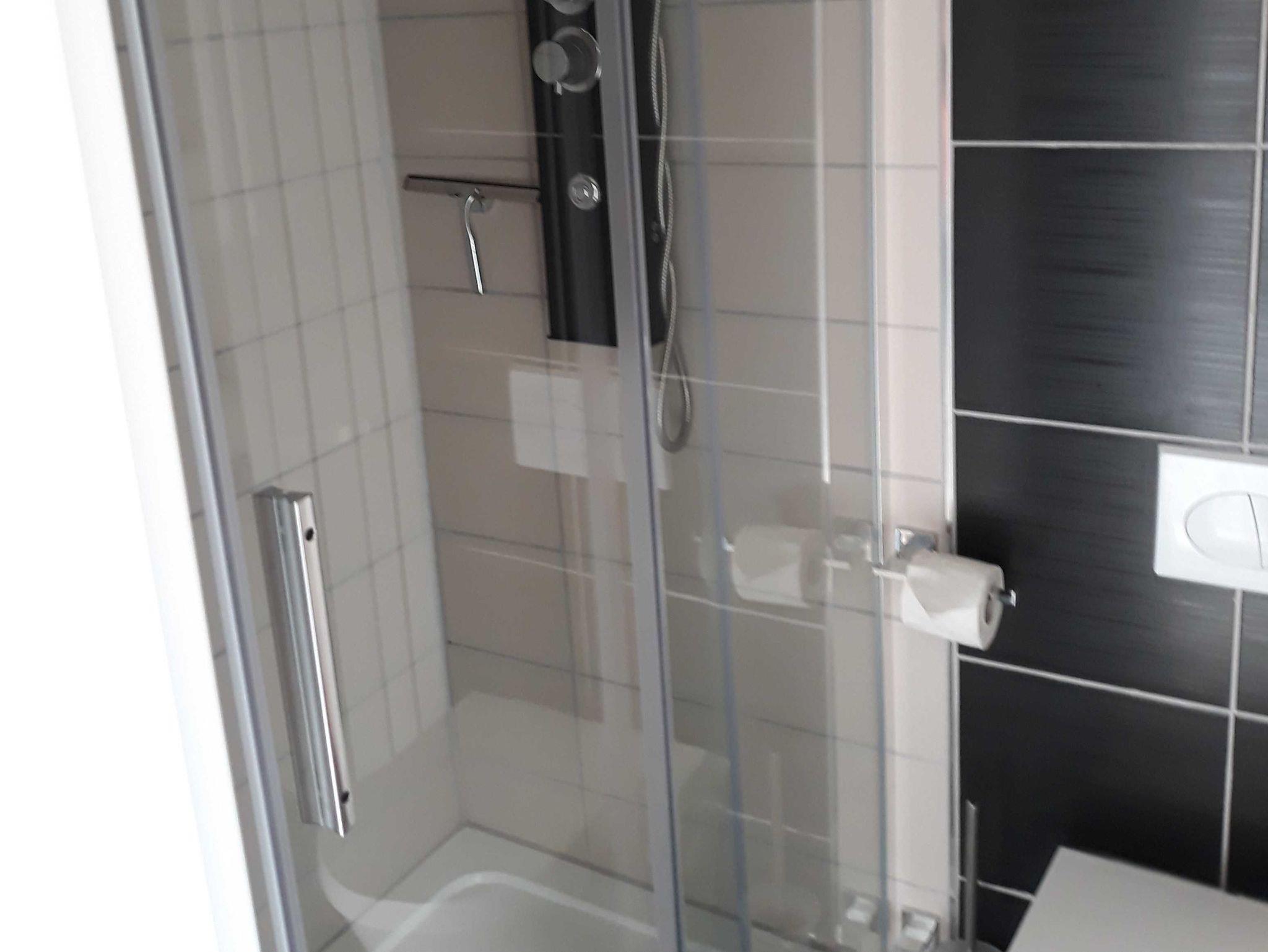 Das Bad ist mit einer großzügigen Dusche ausgestattet.