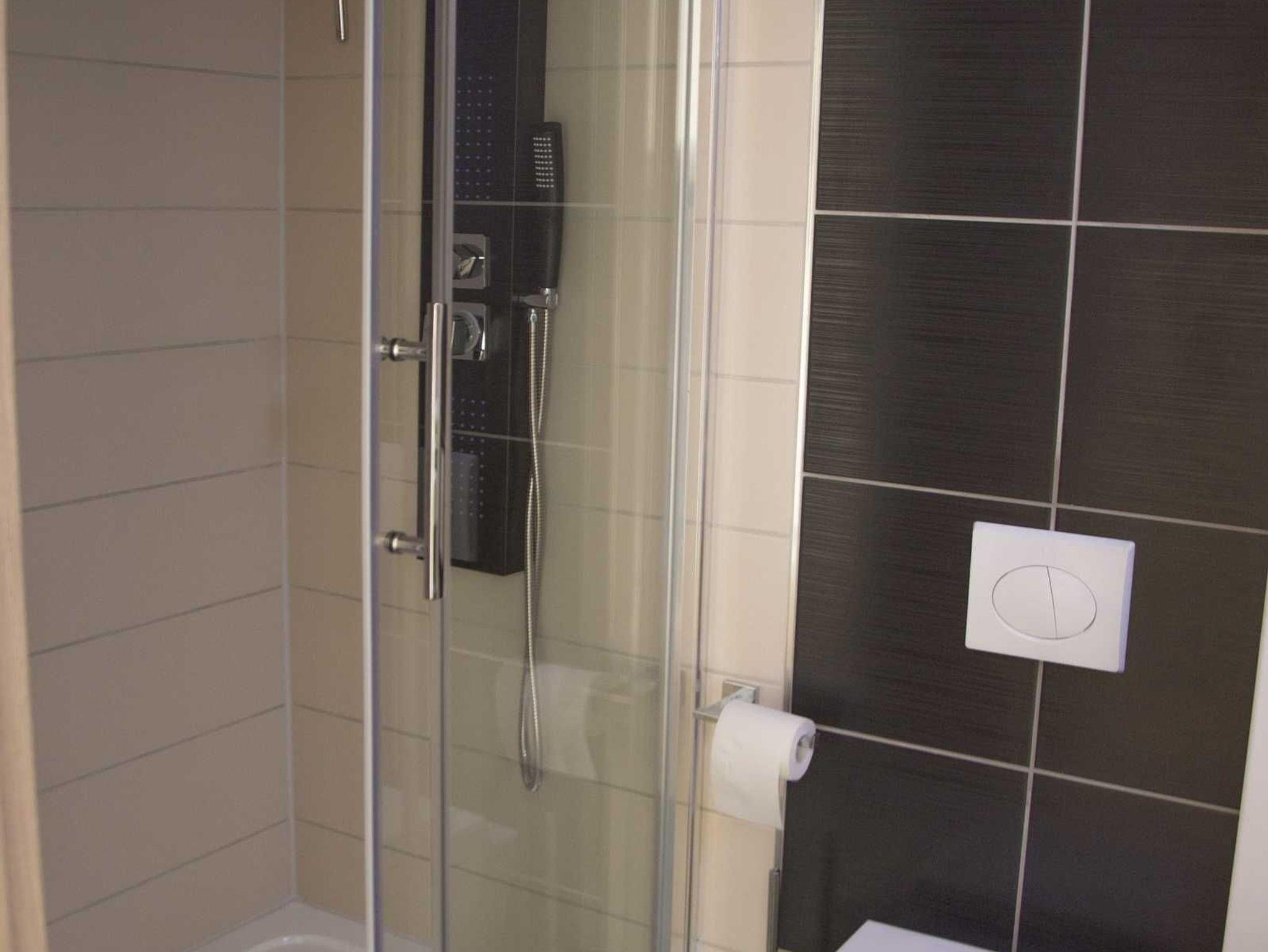 Das Bad ist mit einer großzügigen Dusche ausgestattet.