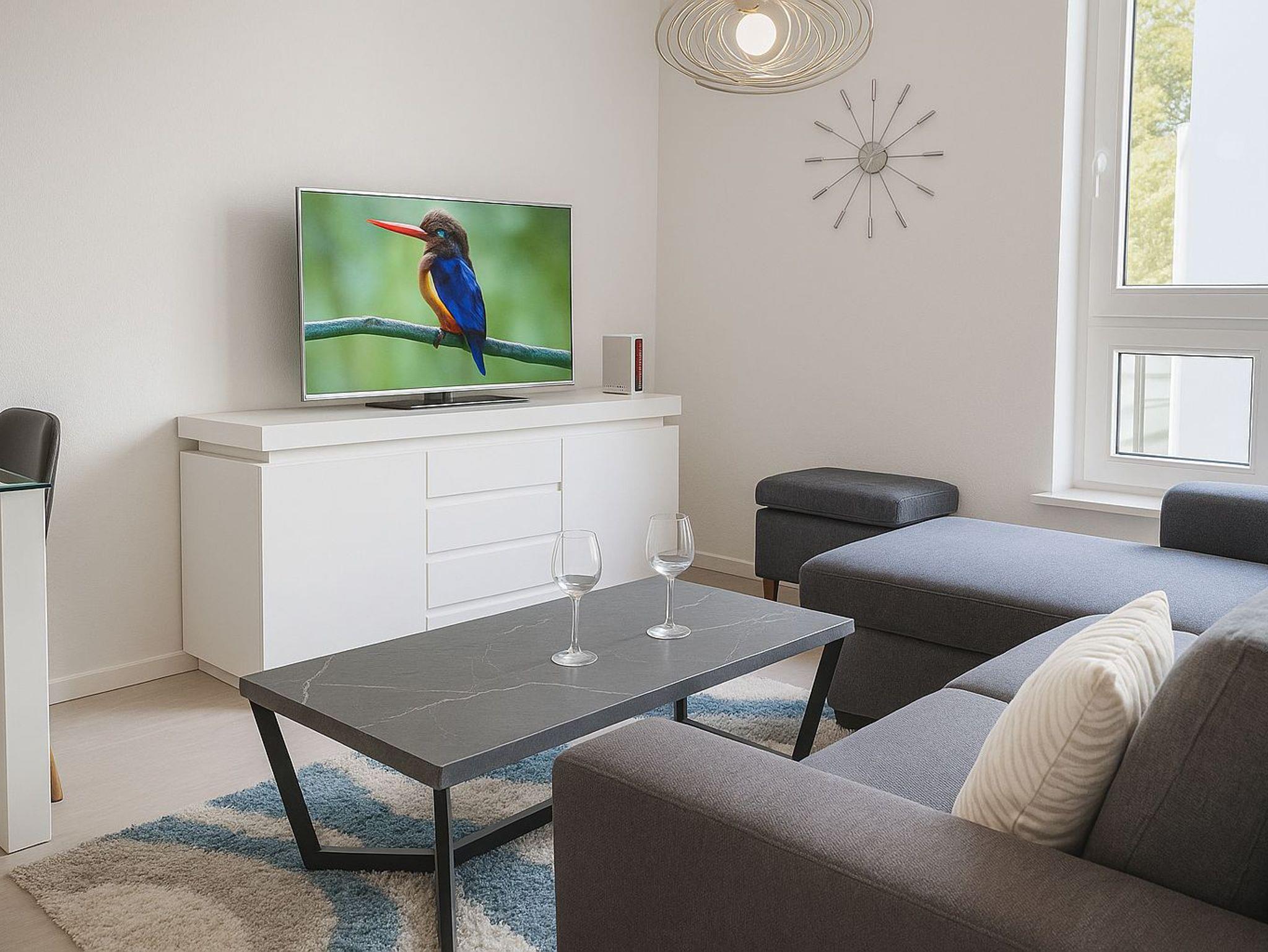 Das Apartment ist exklusiv und hochwertig eingerichtet. Es wurde saniert, komplett neu eingerichtet und Anfang 2017 neu eröffnet. Das Apartment können Sie über einen Aufzug erreichen. Es bietet Ihnen ein Schlafzimmer mit Doppelbett, einen offenen Wohn- und Küchenbereich mit Schlafcouch sowie ein Badezimmer mit Dusche/WC an.