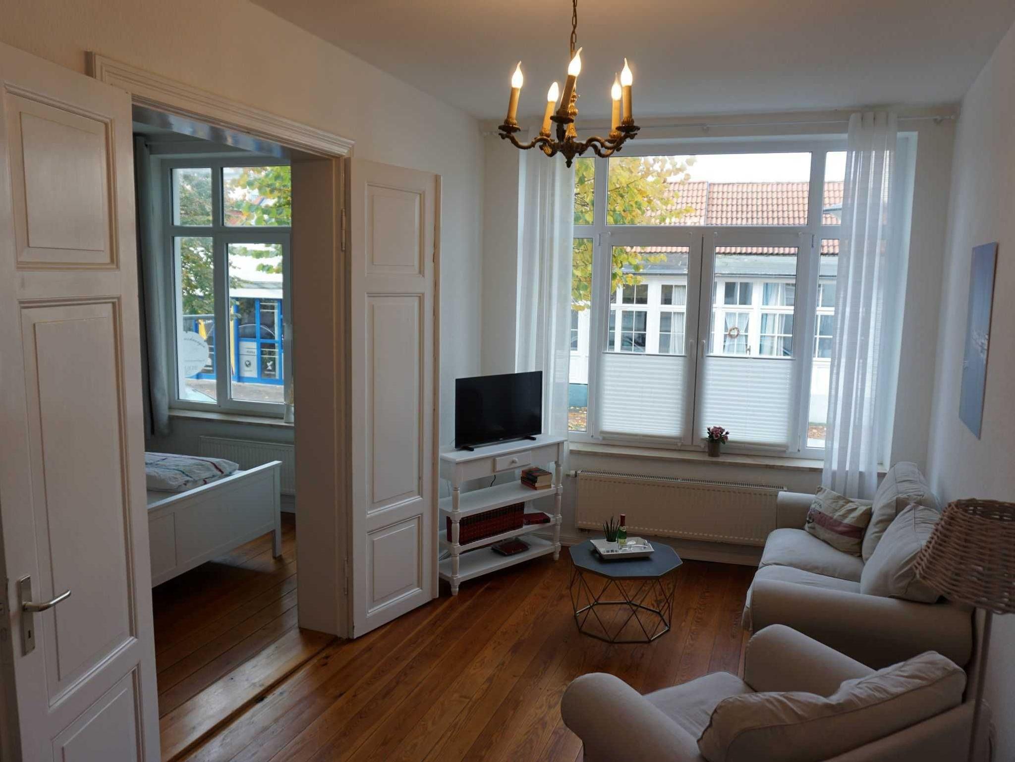 Die komfortabel eingerichtete Ferienwohnung Tamo überzeugt mit ihrer stilvollen Altbauatmosphäre und bietet Ihnen auf ca. 53m² Platz für 4 Personen. Die Flügeltür, die das Schlafzimmer mit dem lichtdurchfluteten Wohn- und Essbereich verbindet, verleiht der Ferienwohnung einen ganz besonderen Charme. Vom Flur aus gelangen Sie in das Vollbad sowie in den hinteren Bereich der Wohnung, in dem sich die Küche und ein separates Schlafzimmer für zwei weitere Personen befinden.