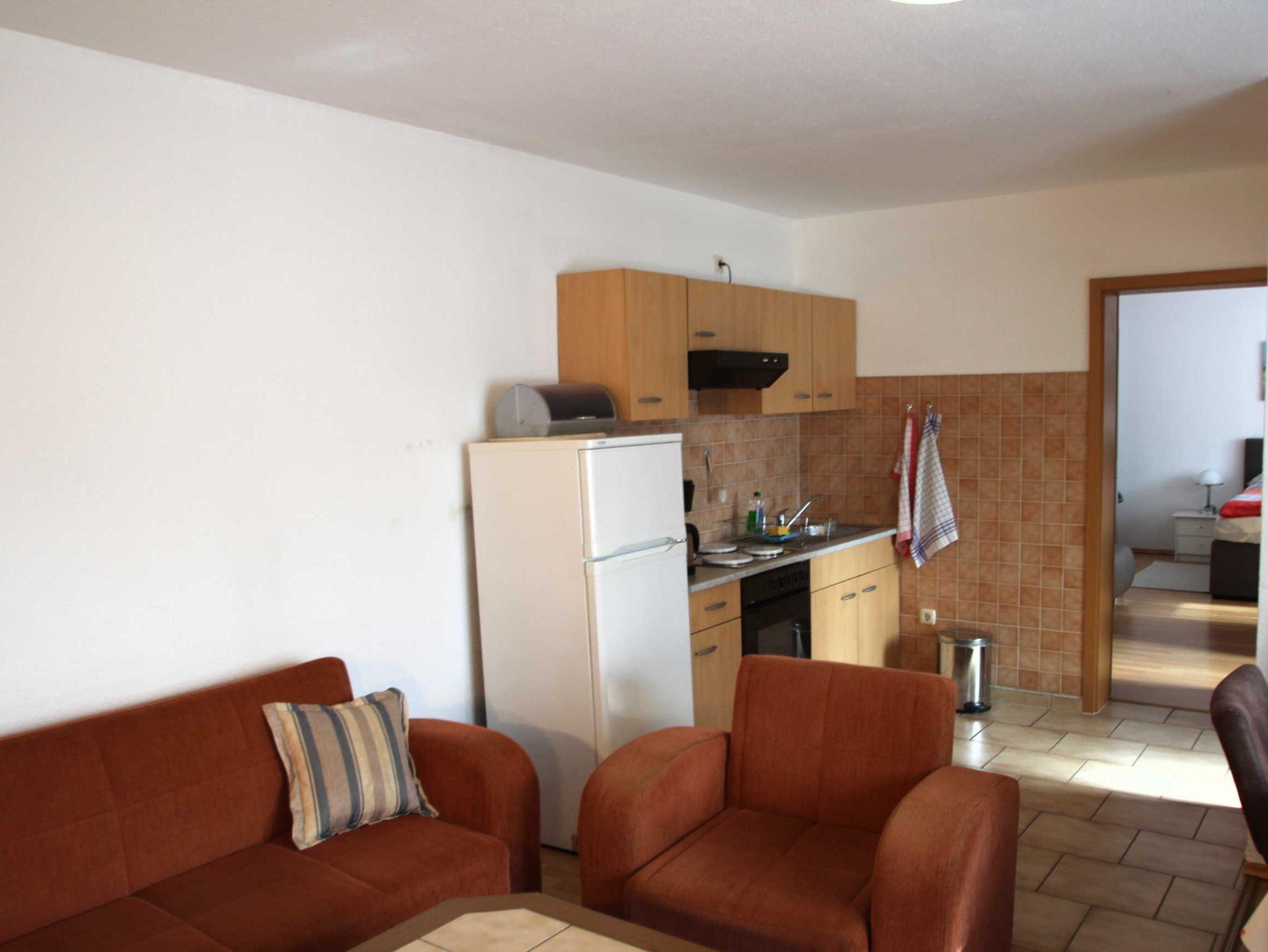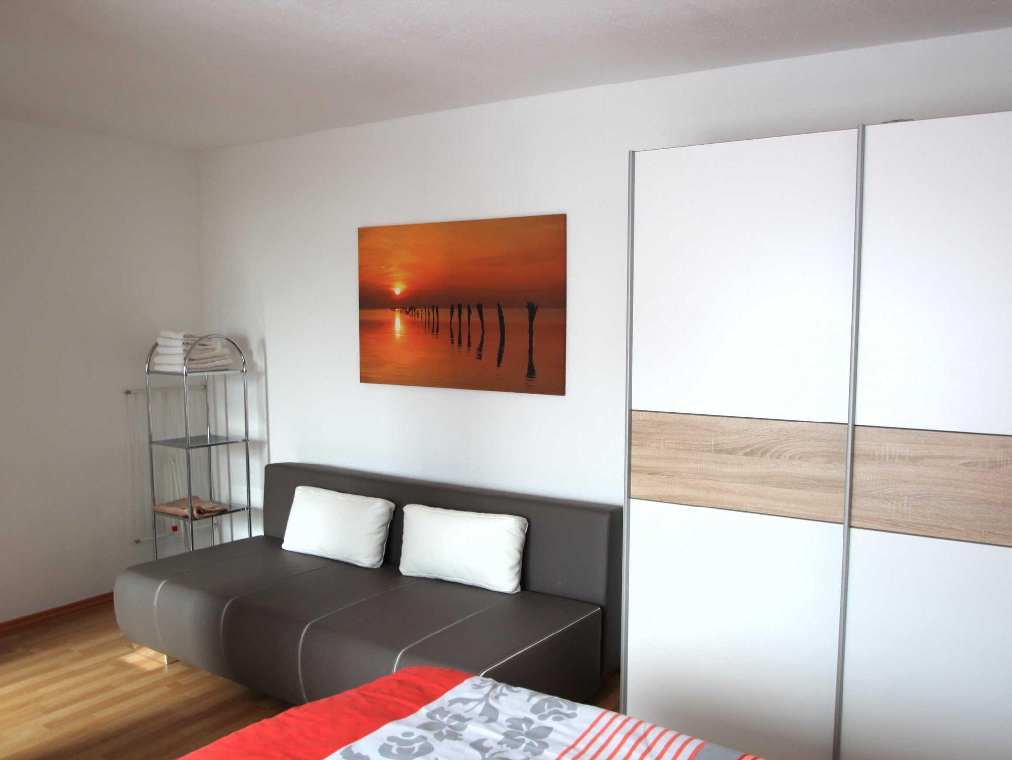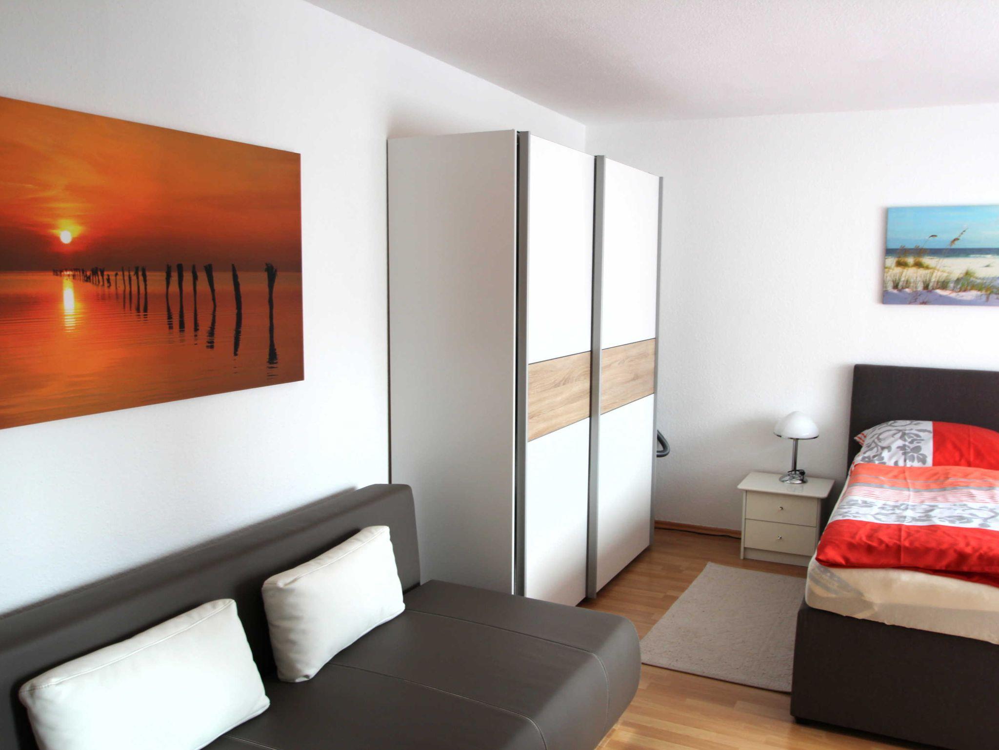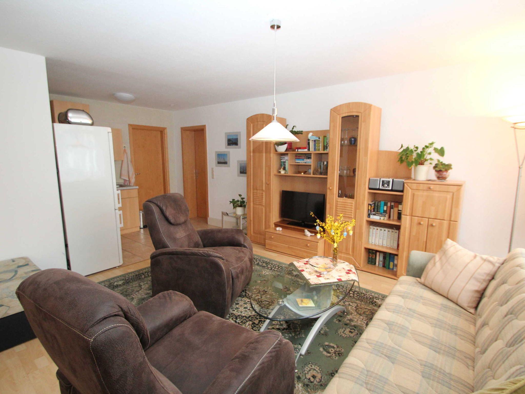 Die 2-Zimmer-Ferienwohnung mit 50 qm für bis zu 3 Personen, ist ausgestattet mit einem Wohnzimmer, einer offenen Küche im Wohnbereich, einem separaten Schlafzimmer mit Doppelbett und einem Badezimmer mit Dusche. Das Wohnzimmer verfügt über einen Flachbildschirm und eine Radio/CD-Anlage. Im Schlafzimmer kann aufgebettet werden.