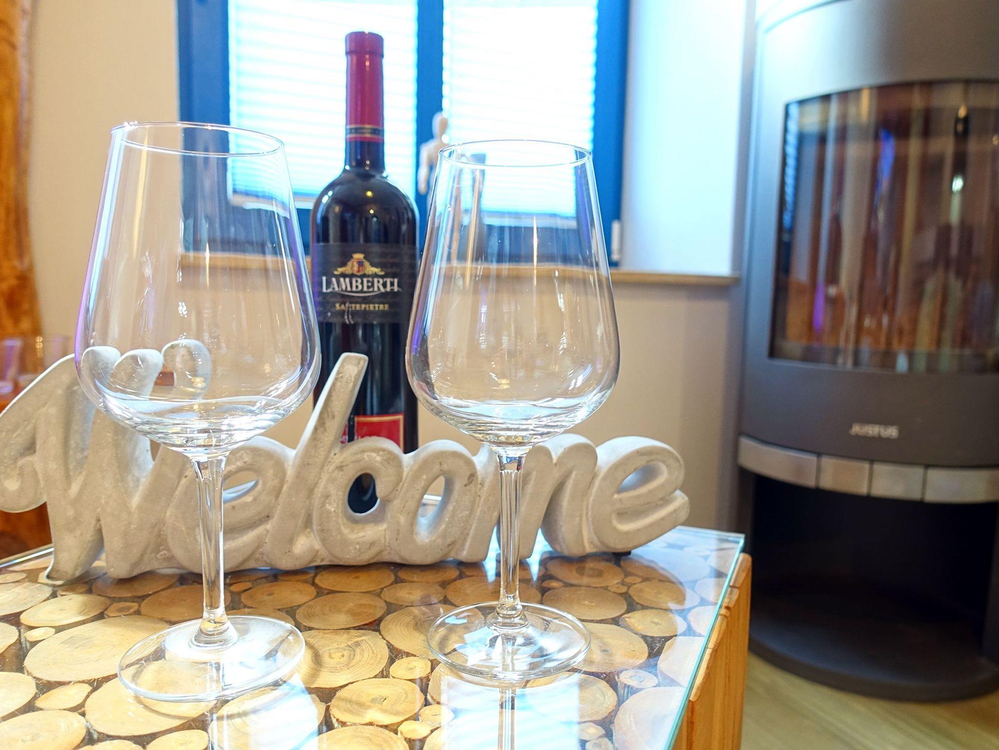 Die 43 qm große Wohnung ist farbenfroh und modern eingerichtet. Das Wohnzimmer ist kombiniert mit einer voll ausgestatteten Küchenzeile. An kühleren Tagen lässt es sich wunderbar mit einem Tee am Kamin entspannen (kein Holz vorhanden). Ein Esstisch sowie eine gemütliche Sofaecke mit Flachbildfernseher befinden sich ebenfalls in dem hellen Wohnraum.