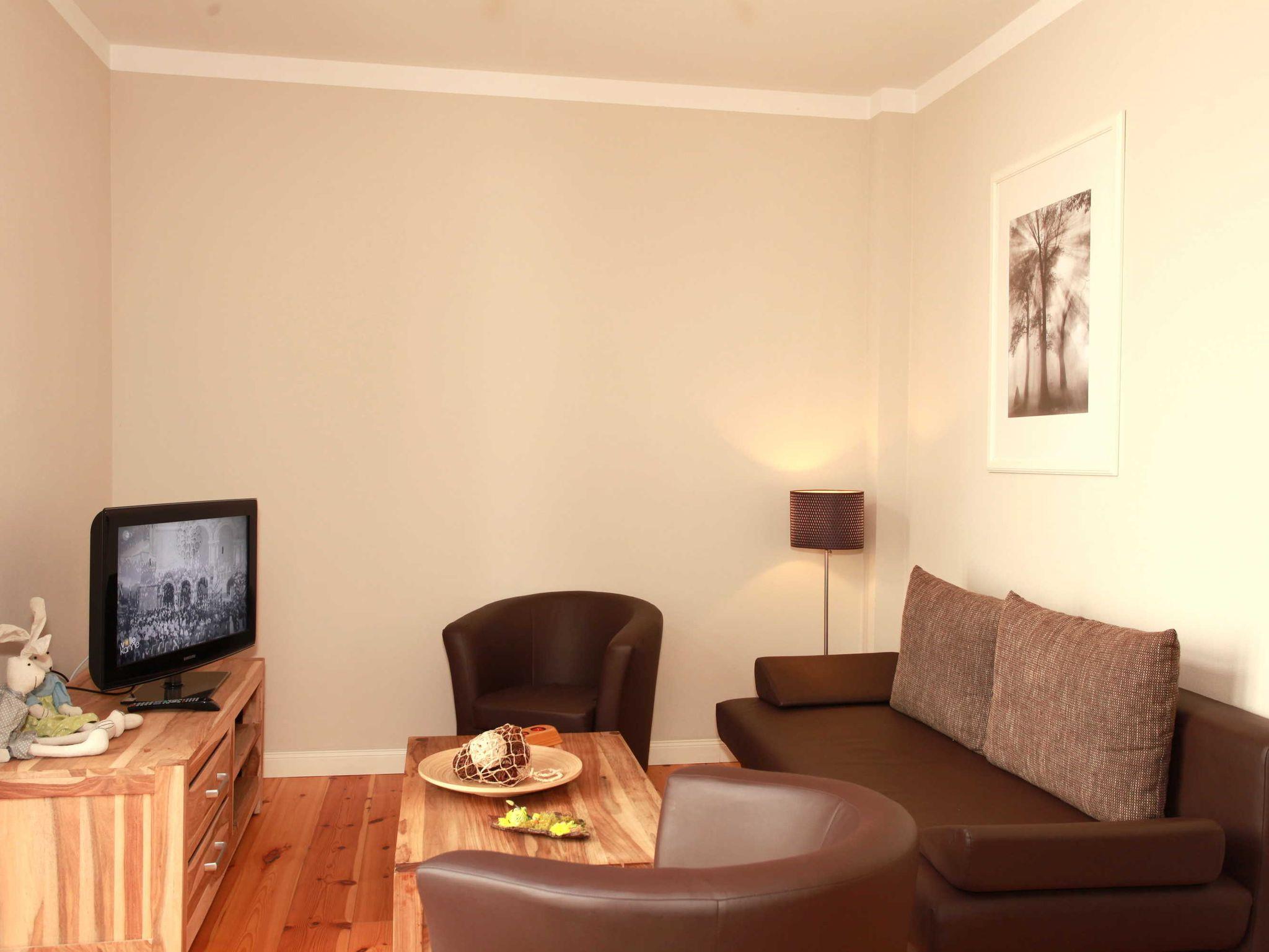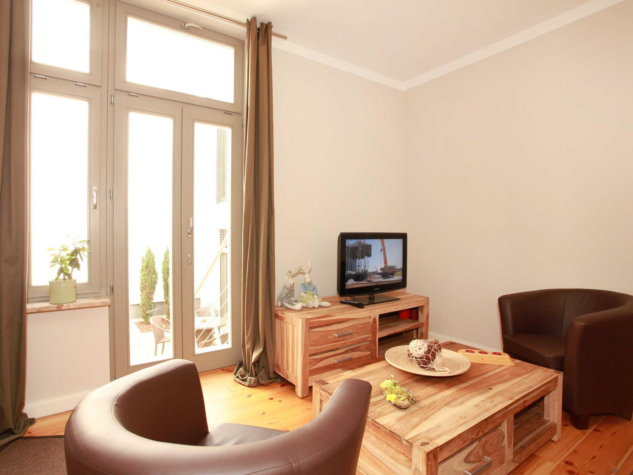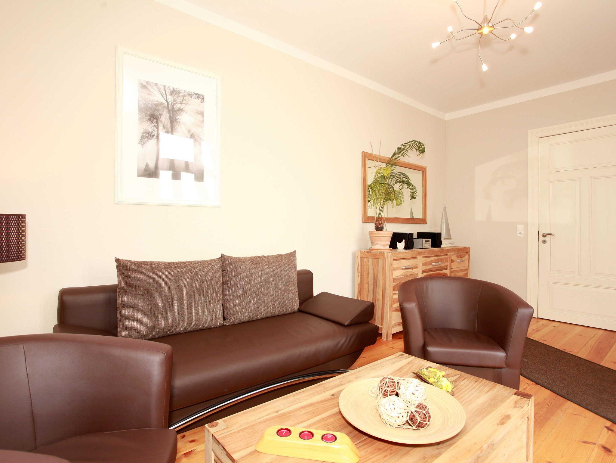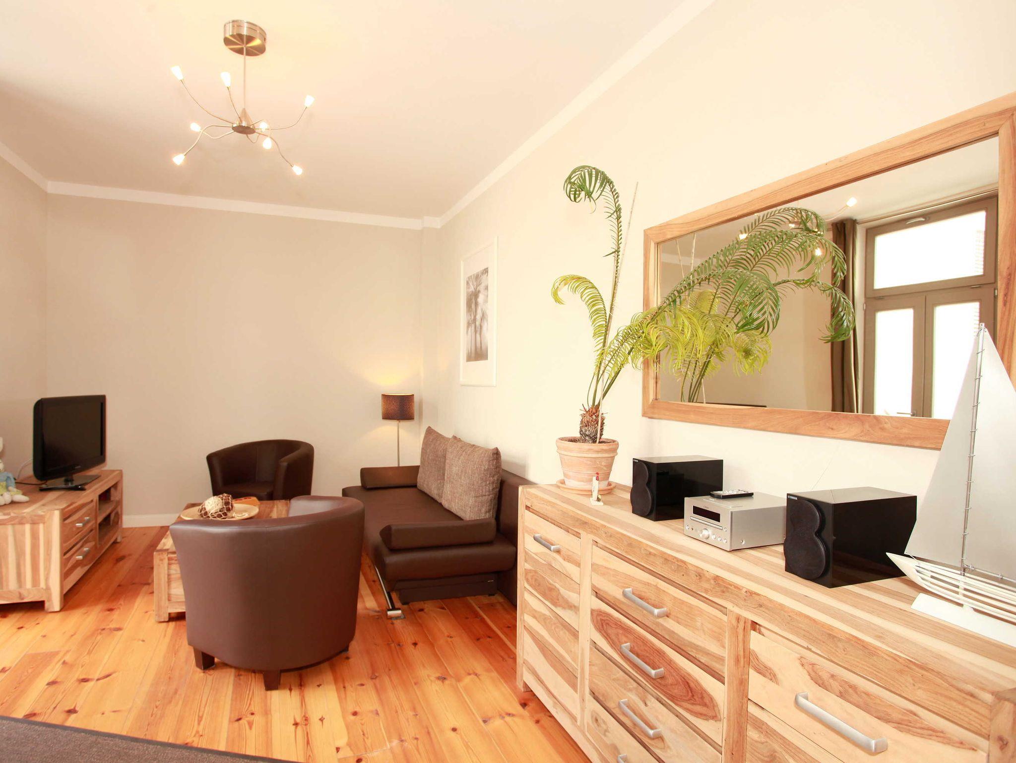Die 2-Zimmer-Ferienwohnung mit 47 qm für bis zu 4 Personen ist ausgestattet mit einem Wohnzimmer, separaten Schlafzimmer, Einbauküche und Badezimmer mit Dusche. Das Wohnzimmer verfügt über einen Flachbildschirm, Radio/CD-Anlage und einem separaten Zugang zum begrünten Innenhof. Im Innenhof können Sie auf stilvollen Terrassenmöbeln mit den ersten Sonnenstrahlen frühstücken oder den Tag entspannt ausklingen lassen.