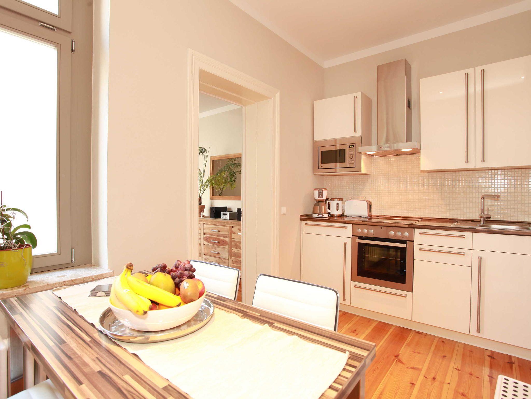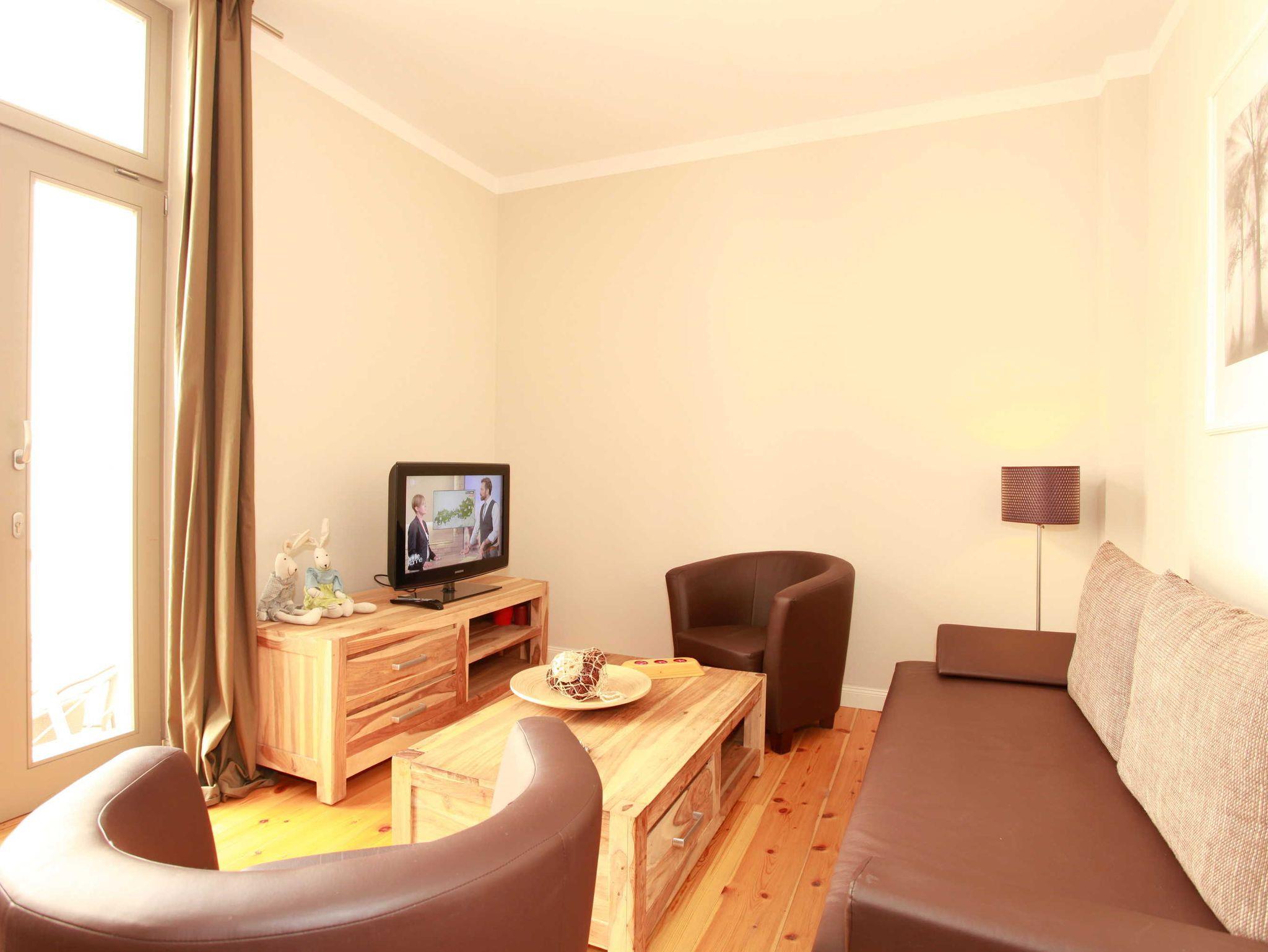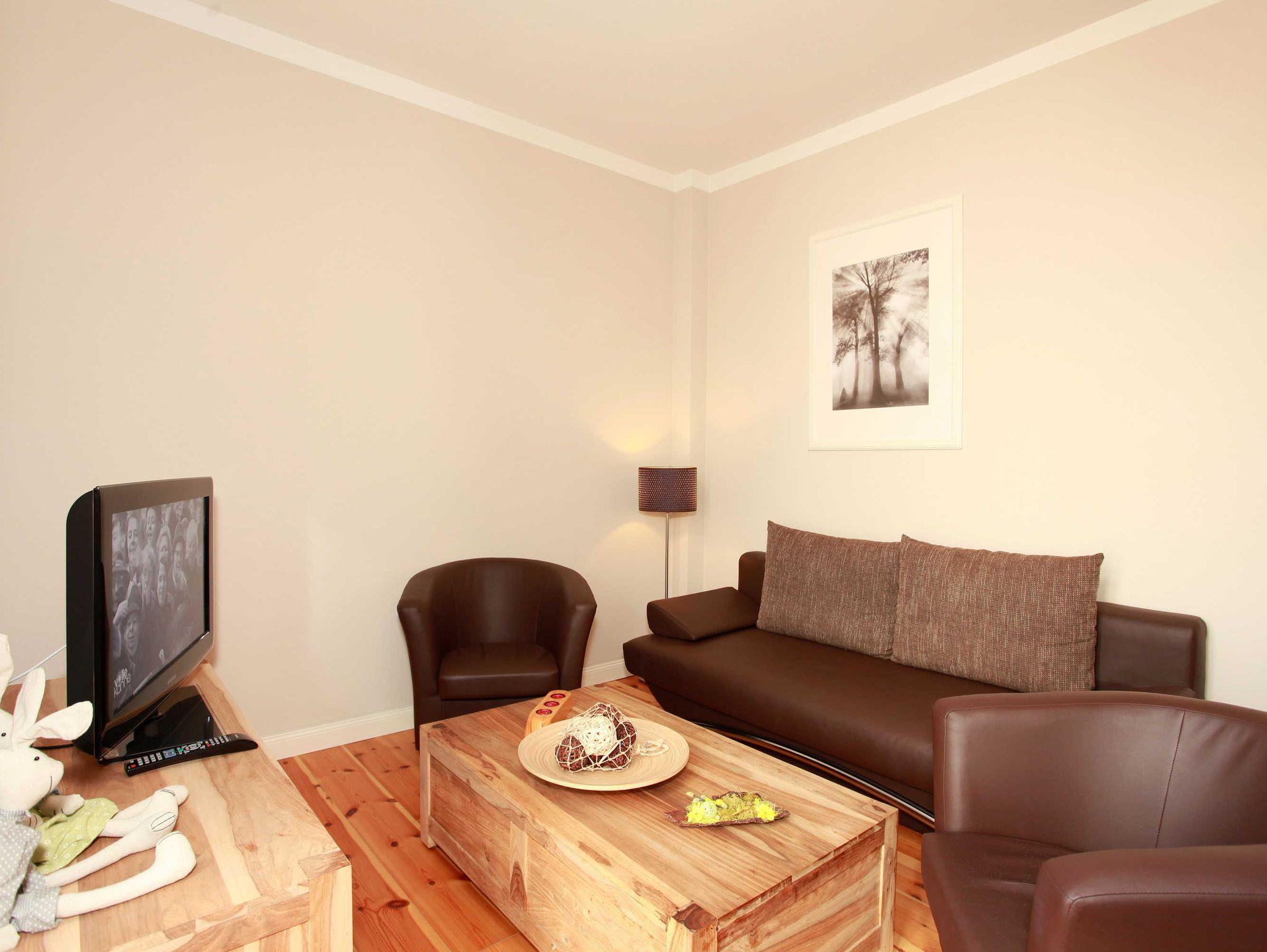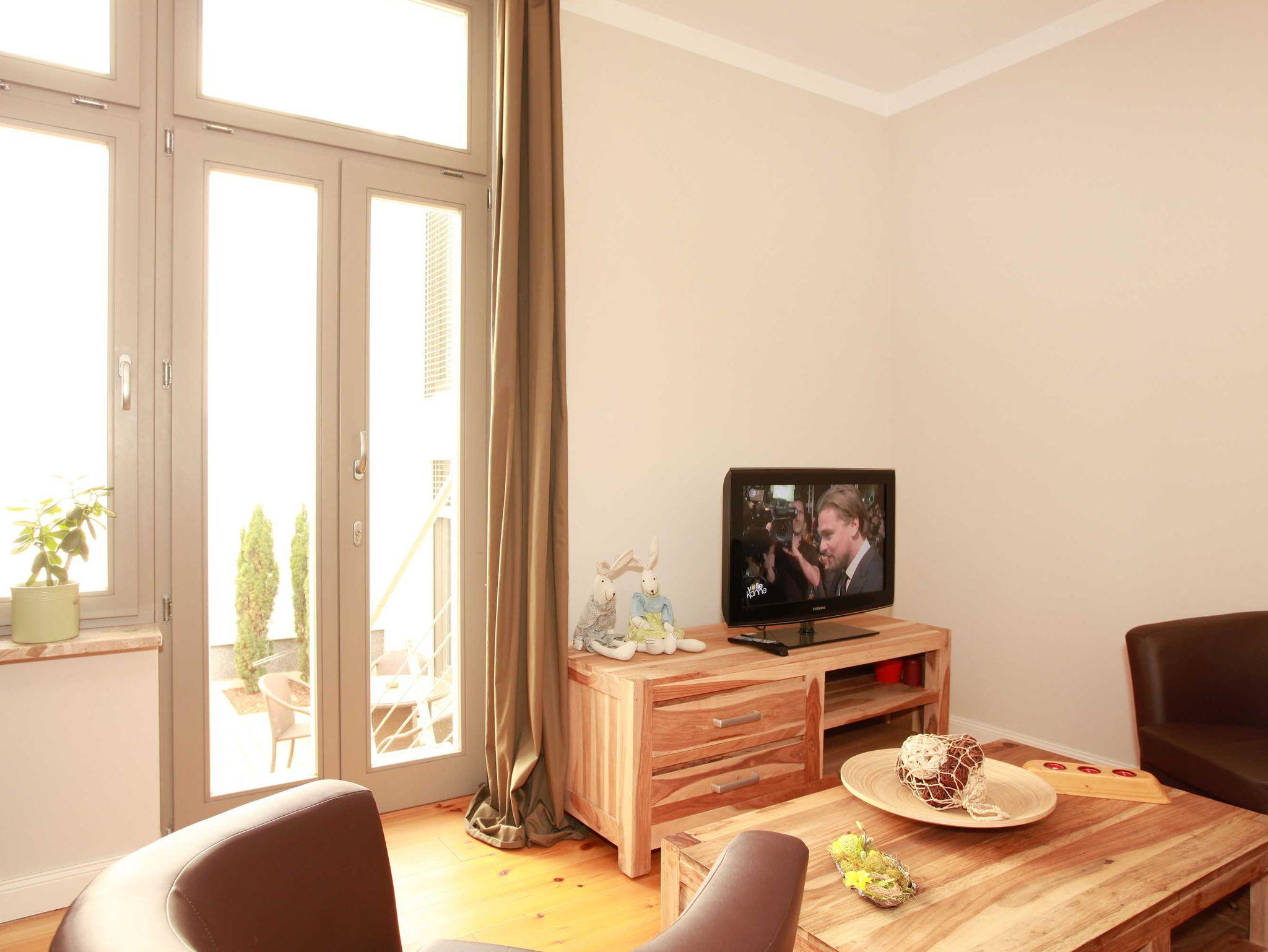 Die 2-Zimmer-Ferienwohnung mit 47 qm für bis zu 4 Personen ist ausgestattet mit einem Wohnzimmer, separaten Schlafzimmer, Einbauküche und Badezimmer mit Dusche. Das Wohnzimmer verfügt über einen Flachbildschirm, Radio/CD-Anlage und einem separaten Zugang zum begrünten Innenhof. Im Innenhof können Sie auf stilvollen Terrassenmöbeln mit den ersten Sonnenstrahlen frühstücken oder den Tag entspannt ausklingen lassen.
