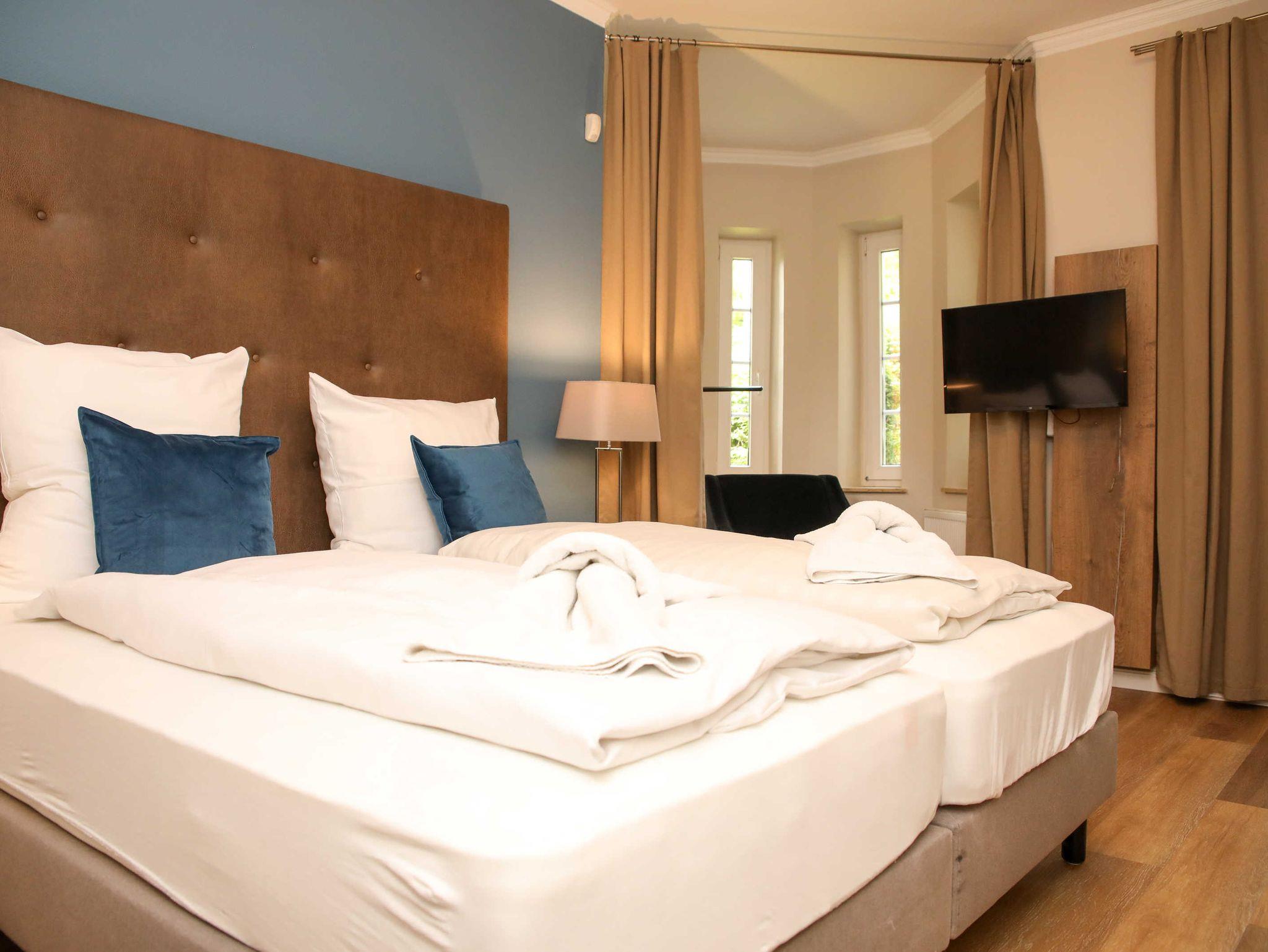 Die 2-Zimmer-Ferienwohnungen mit einer Größe von ca. 45-55 m² mit Balkon oder Terrasse bieten viel Platz für bis zu 4 Personen in separaten Wohn- und Schlafzimmern mit Doppelbett sowie ein neu gestaltetes Duschbad.