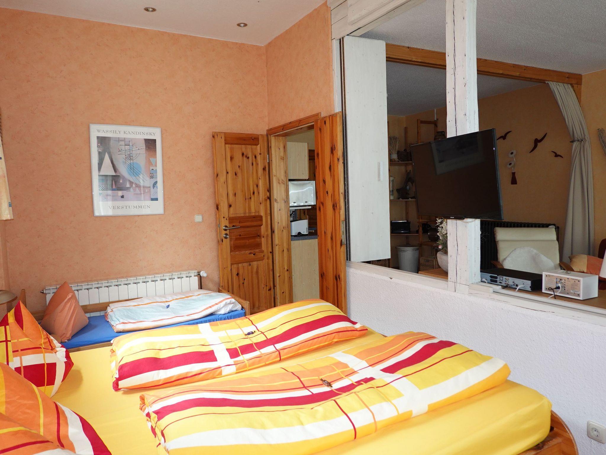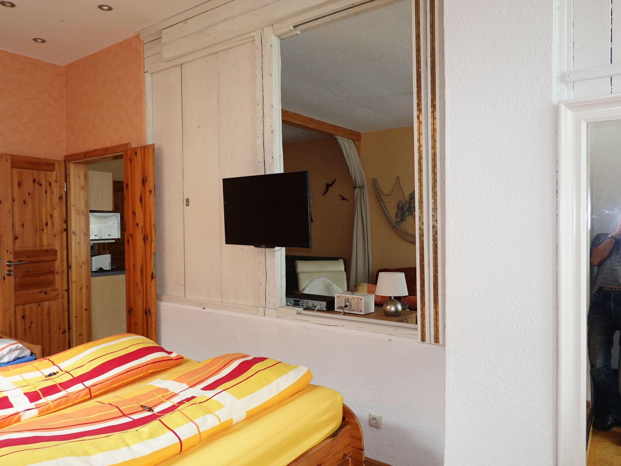 Der Essplatz befindet sich in der Veranda, so haben Sie einen Ausblick auf das Altstadtleben. Der kombinierte Wohn- und Schlafbereich ist durch bewegliche Wandteile trennbar. Die Aufbettung erfolgt auf dem Schlafsofa im Wohnbereich. Der Fernseher ist ein Flatscreen.