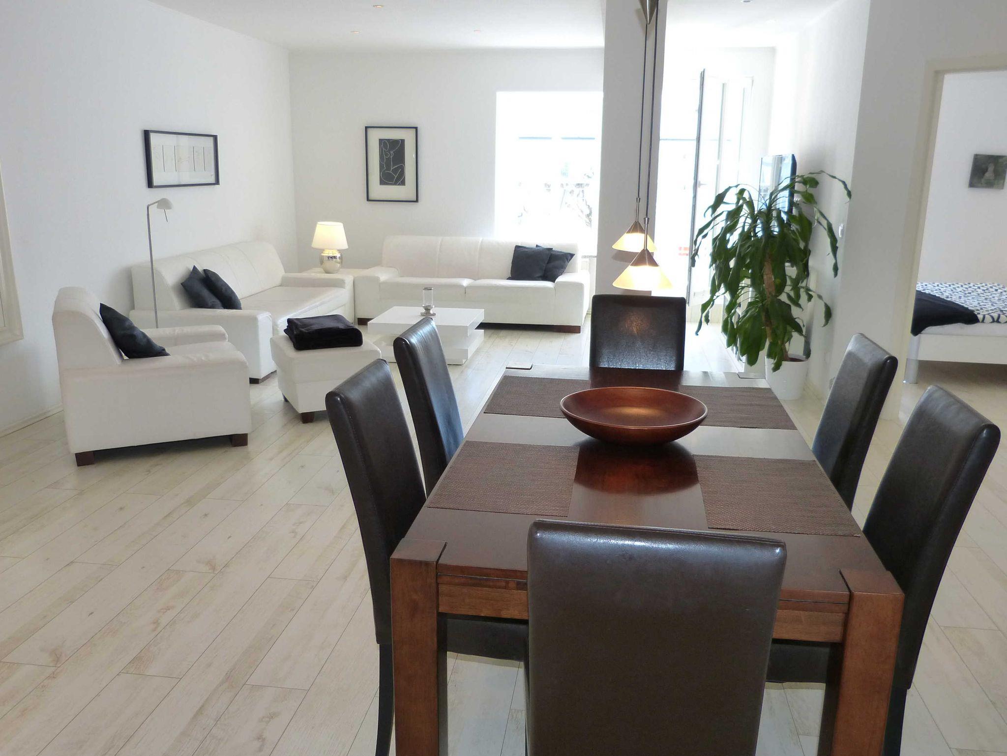 Die Ferienresidenz ist ideal für max. 4 Personen. Das Wohnzimmer ist mit Kabel TV, Flachbildschirm, CD- Player, Soundsystem und einer bequemen und eleganten Sitzgruppe ausgestattet und verfügt über einen hochwertigem Esstisch für 4 Personen.