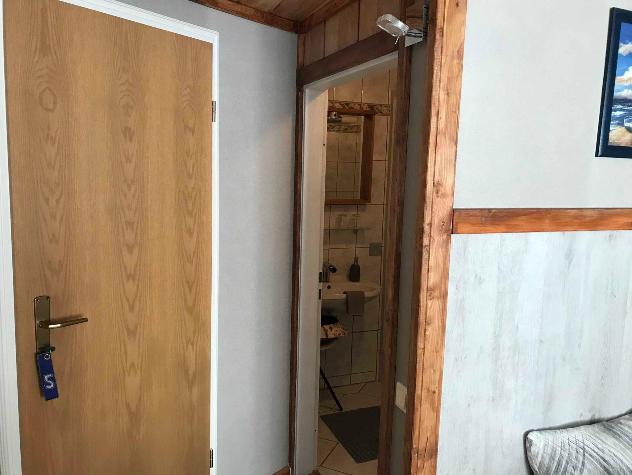 Das Ferienzimmer ist eingerichtet mit Kühlschrank, Kaffeemaschine, Wasserkocher, Eierkocher, Toaster und etwas Geschirr. Zur Ausstattung gehören Kabel-TV, Radio, Kommode und Kleiderschrank. Es gibt ein eigenes Bad mit Dusche/WC und Waschbecken. Zum Ferienzimmer gehört auch ein Tisch mit Stühlen im schönen und gemütlichen Innenhof.