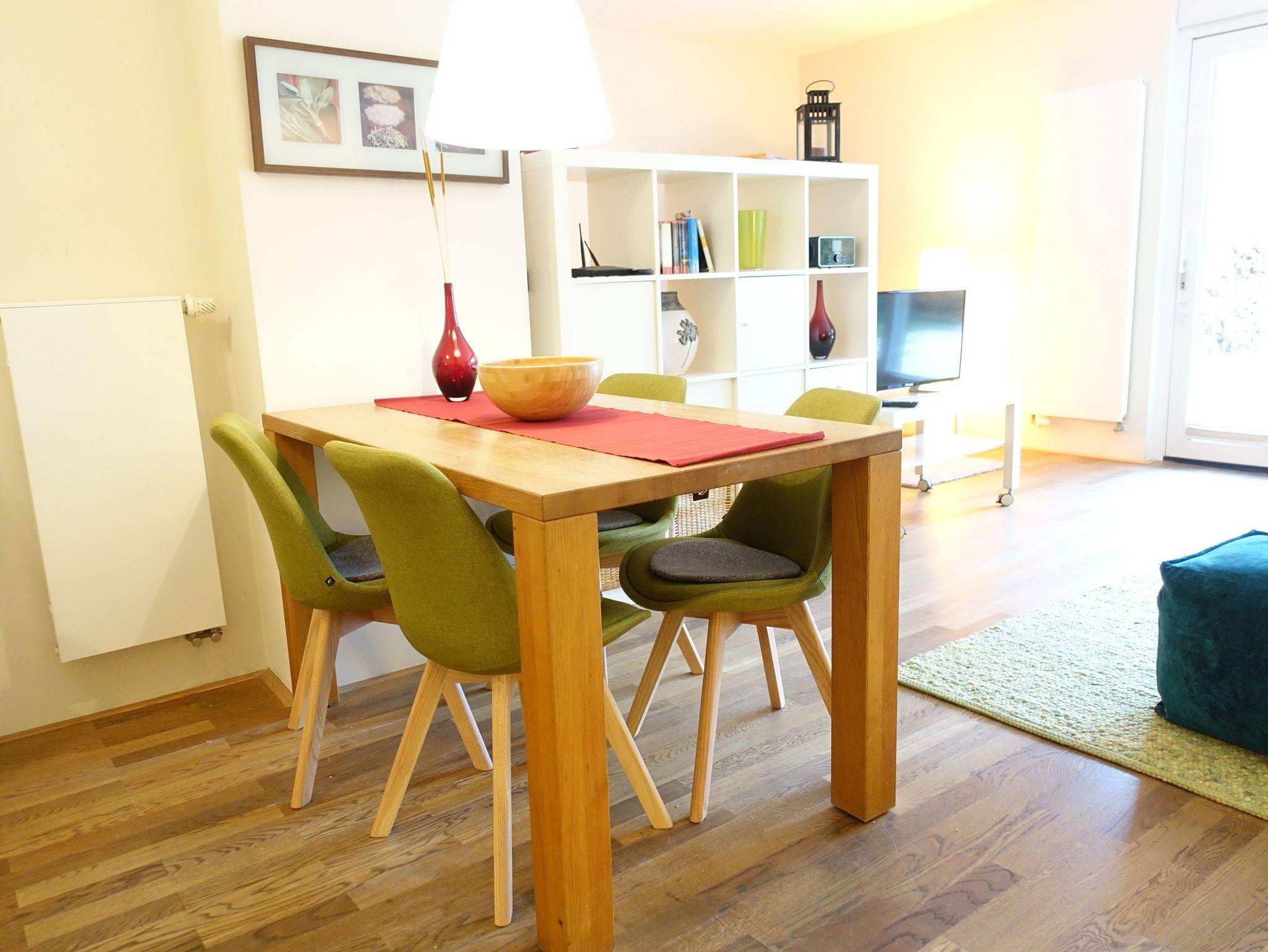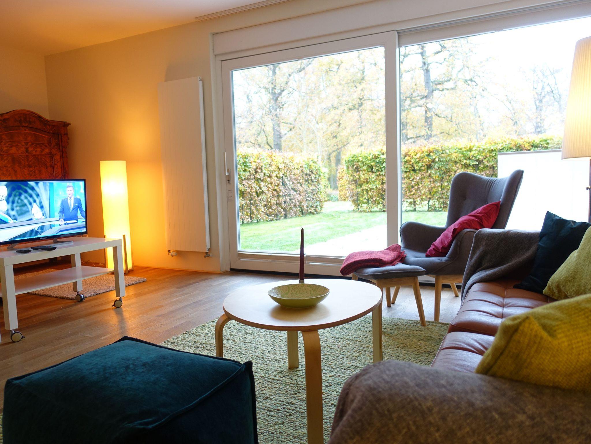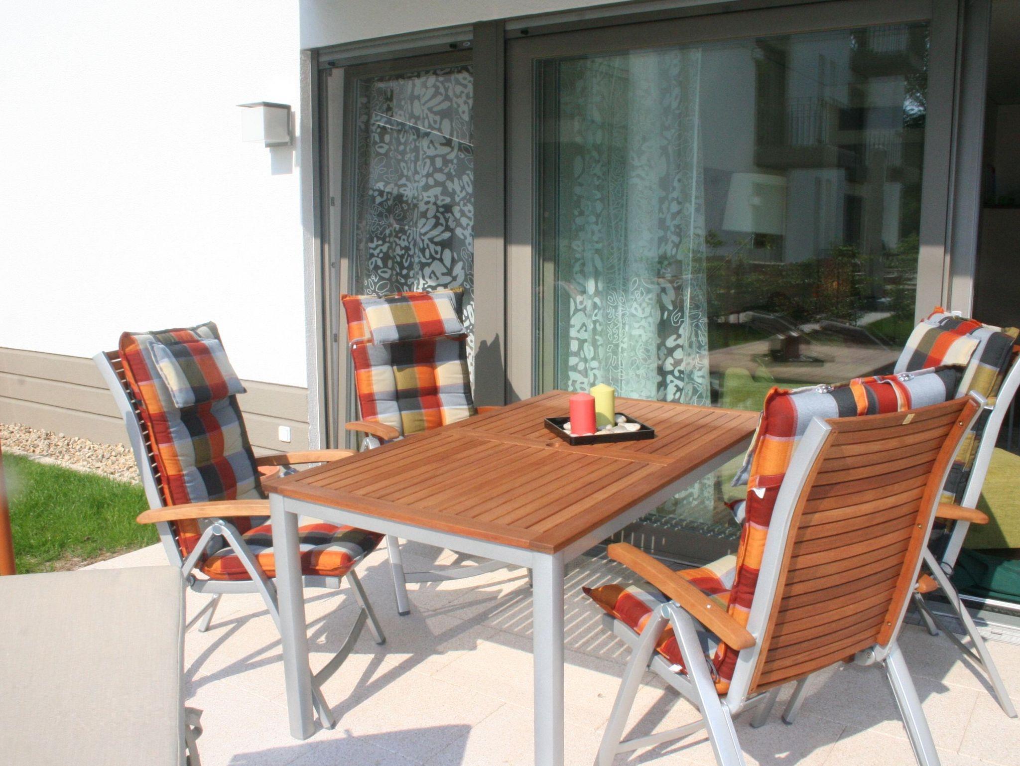 Die Ferienwohnung liegt im Erdgeschoss mit einer großen Terrasse über die gesamte Fensterfront.